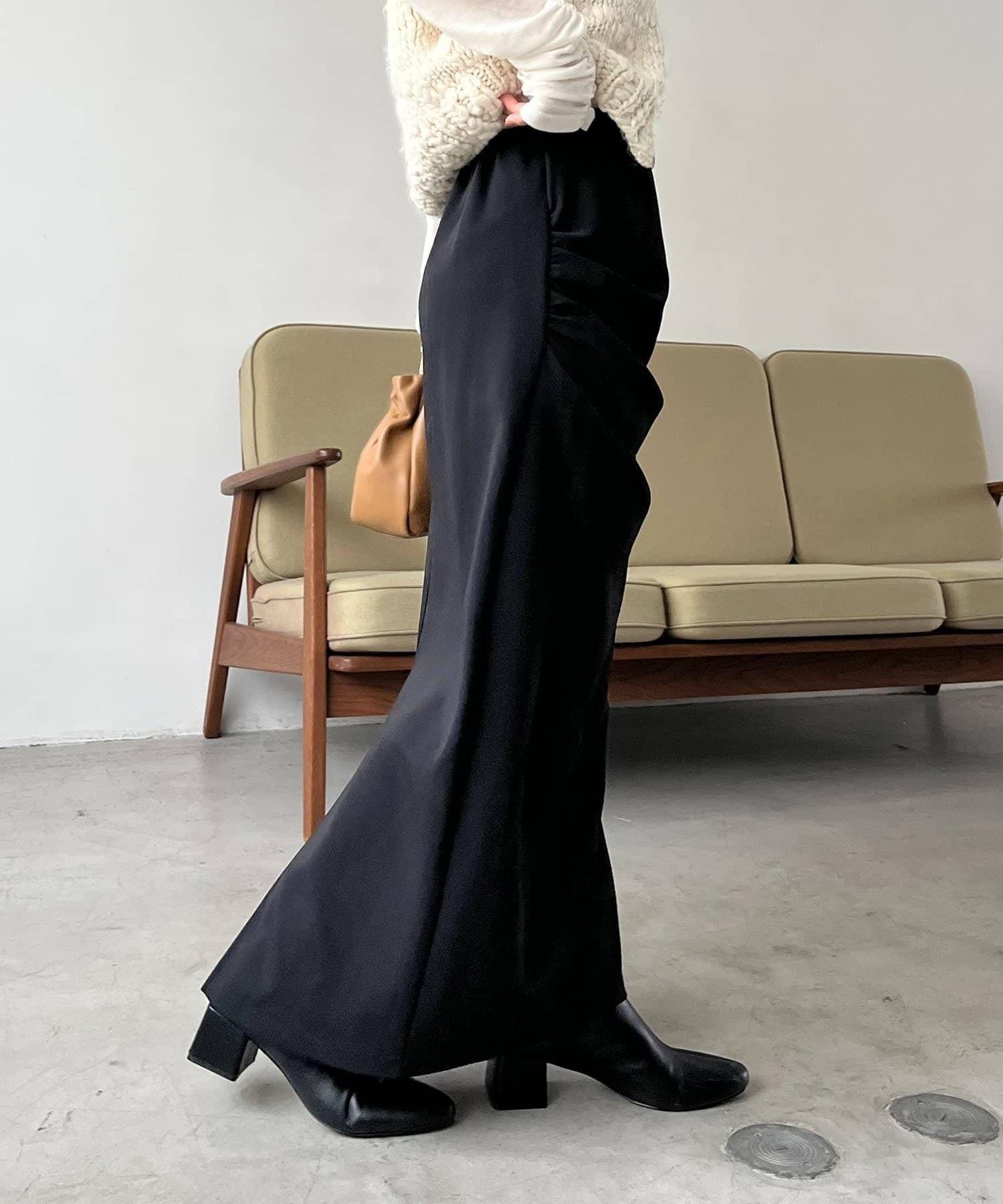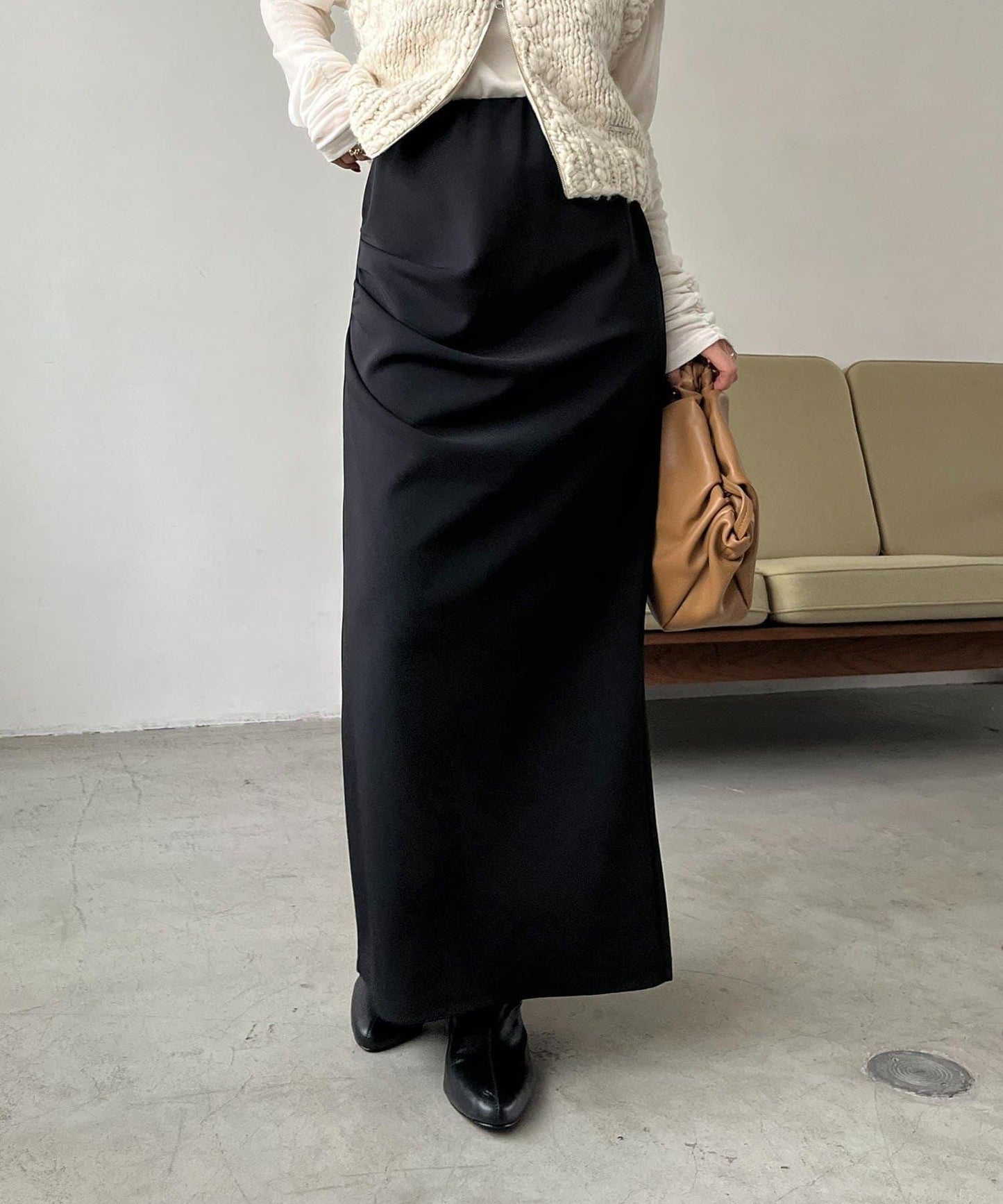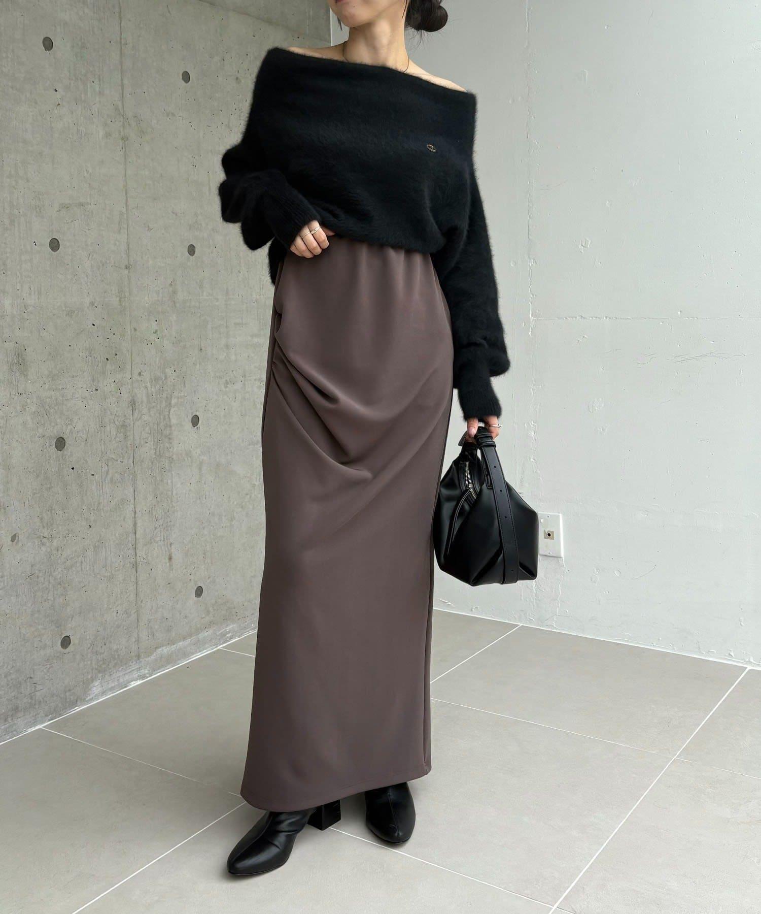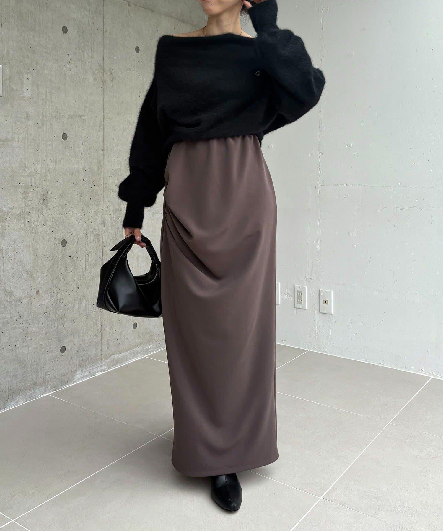 不對稱的裙襬垂墜設計,使其成為搭配中的亮點。