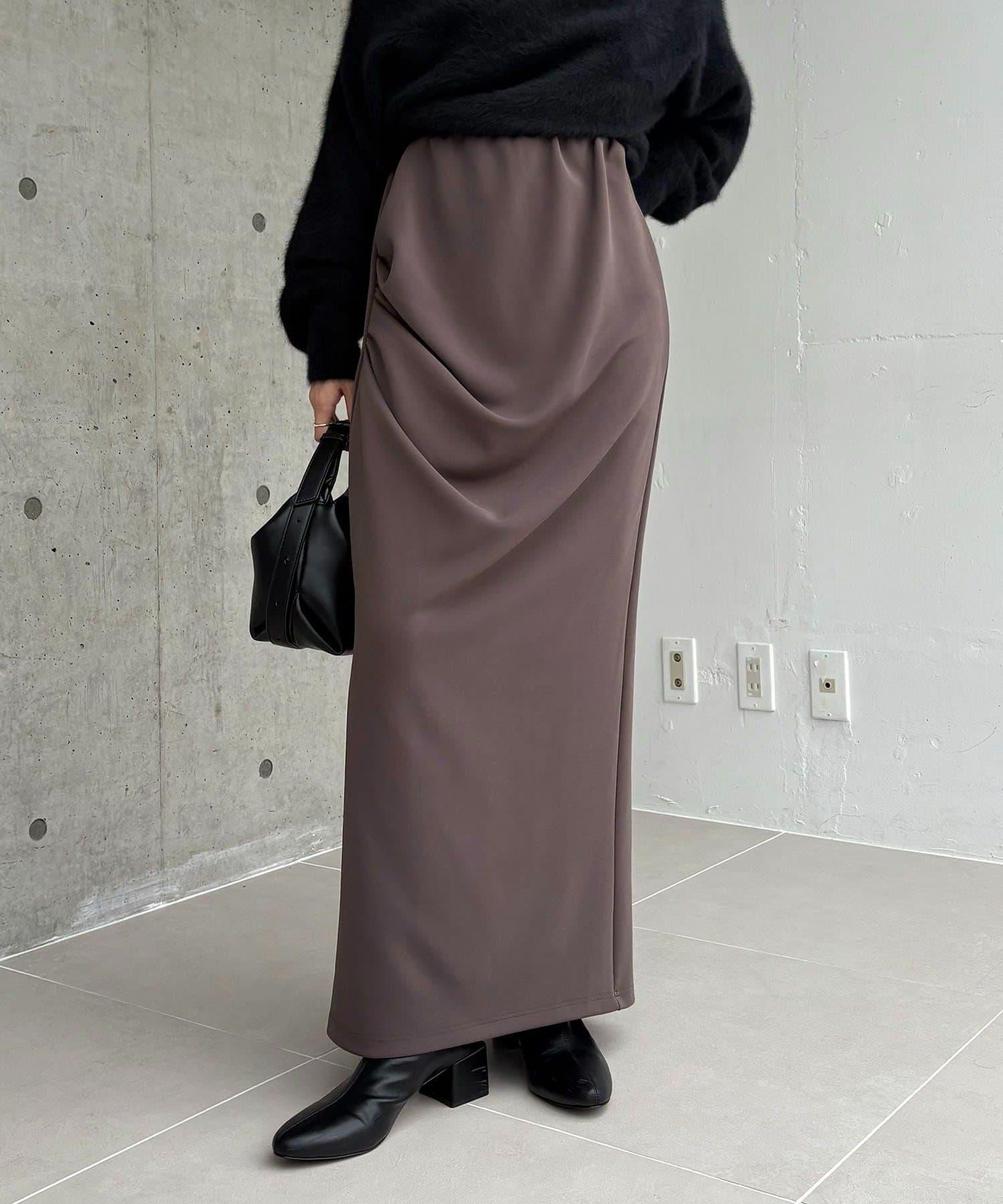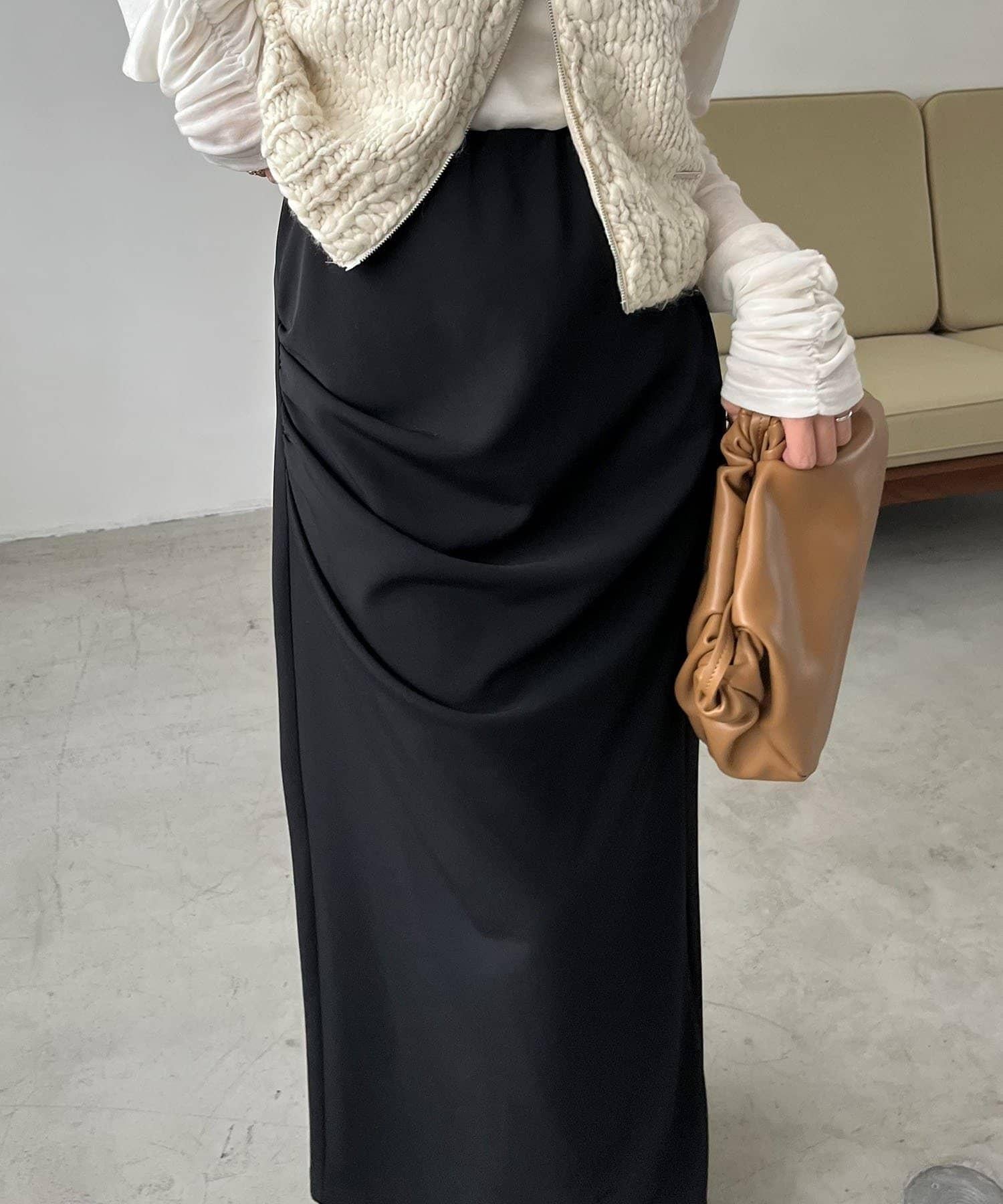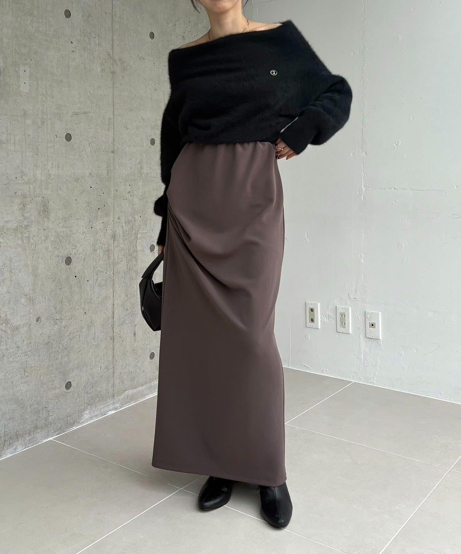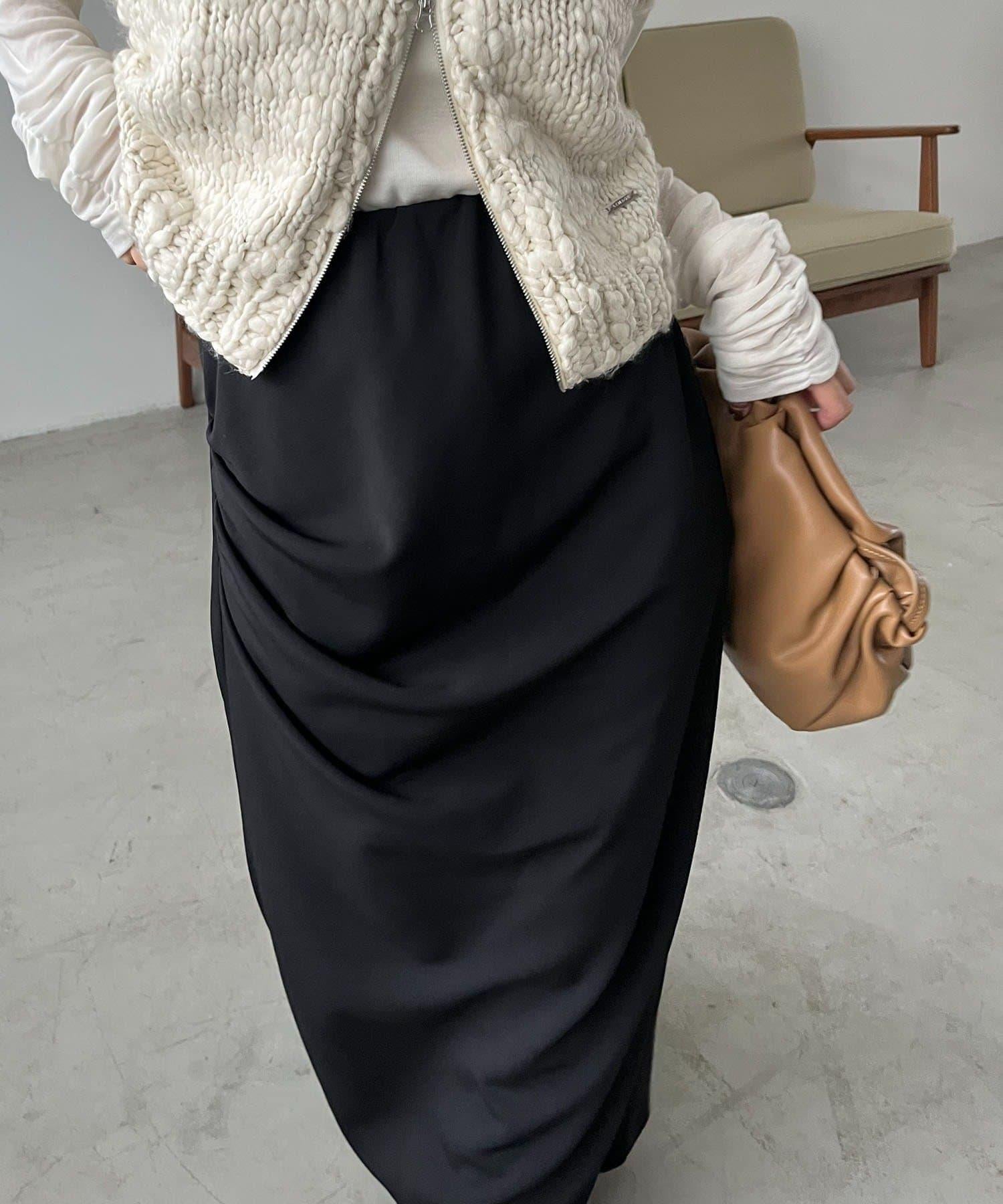 不對稱的裙襬垂墜設計,使其成為搭配中的亮點。