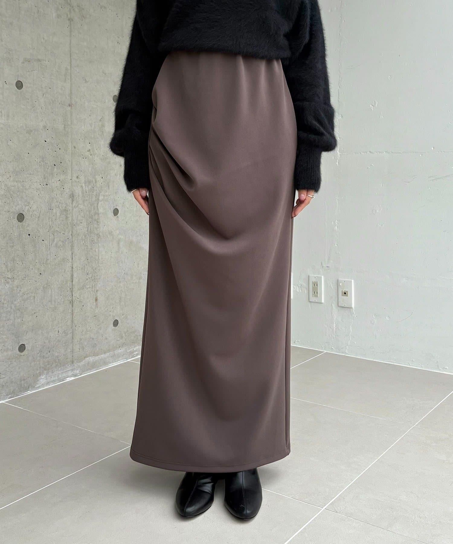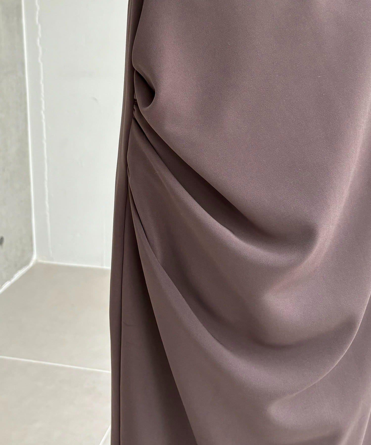 剪裁縫製的裙襬採用垂墜設計,盡顯現代感。