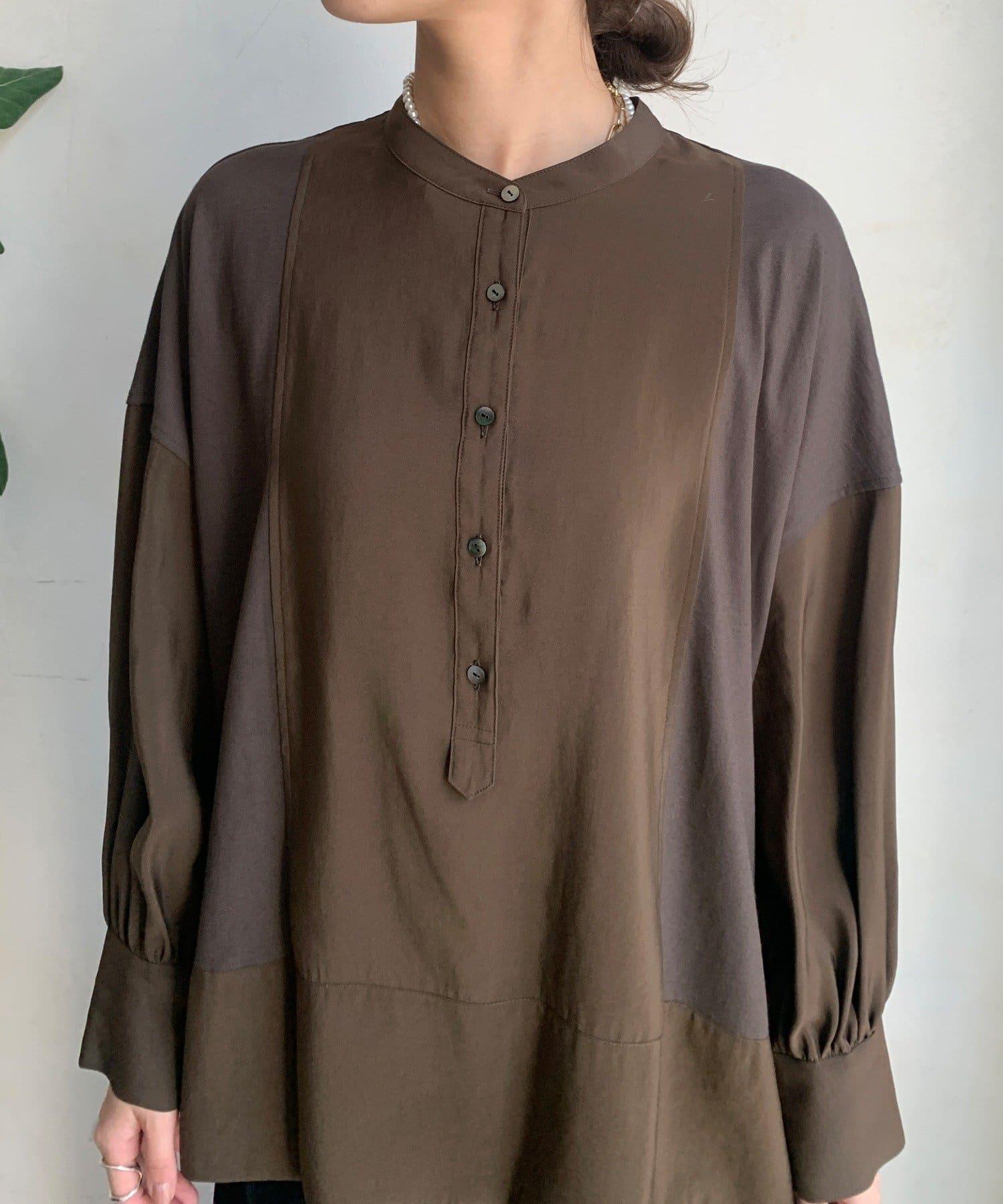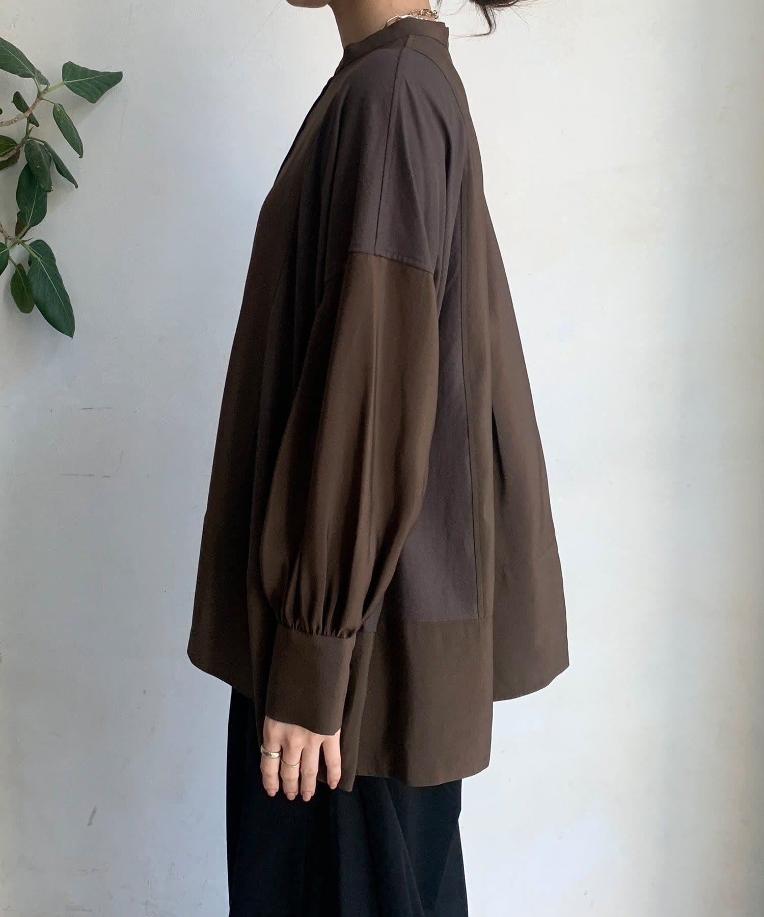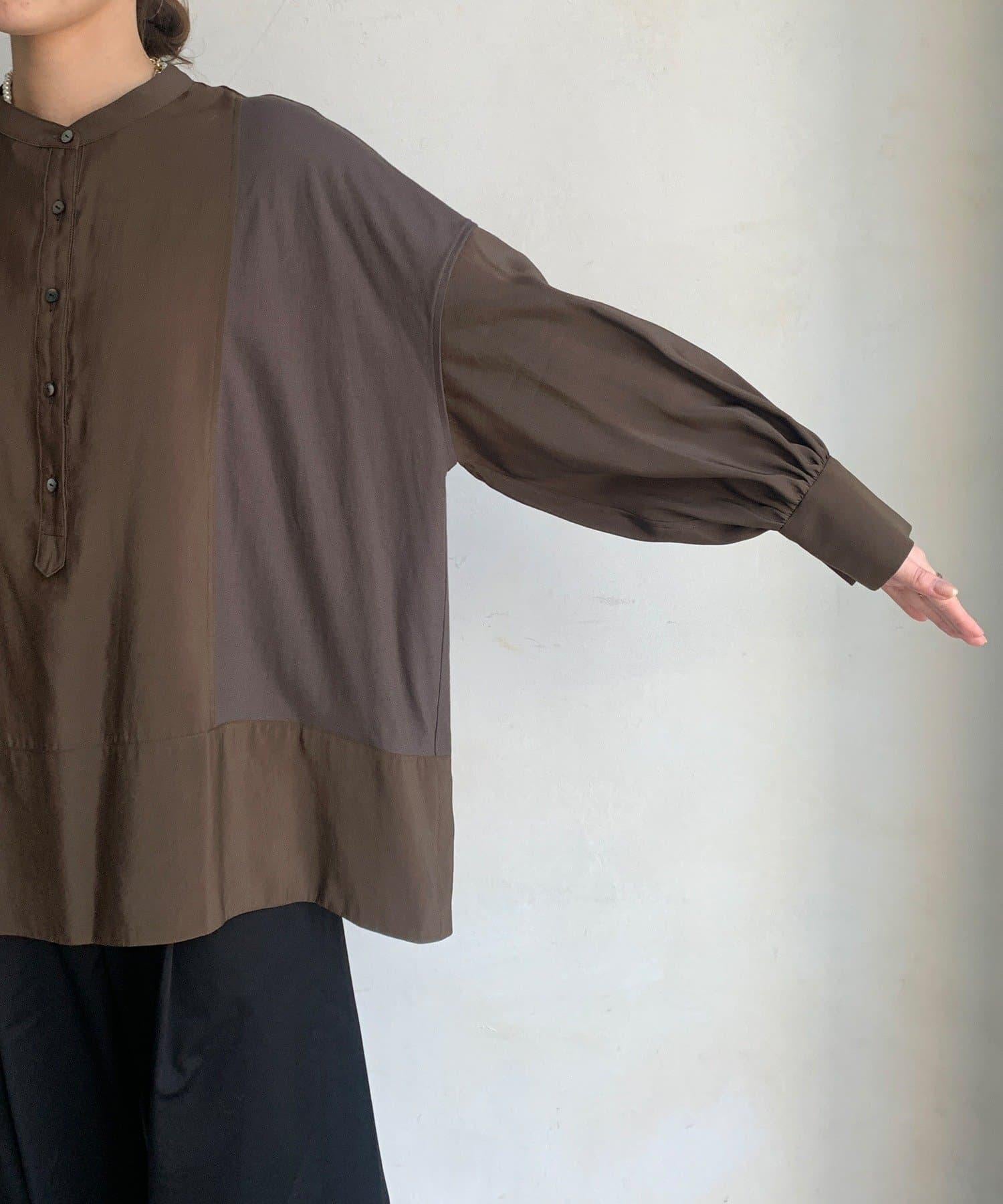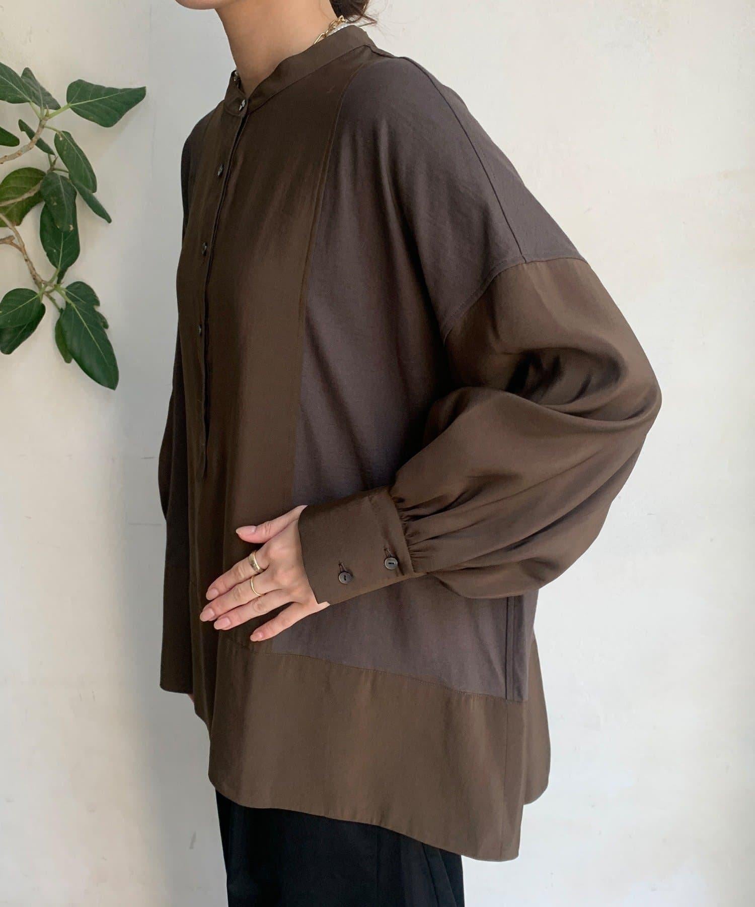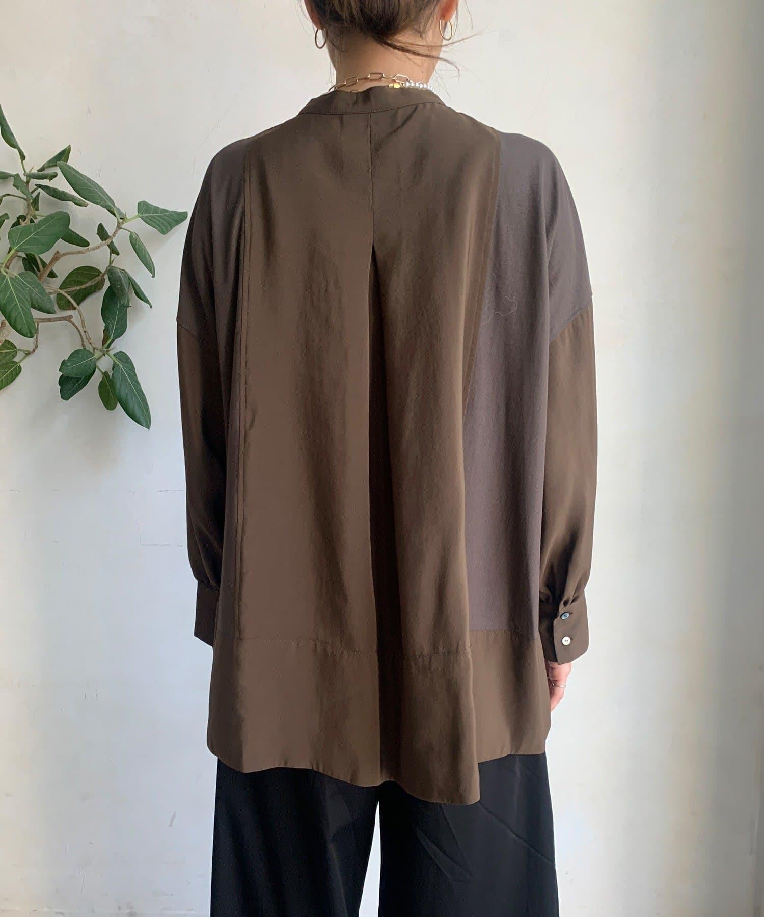 隨意運用的不同材質對接設計,為趨於單調的襯衫款式增添了層次感。