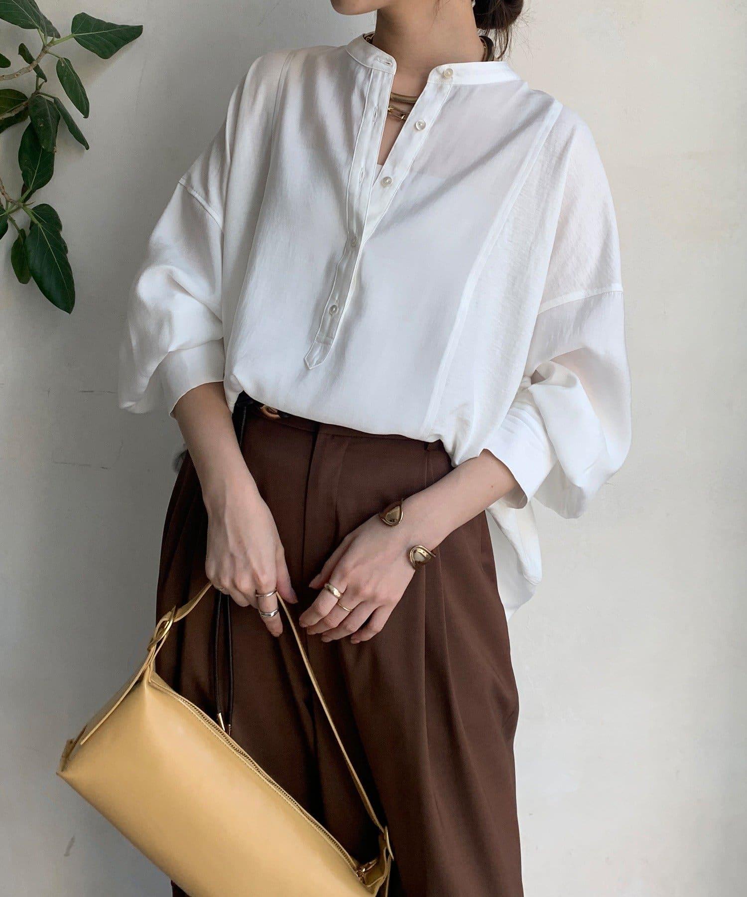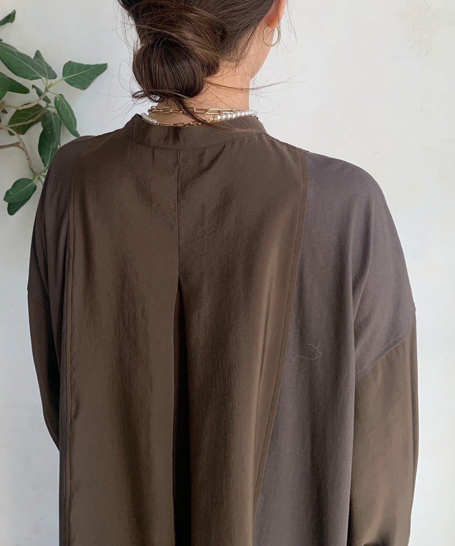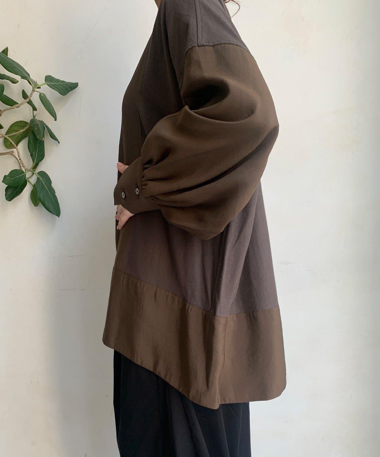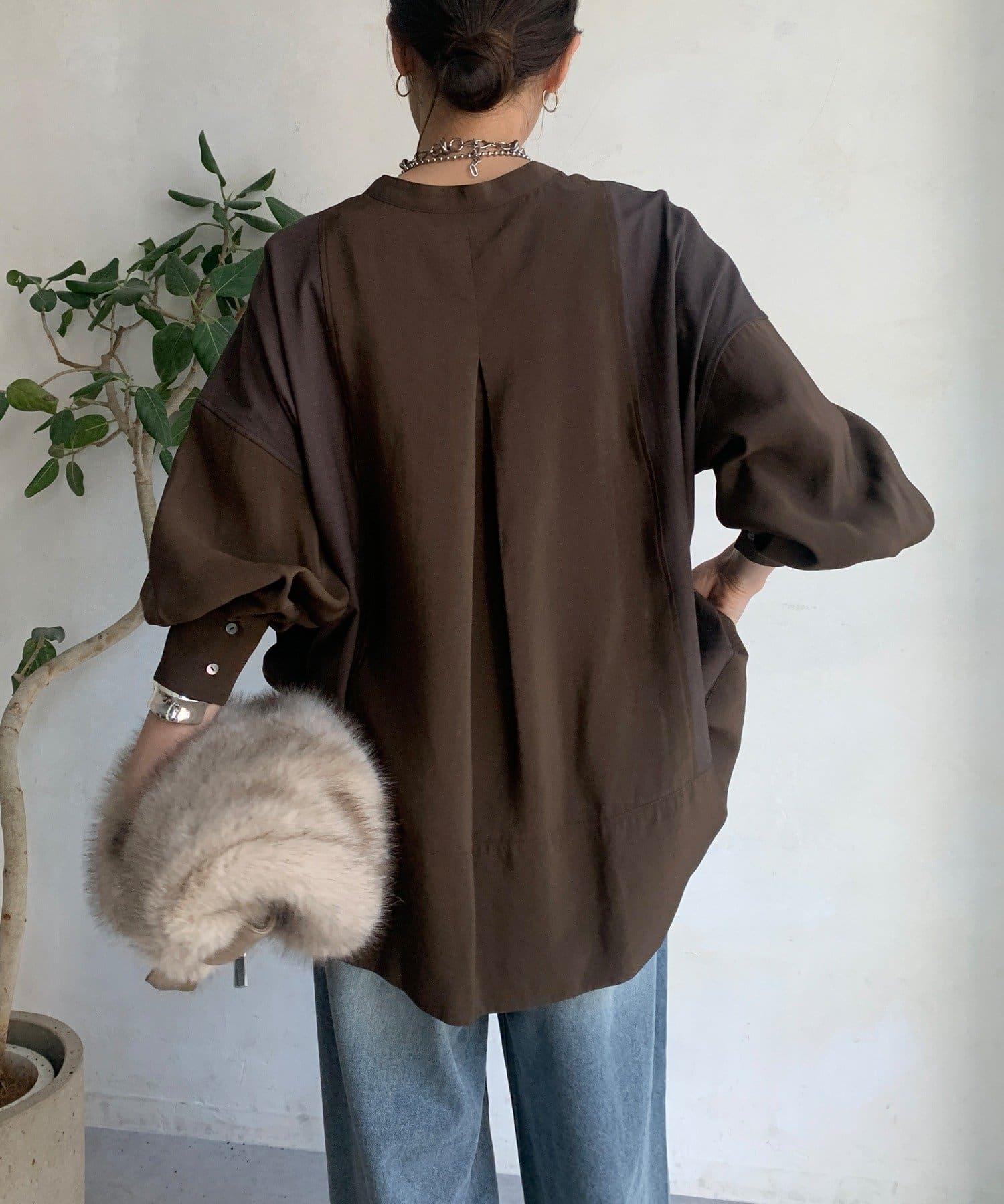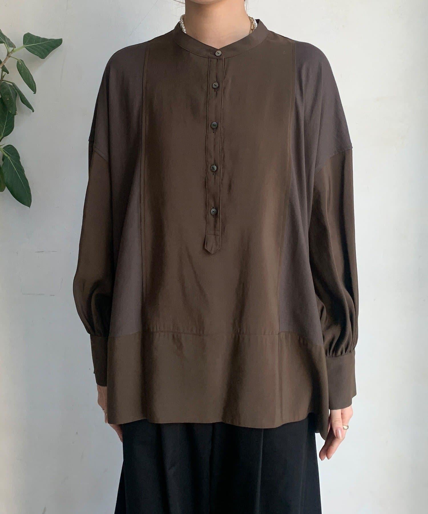 隨意運用的不同材質對接設計,為趨於單調的襯衫款式增添了層次感。
