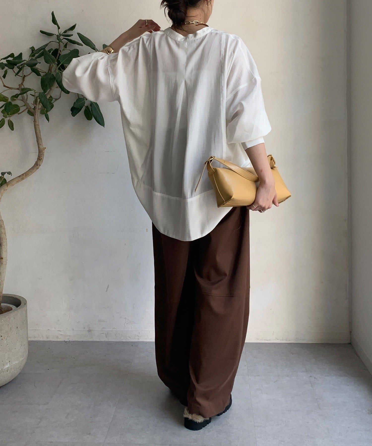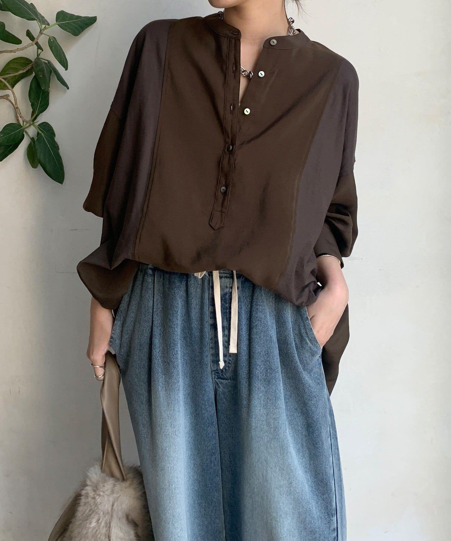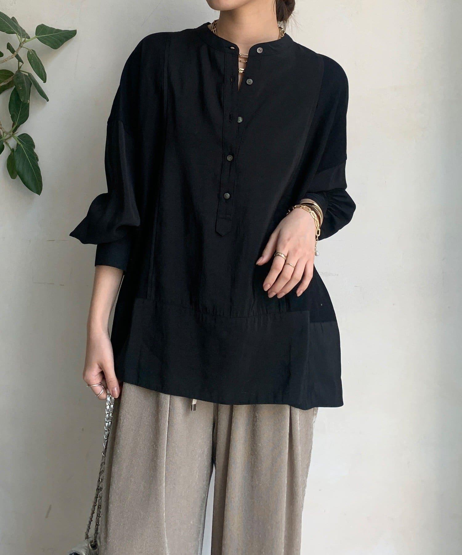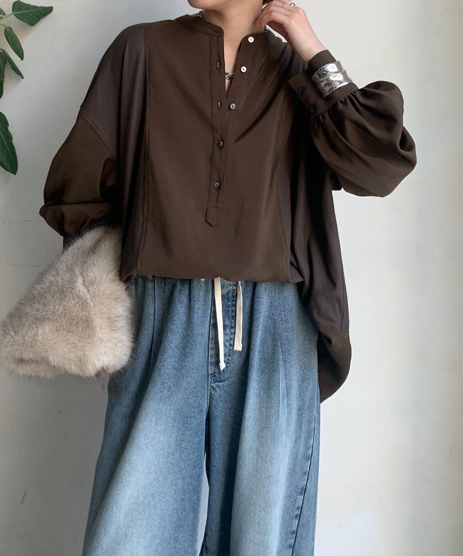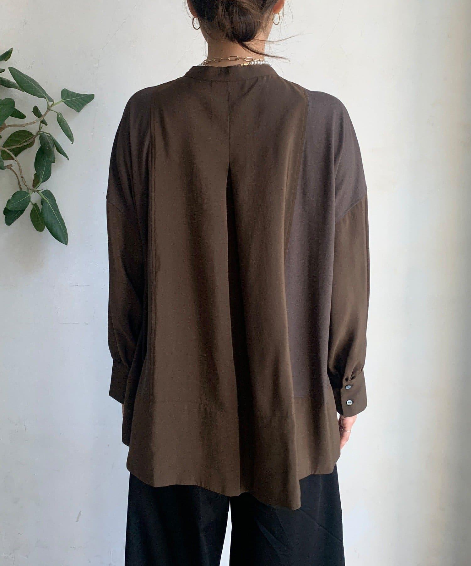 隨意運用的不同材質對接設計,為趨於單調的襯衫款式增添了層次感。