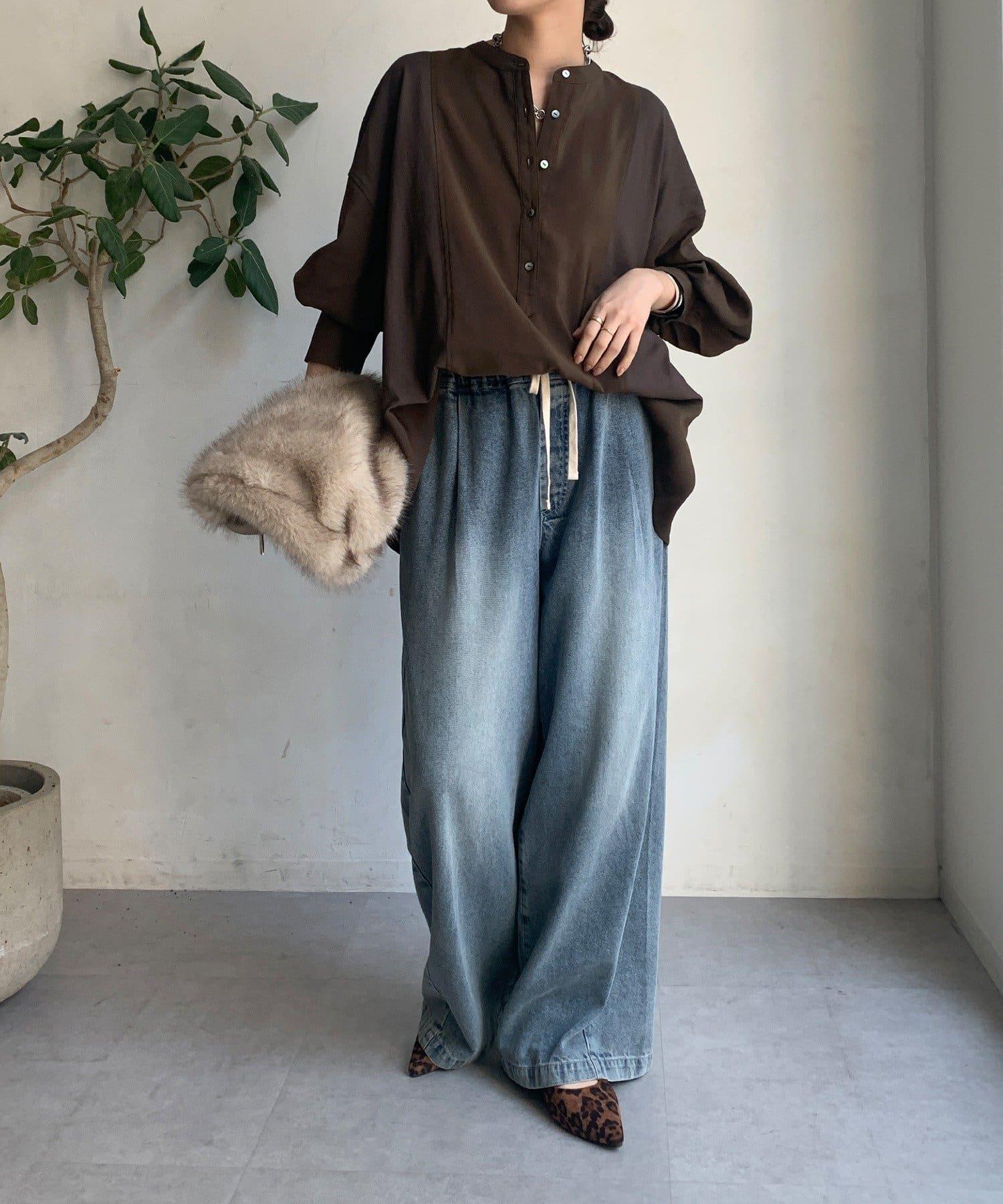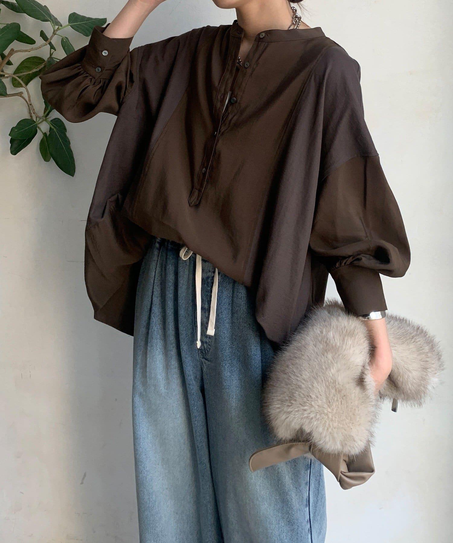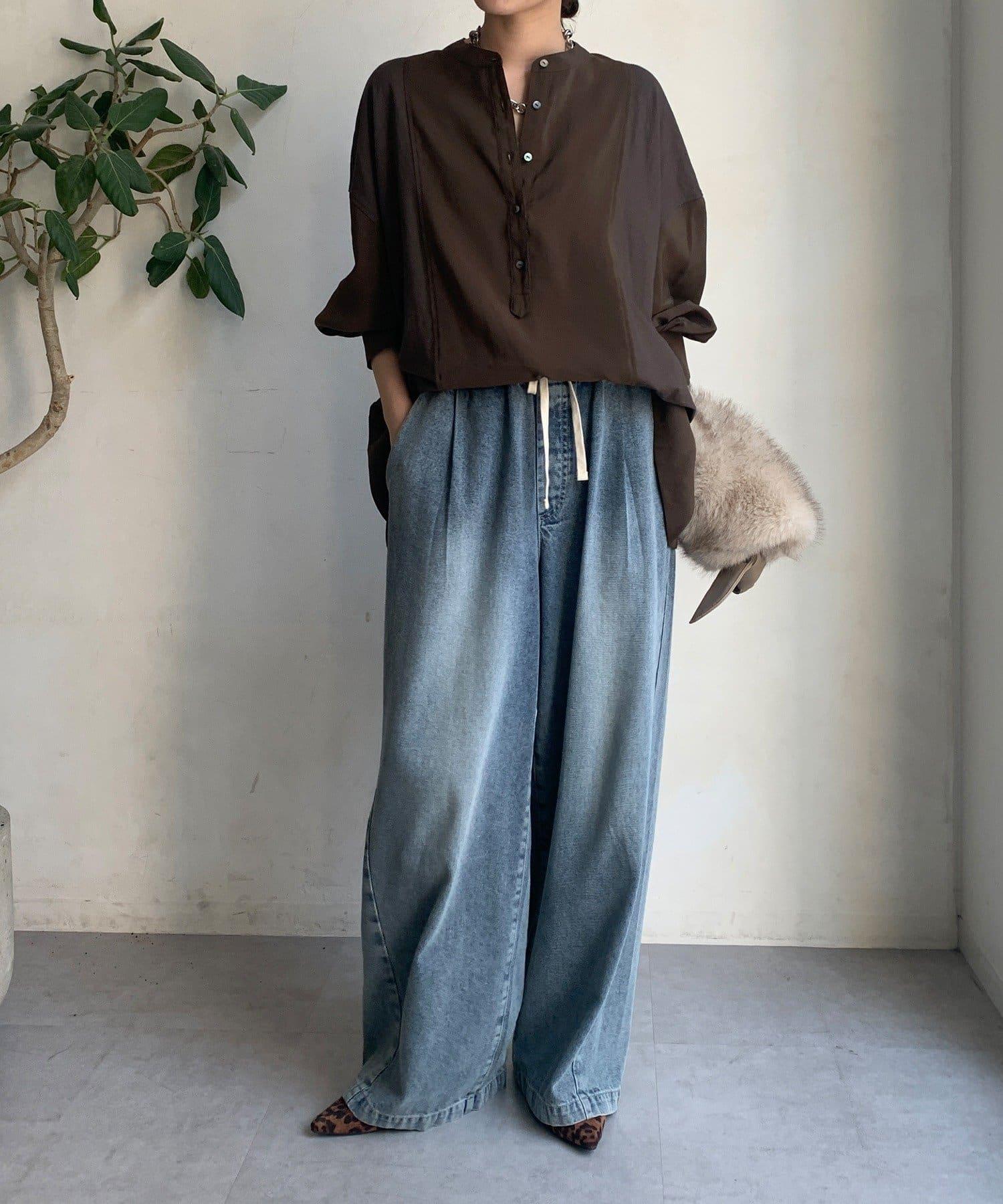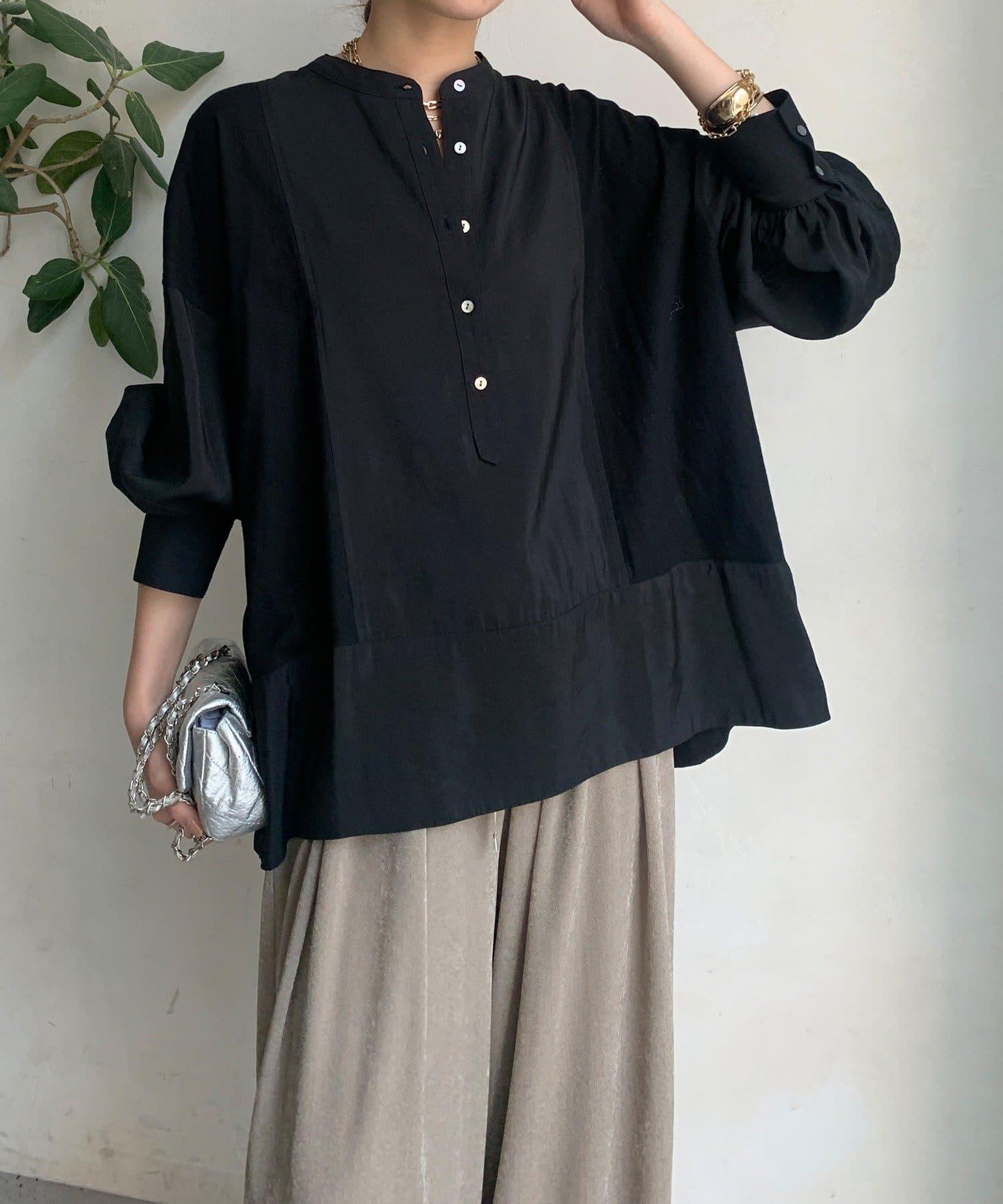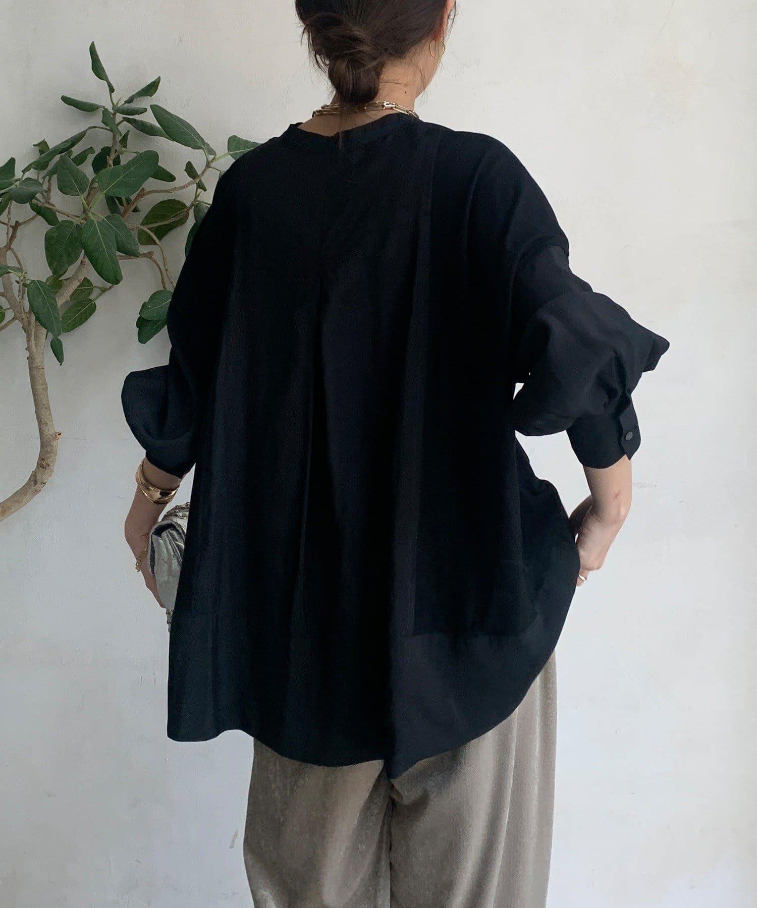 隨意運用的不同材質對接設計,為趨於單調的襯衫款式增添了層次感。