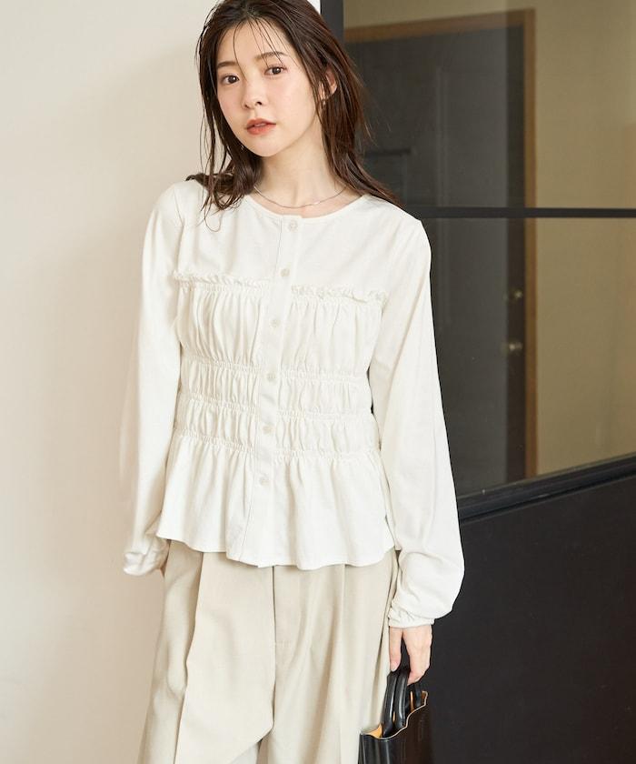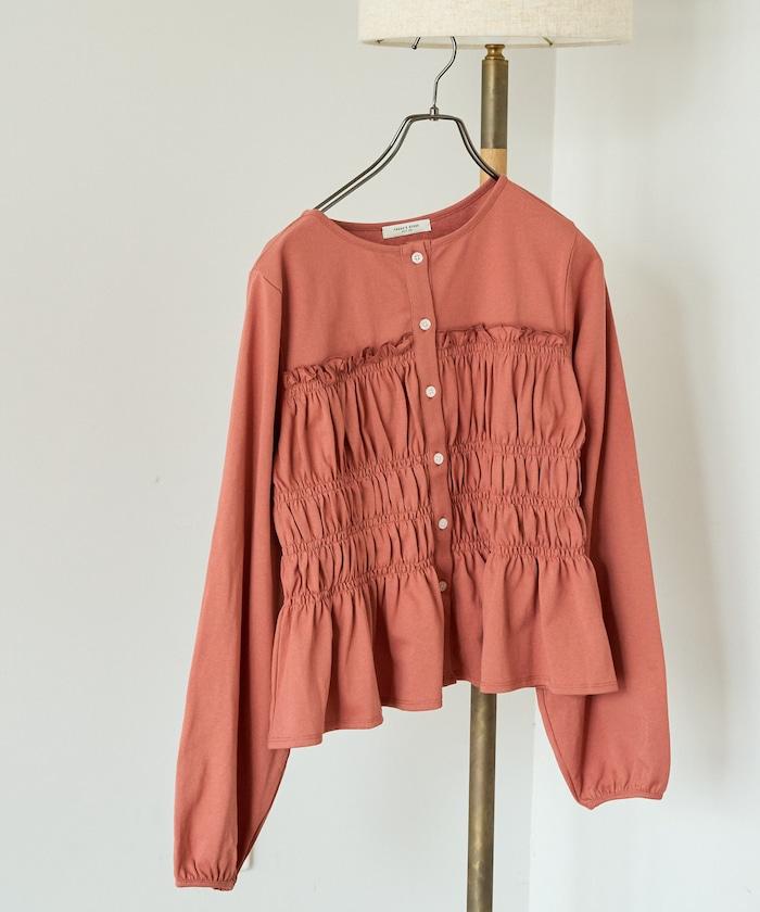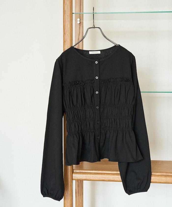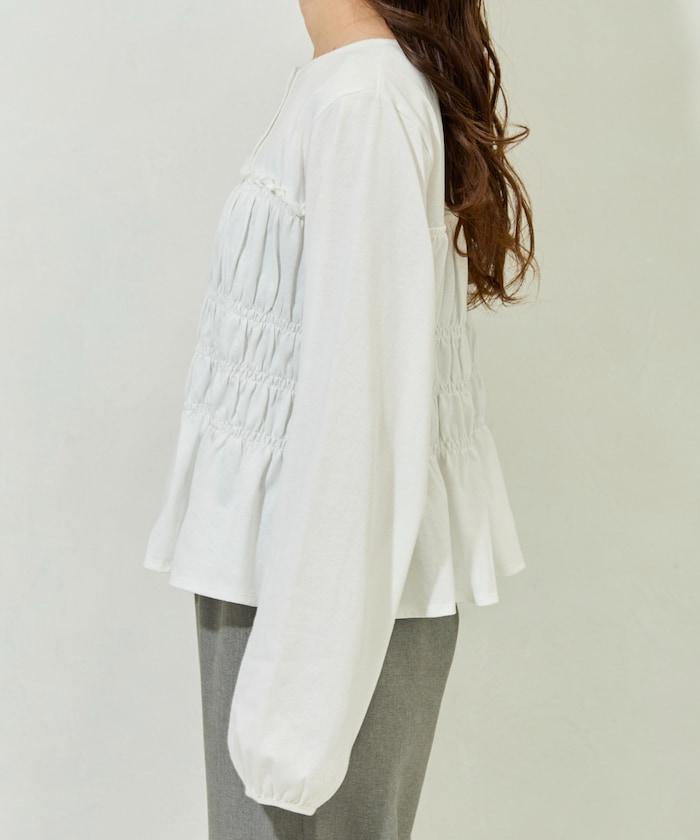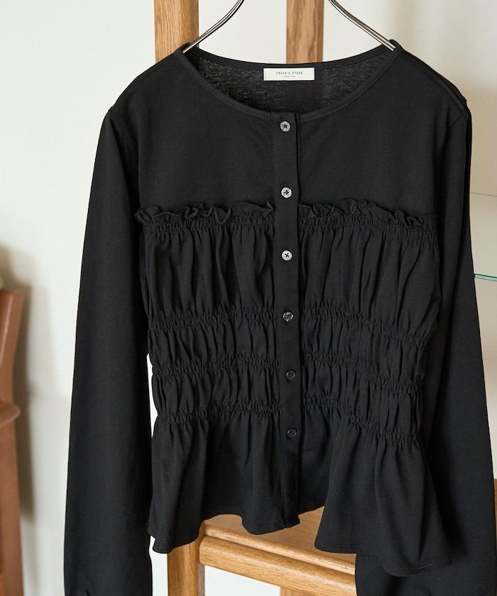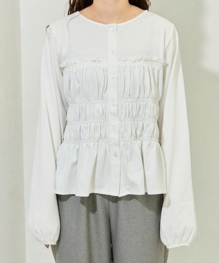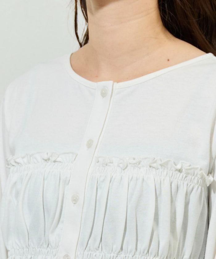 剪裁褶皺紐扣開衫