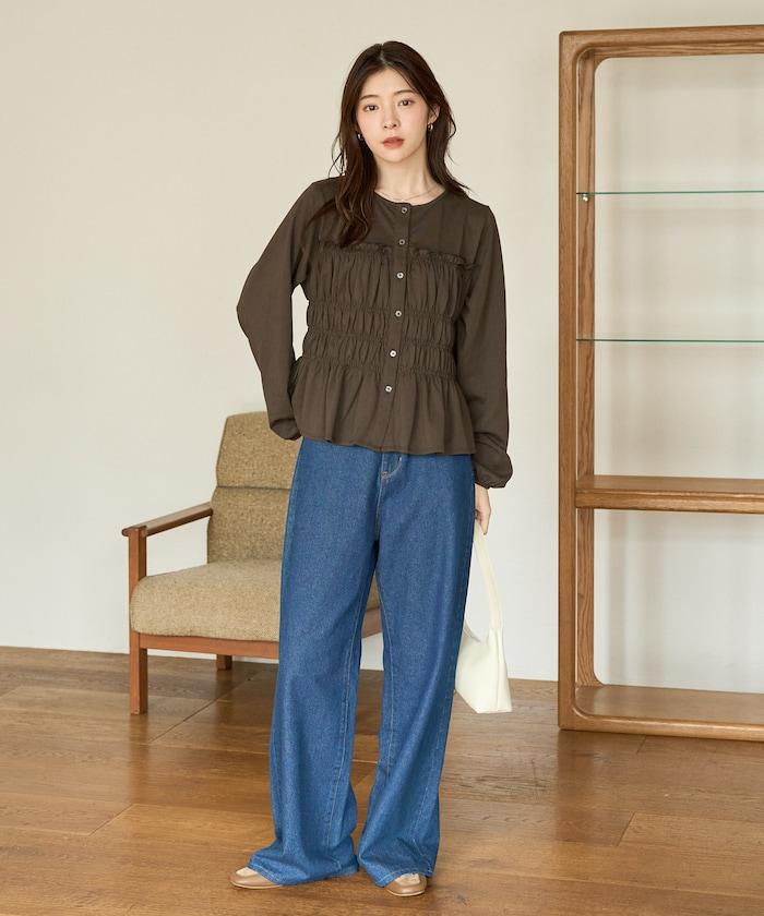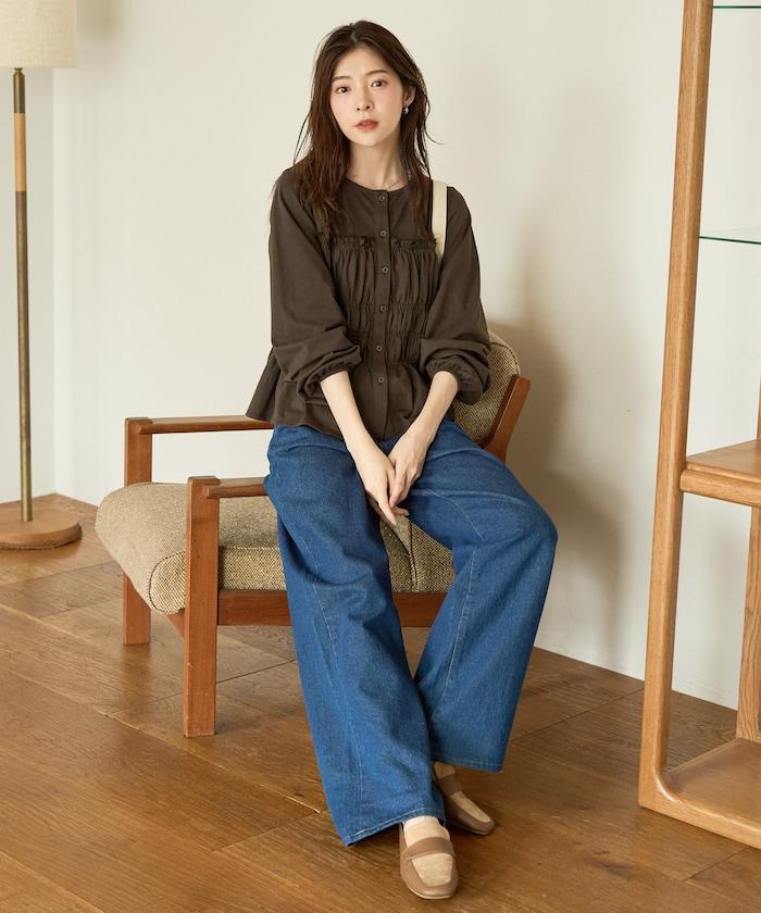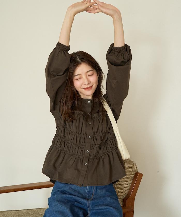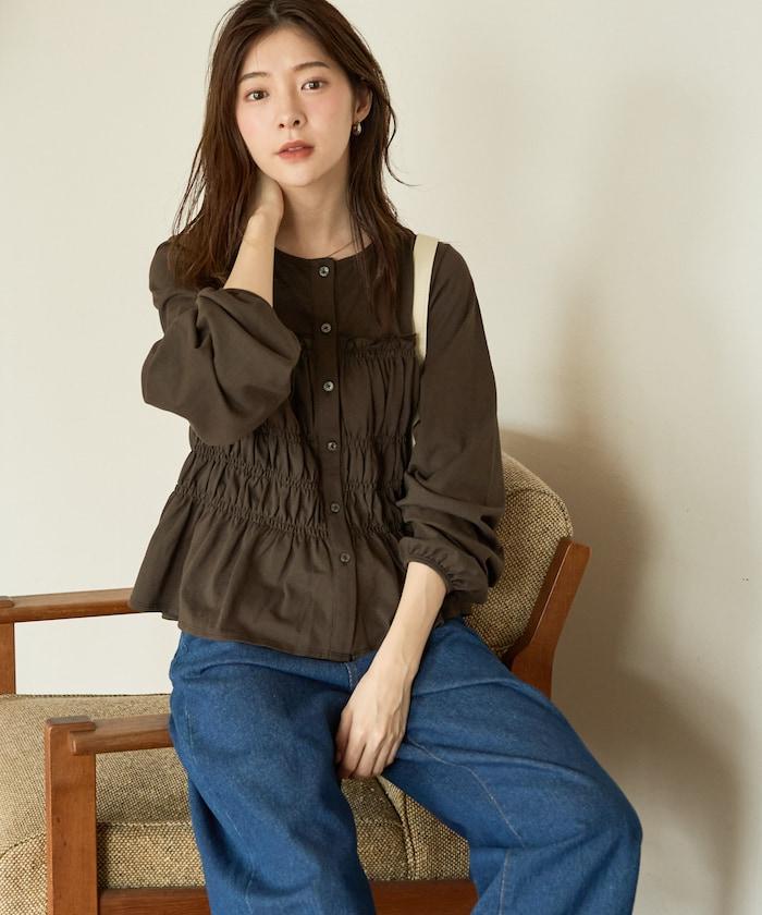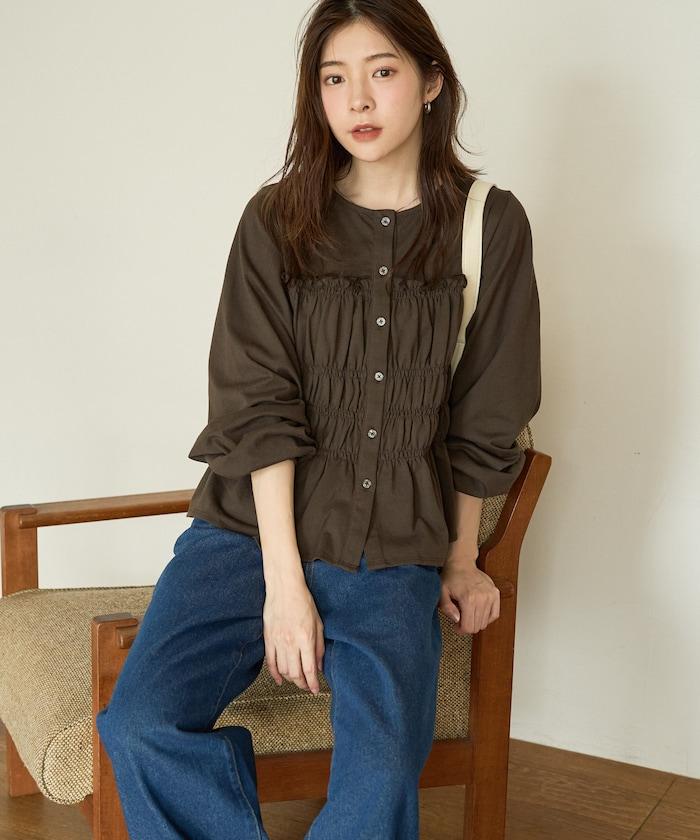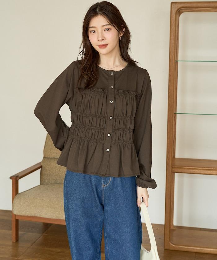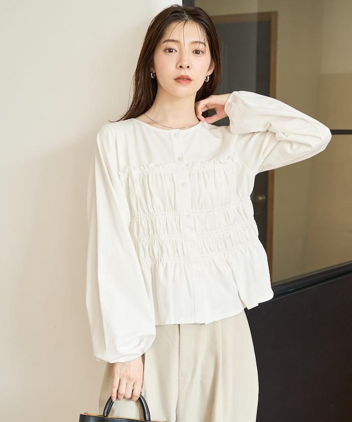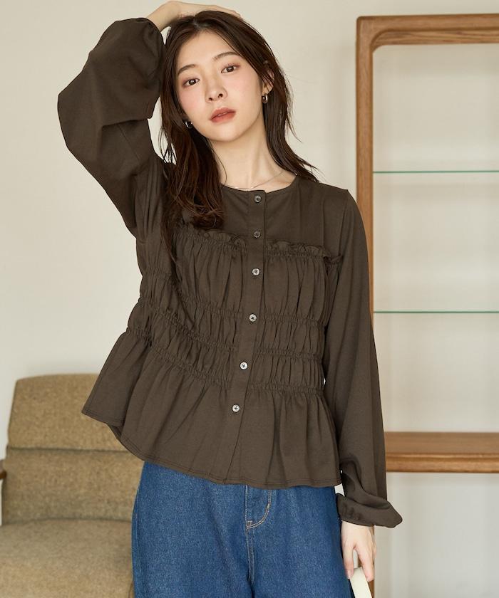 剪裁褶皺紐扣開衫