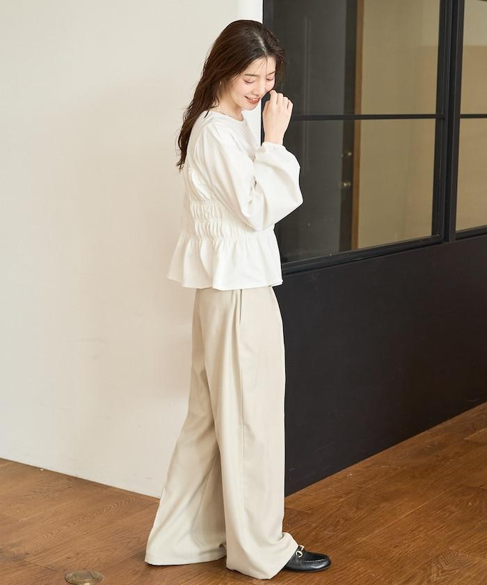 在微妙色彩的單色搭配中加入金色配飾,打造高品質的女性造型。