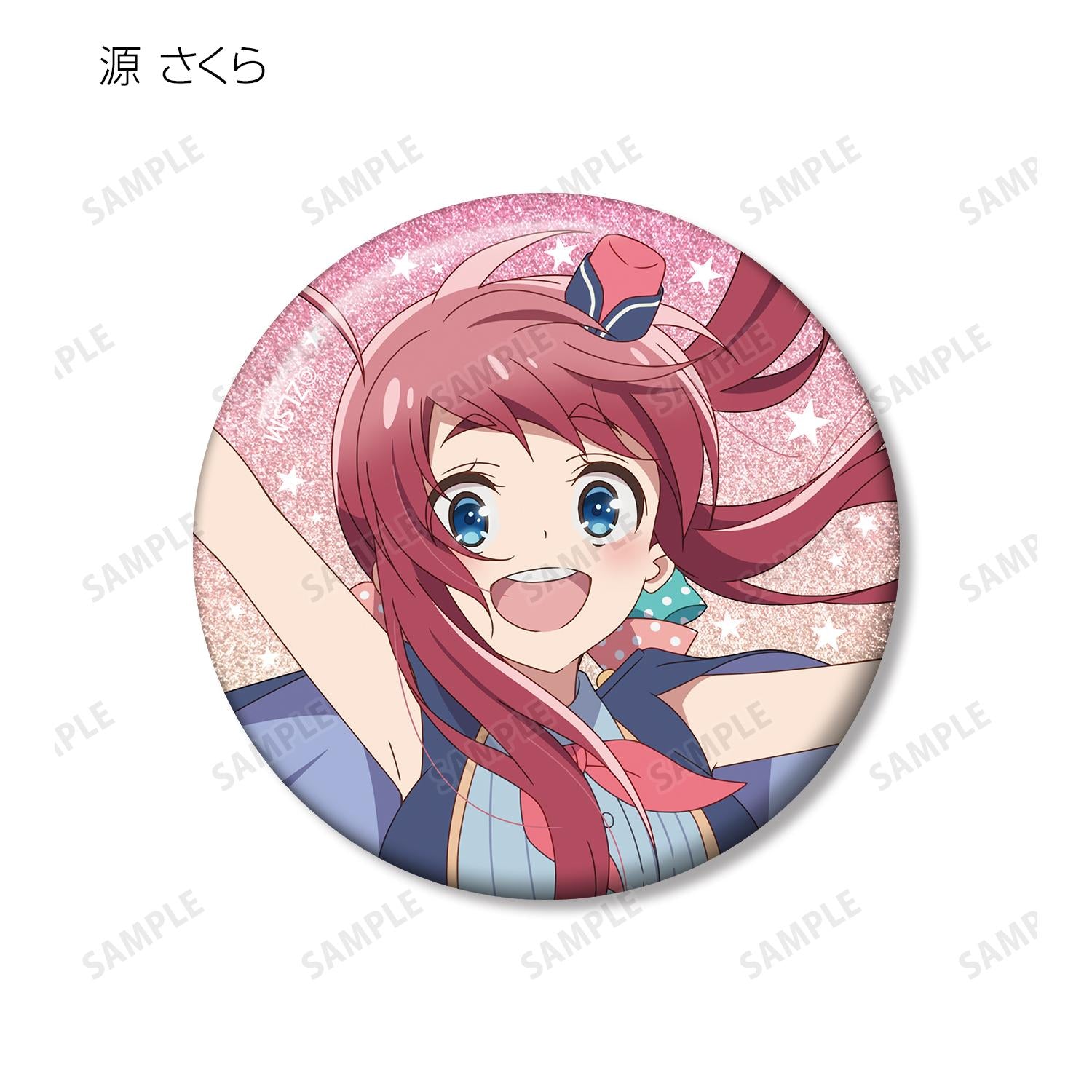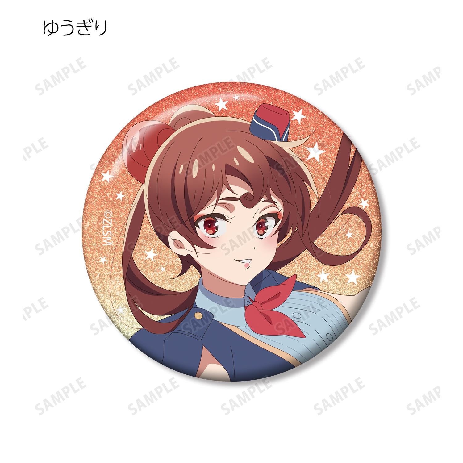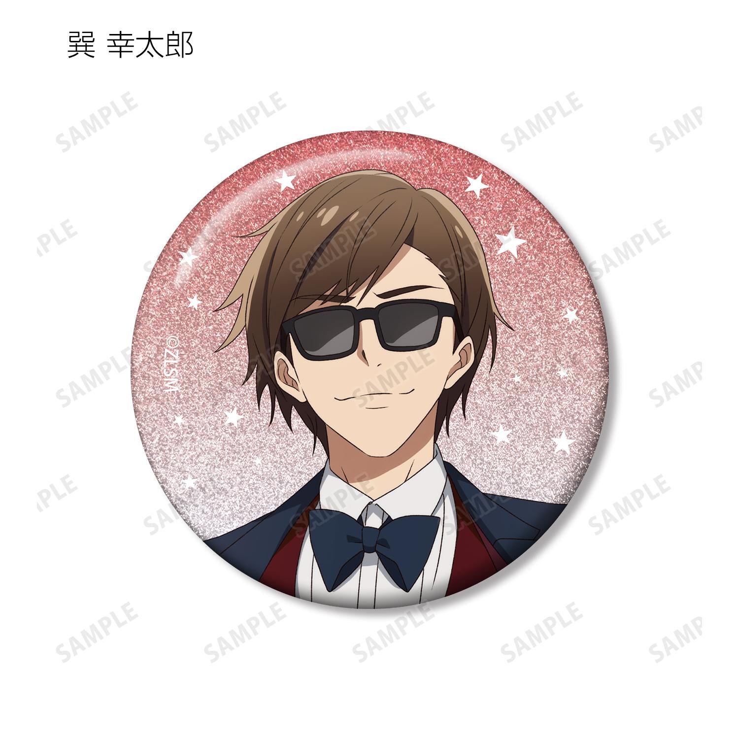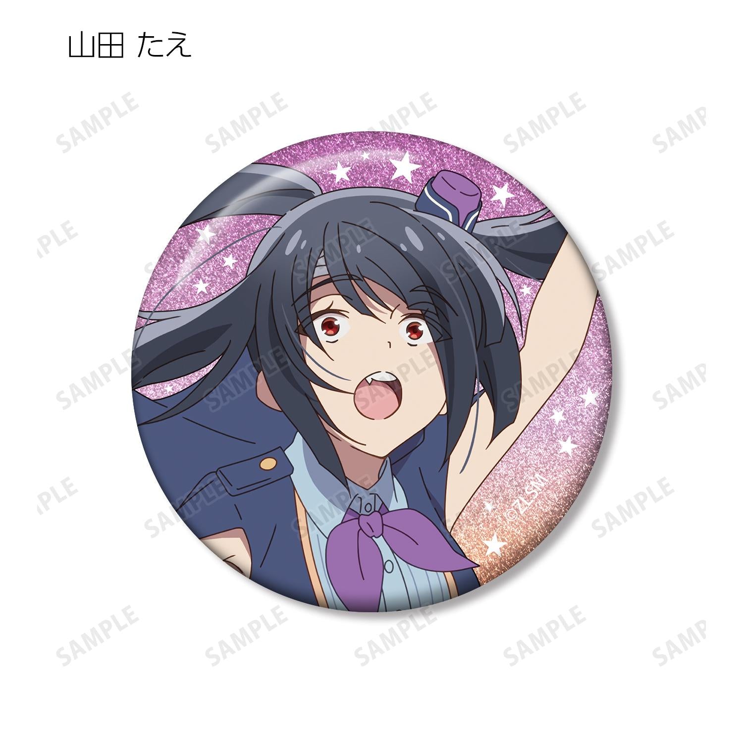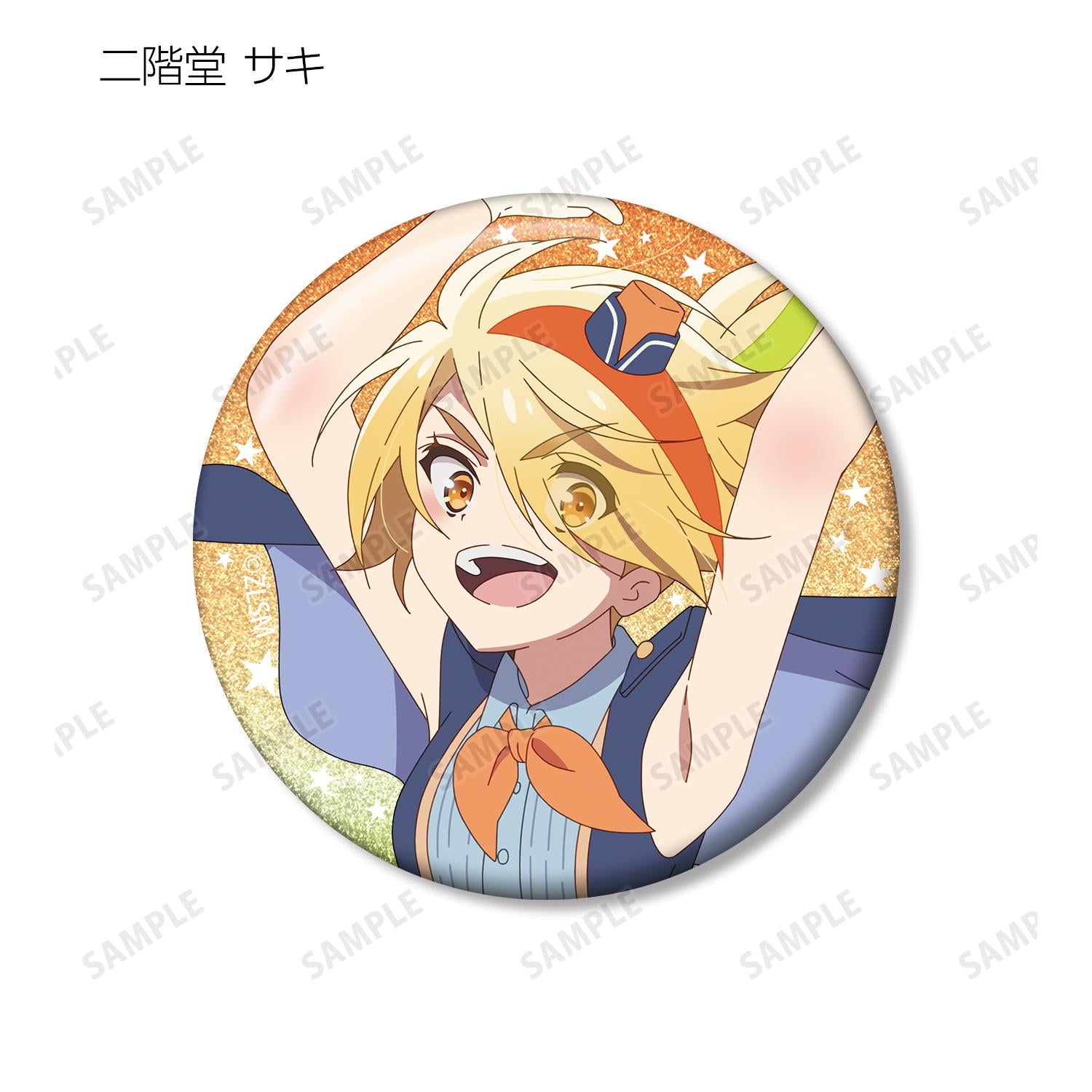 將南本櫻、日海道咲、水野愛、近野順子、夕日紅、星川百合、山田多惠、辰巳浩太郎和羅梅羅的插畫用閃粉加工成罐頭徽章。