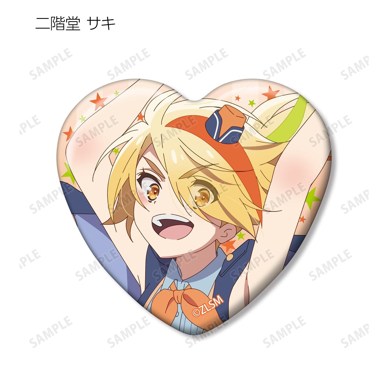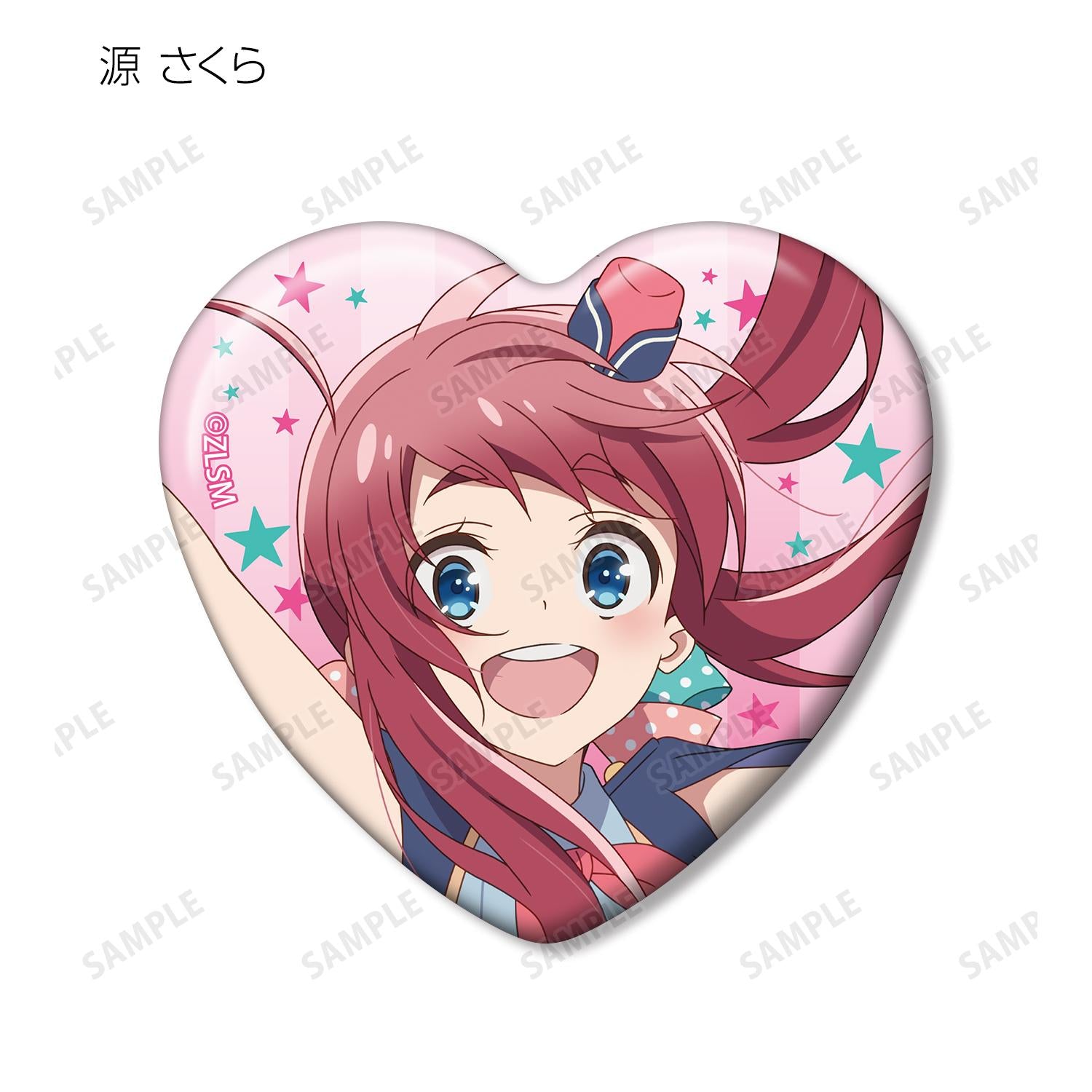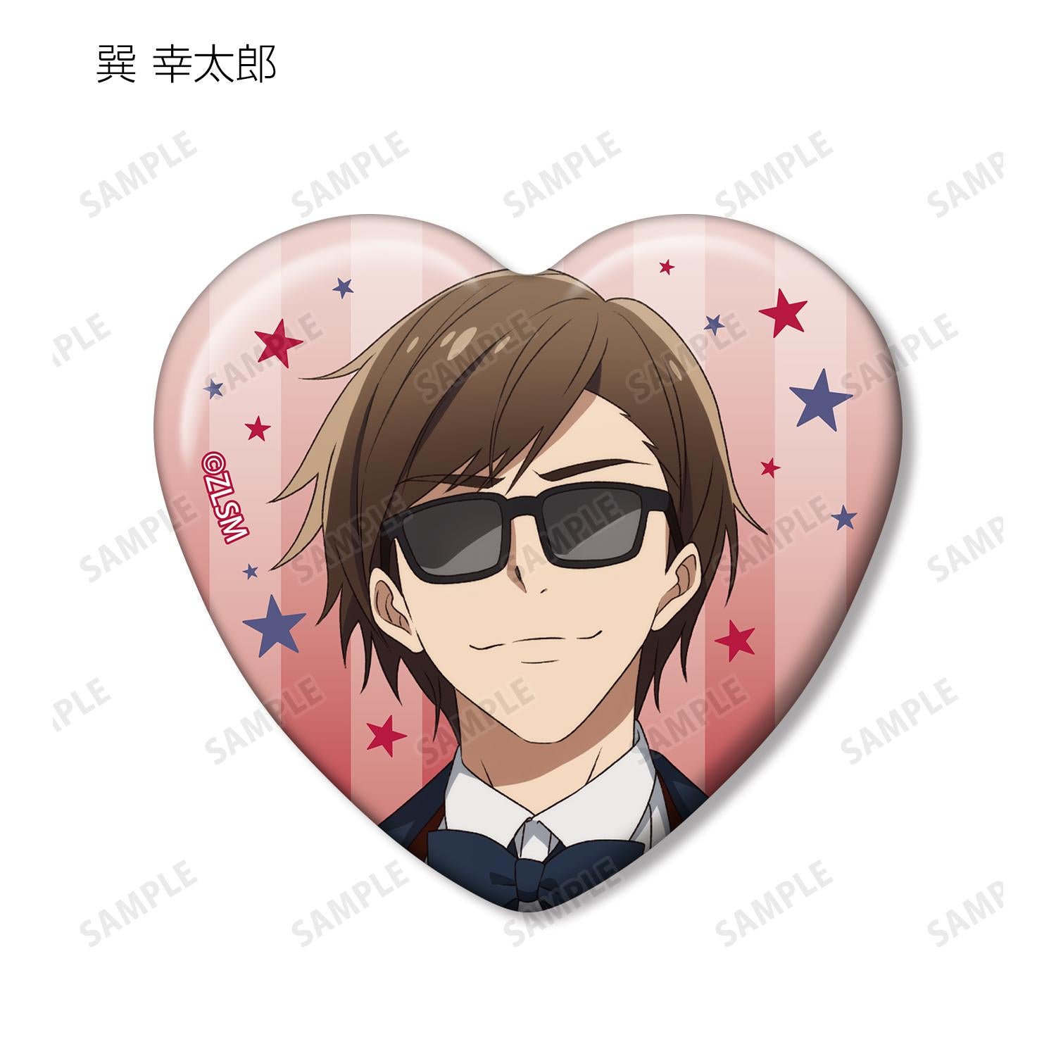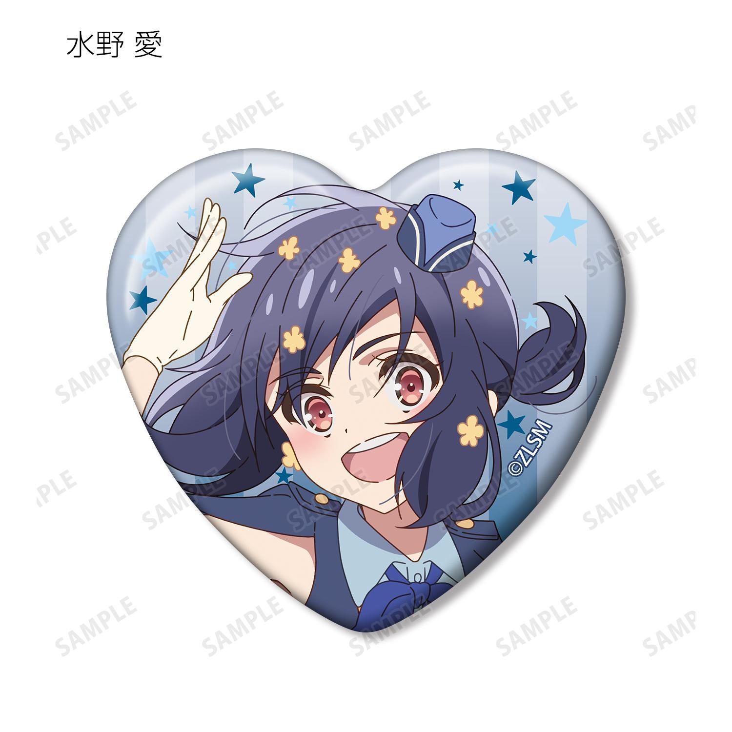 將南本櫻、日海堂咲、水野愛、近野順子、夕日紅、星川百合、山田多惠、辰巳浩太郎和羅梅羅的插圖製作成心形徽章。