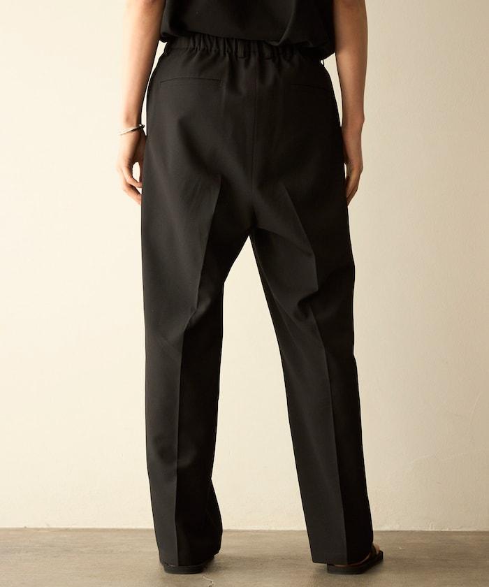 長褲採用勻稱的寬大剪裁,從襠部到下襬呈一條直線。