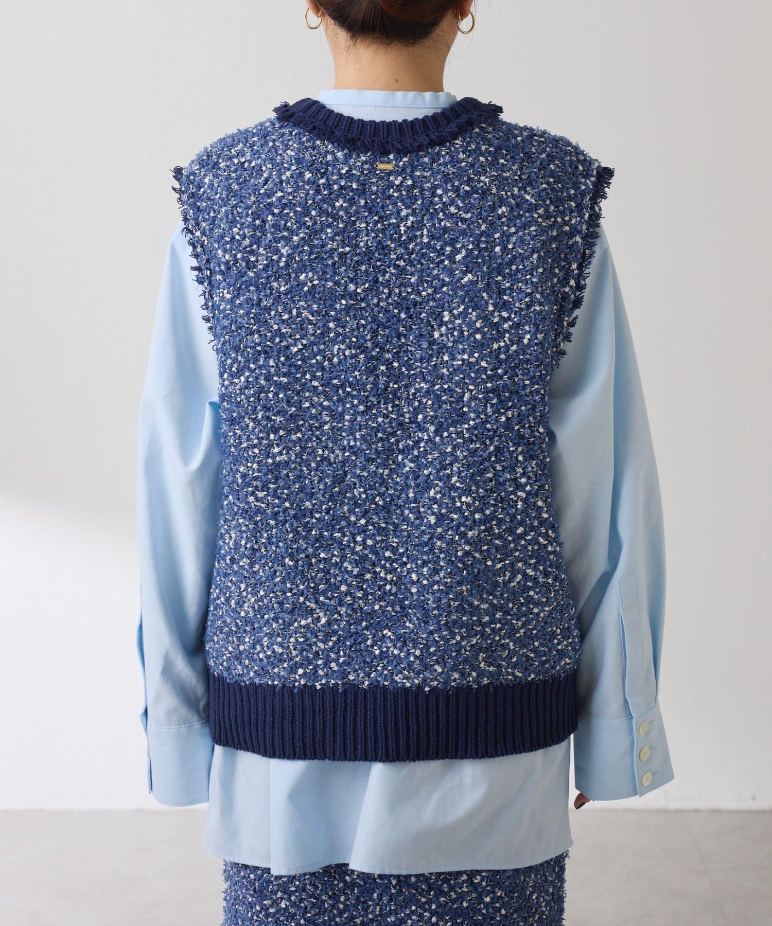 深 U 形針織馬甲帶有花呢外觀,為您的搭配增添一抹亮色。