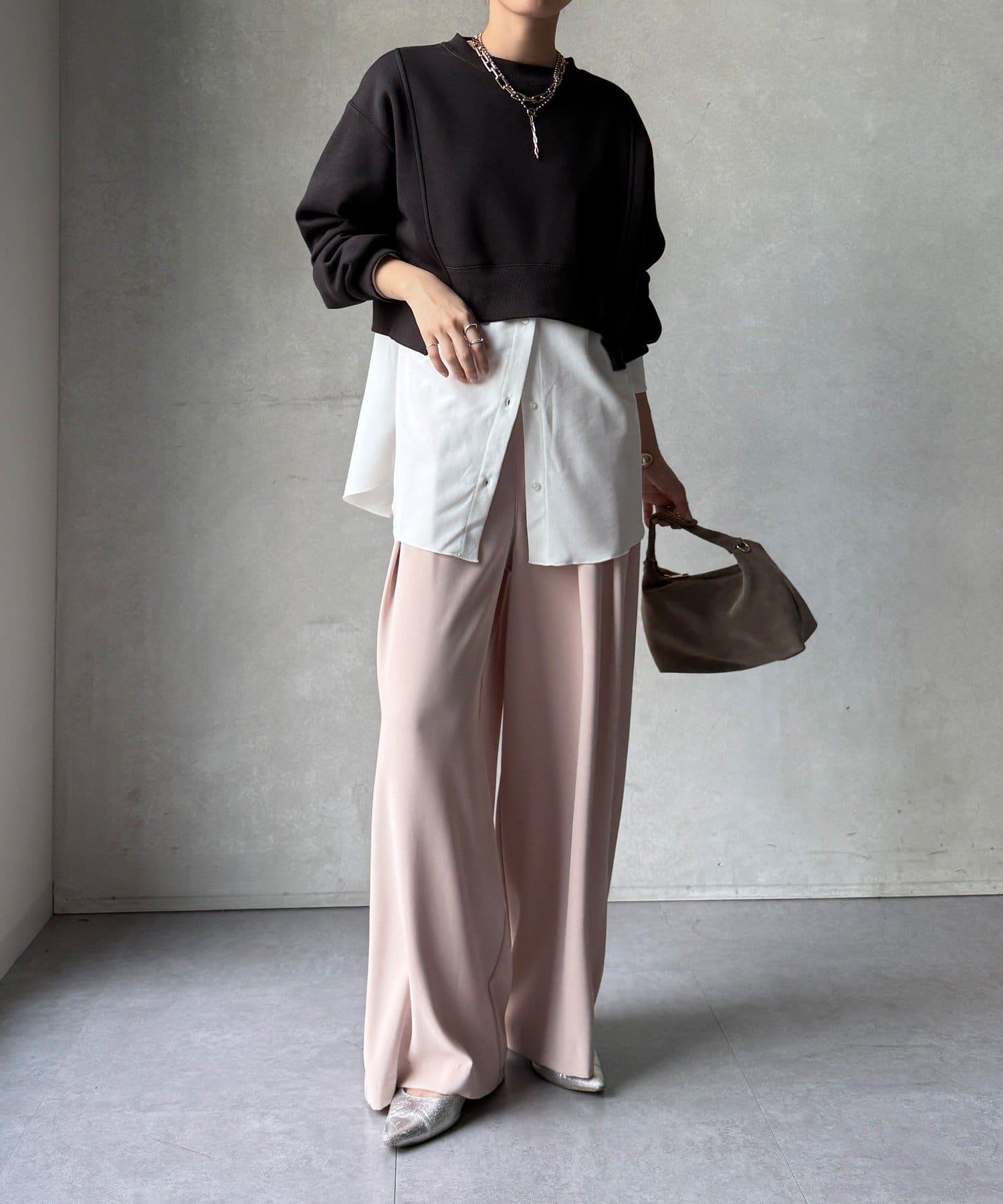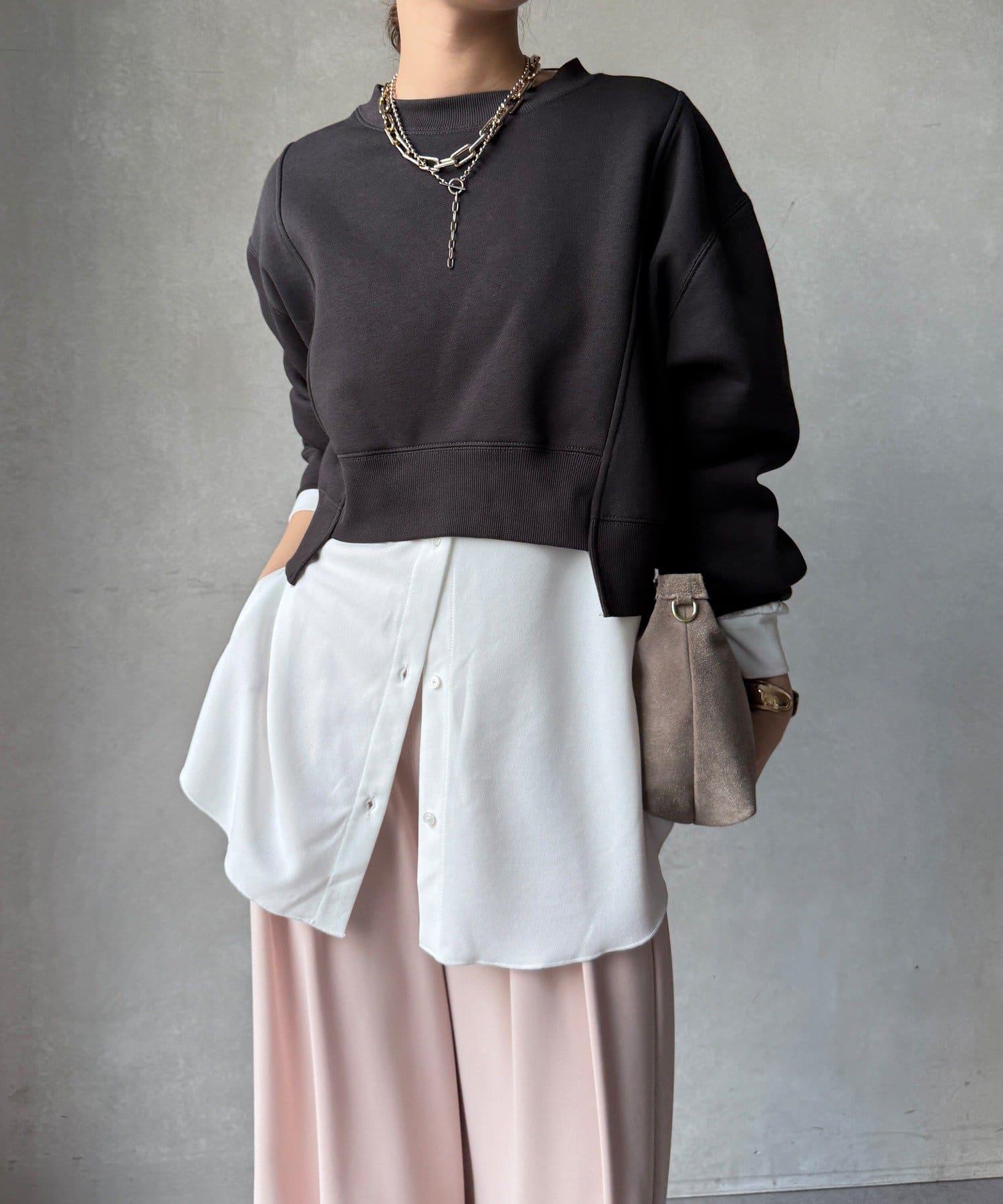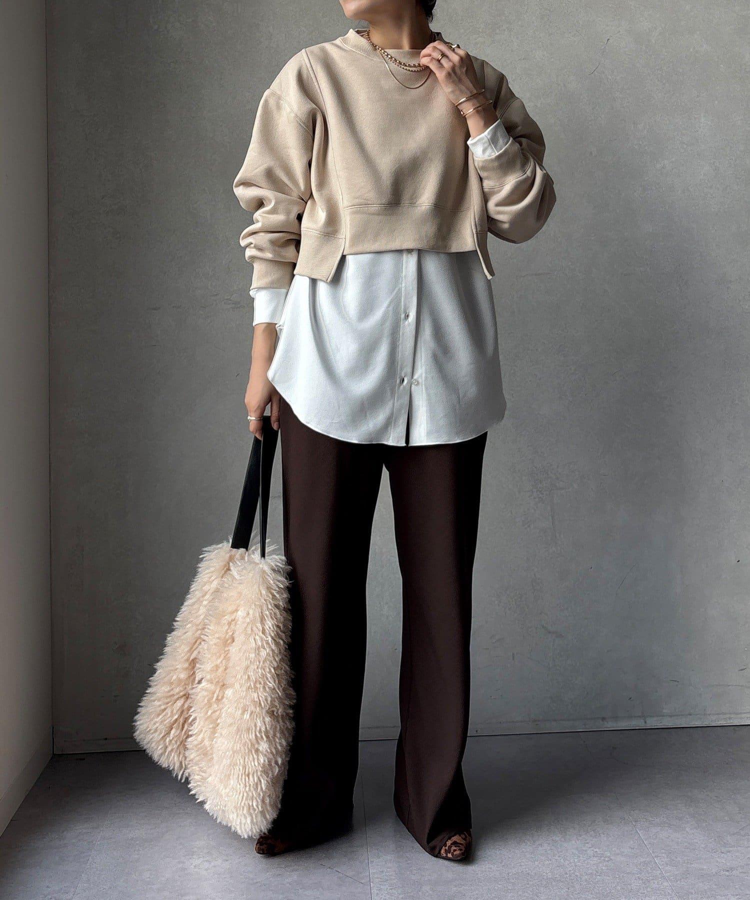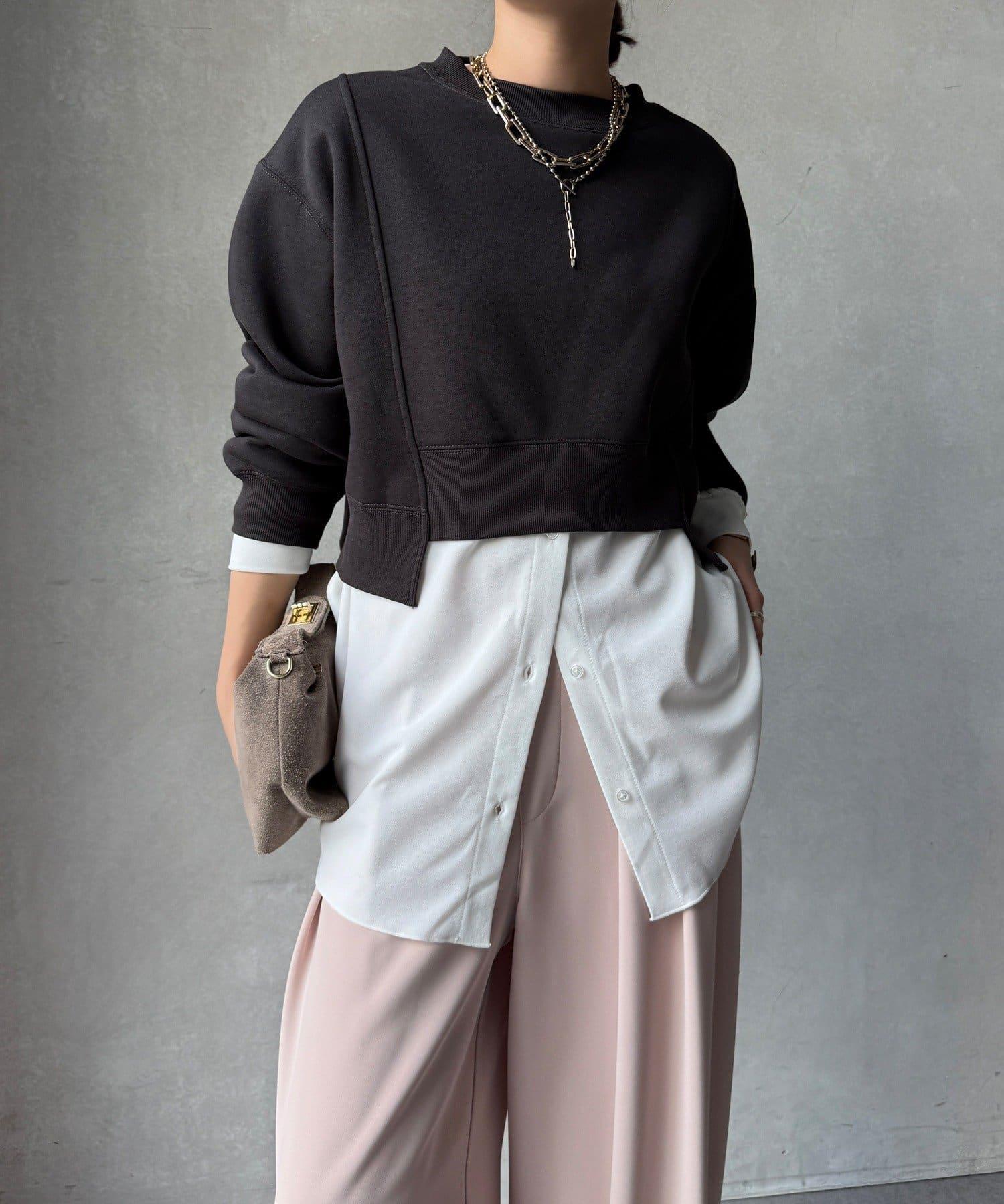時尚的短款上衣可以疊穿,打造更精緻的造型。與套裝中的內搭一起穿,自然呈現層次感。您可以根據自己的心情和搭配,享受套裝或單獨穿著的樂趣。
