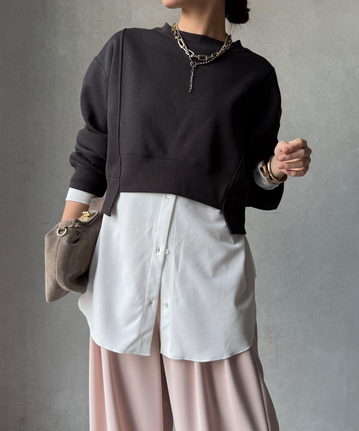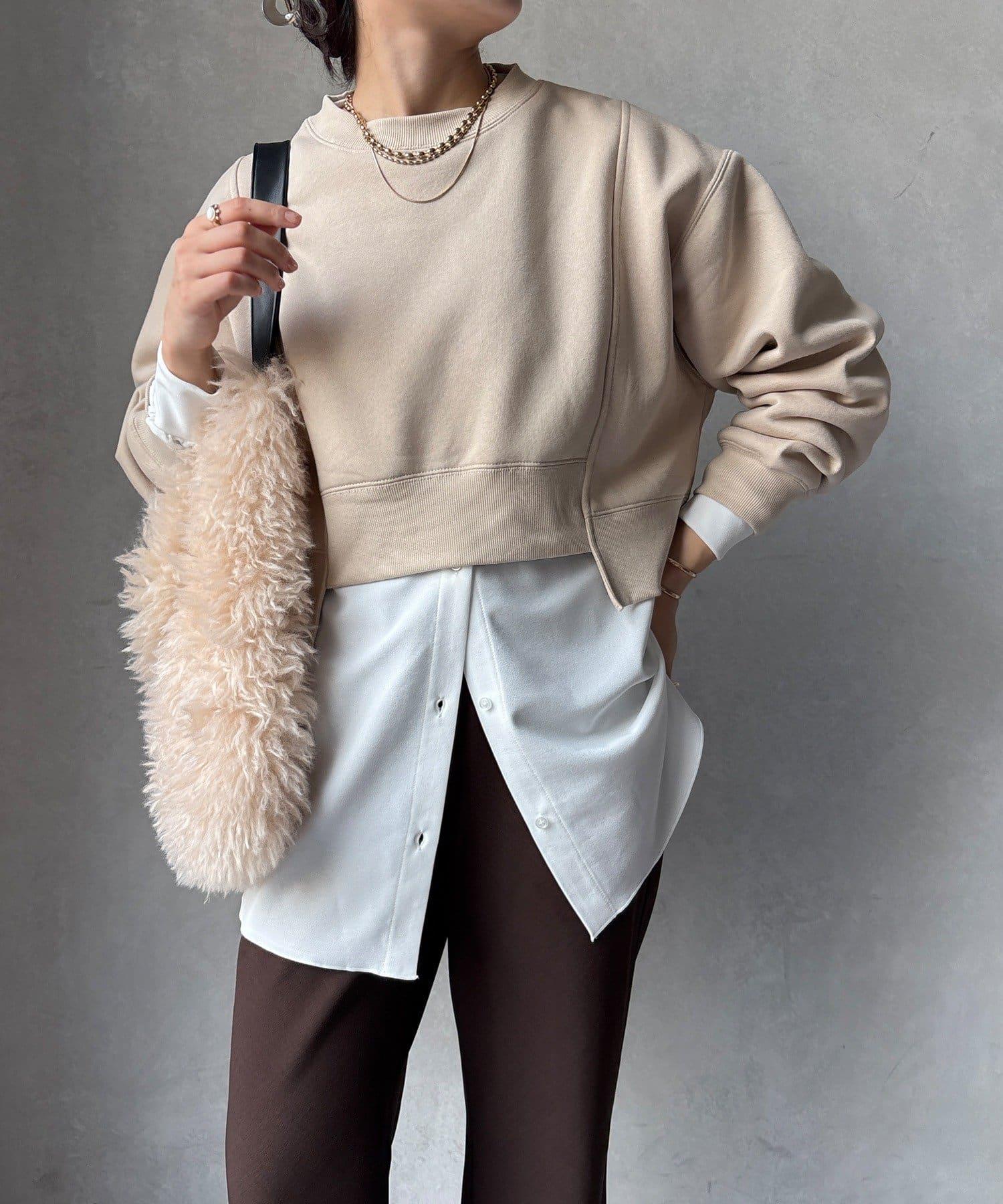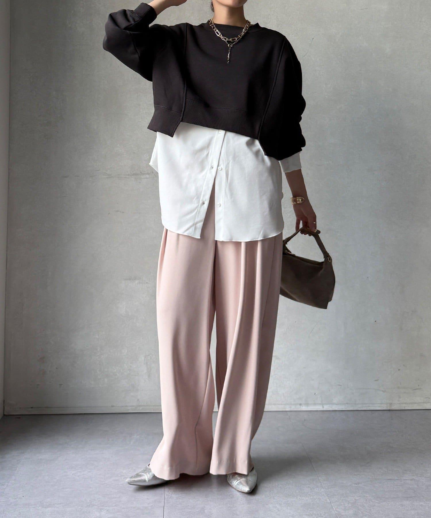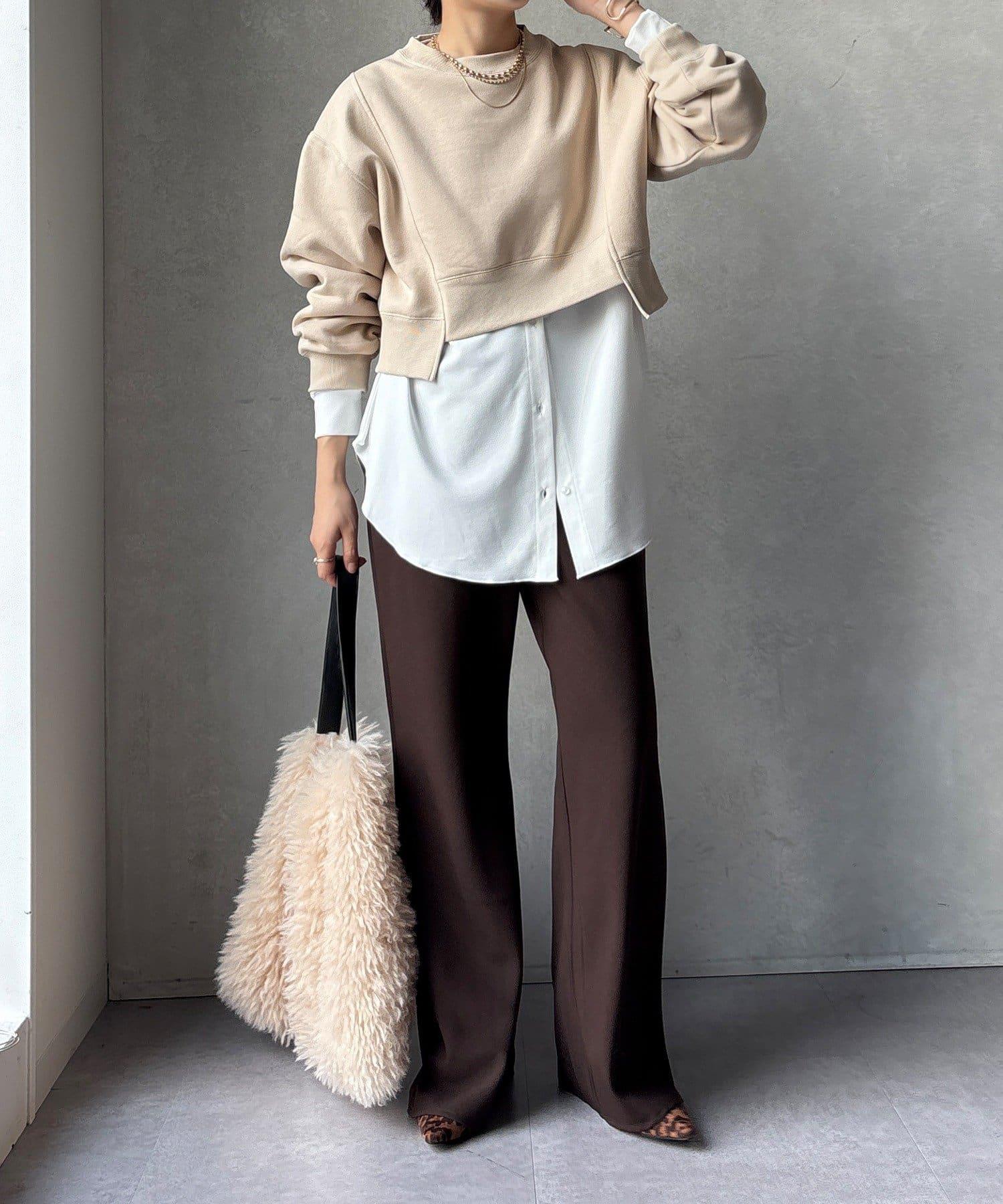 時尚的短款上衣可以疊穿,打造更精緻的造型。與套裝中的內搭一起穿,自然呈現層次感。您可以根據自己的心情和搭配,享受套裝或單獨穿著的樂趣。