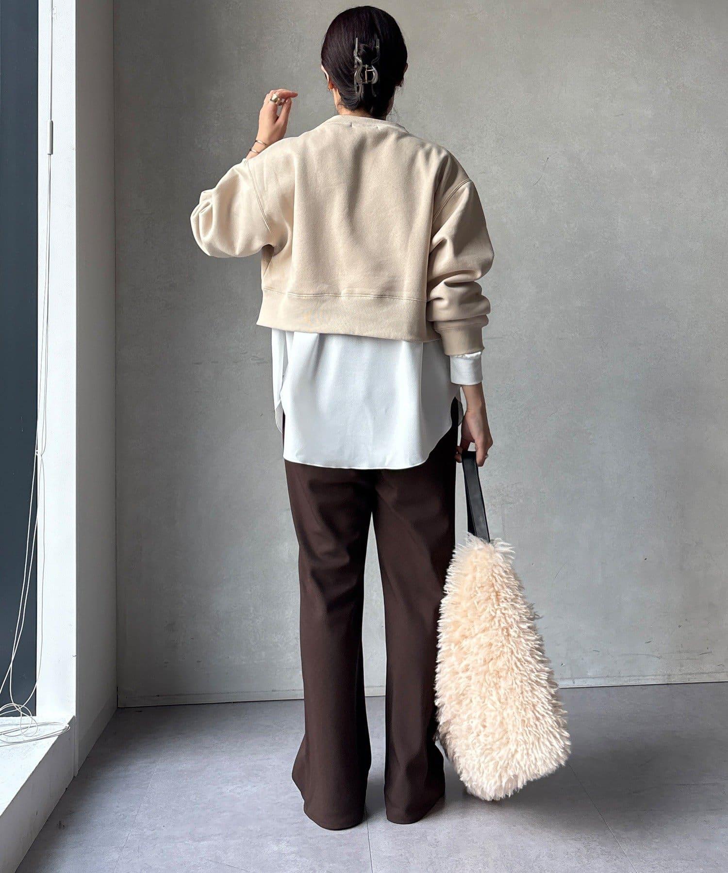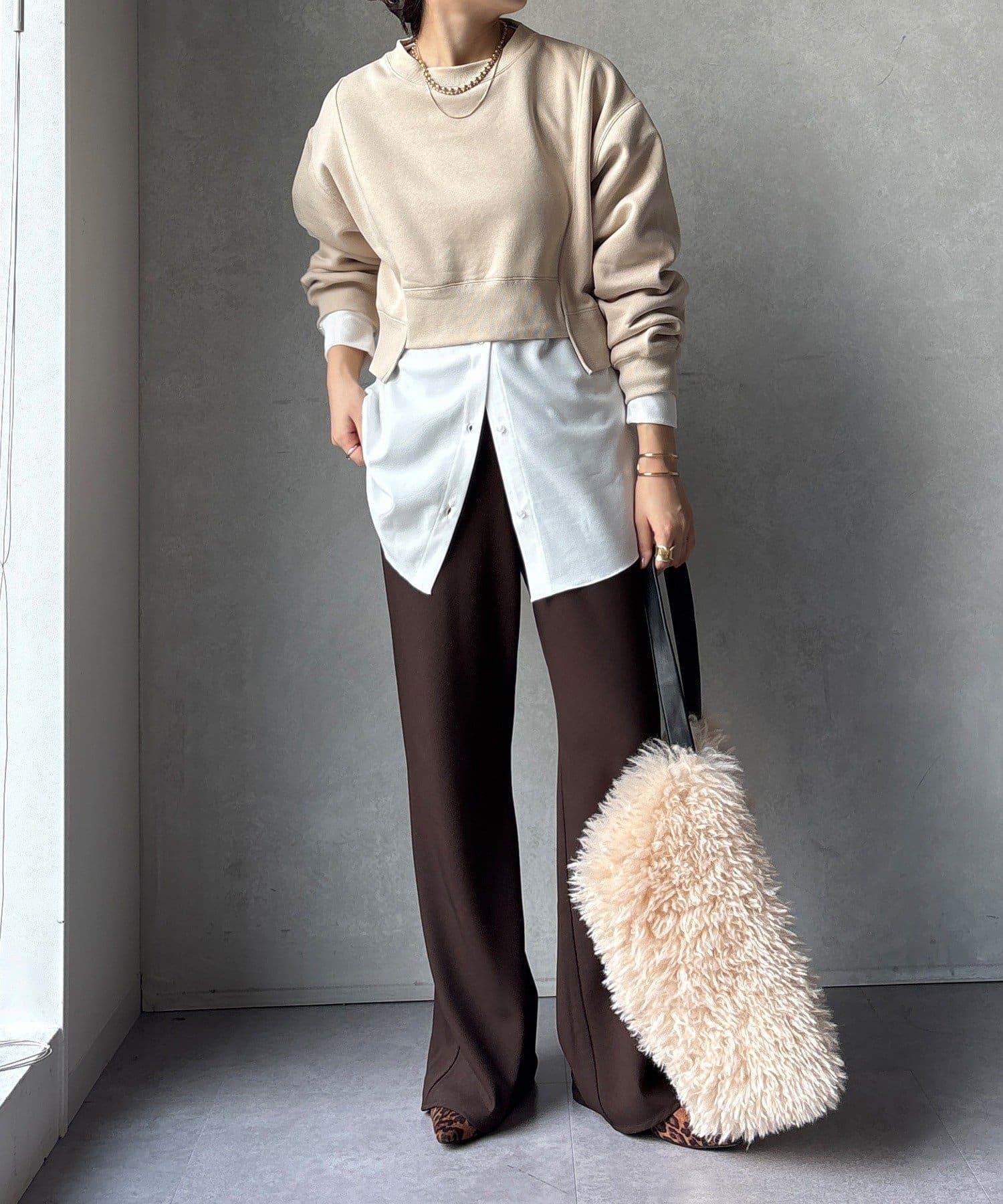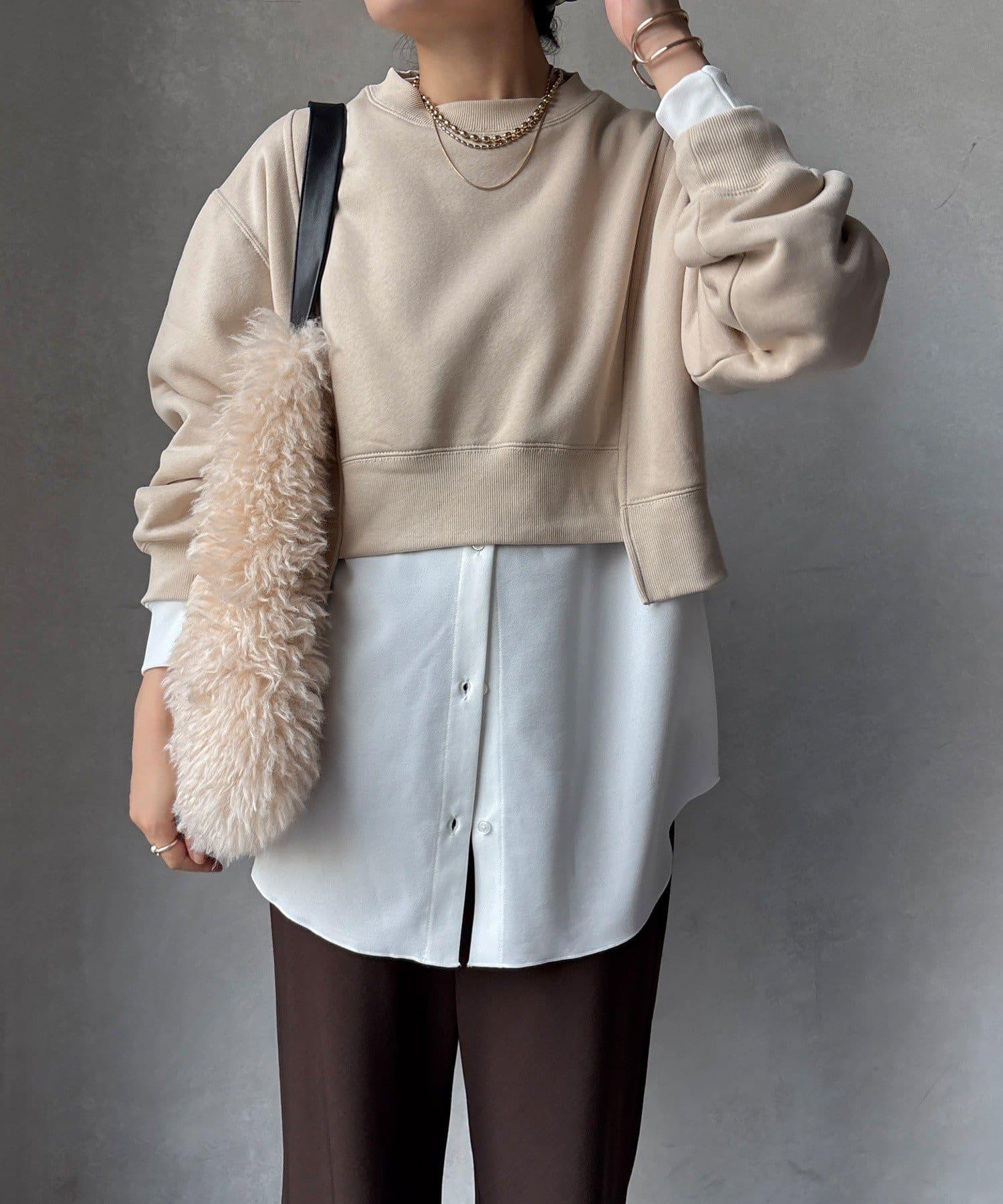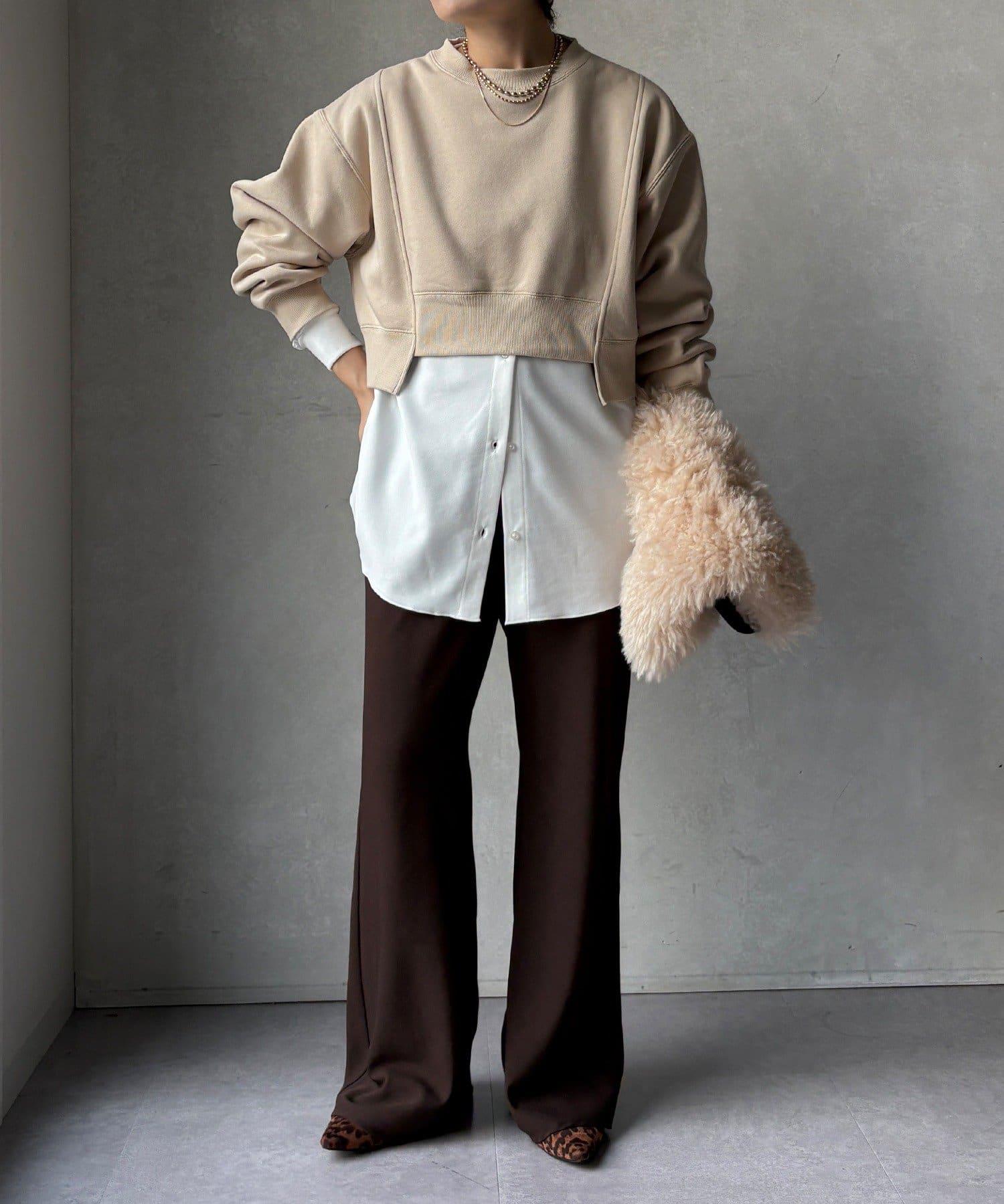 時尚的短款上衣可以疊穿,打造更精緻的造型。與套裝中的內搭一起穿,自然呈現層次感。您可以根據自己的心情和搭配,享受套裝或單獨穿著的樂趣。