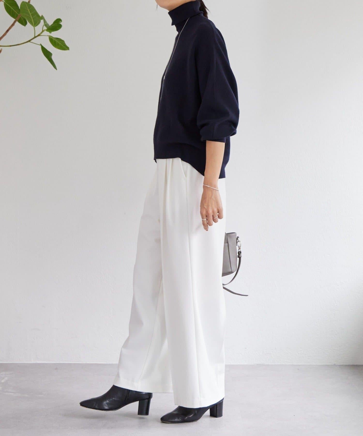 腰部僅在後部有鬆緊帶,並且有腰帶環,因此您可以通過繫腰帶來隱藏鬆緊帶部分。