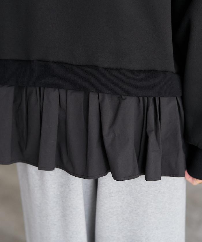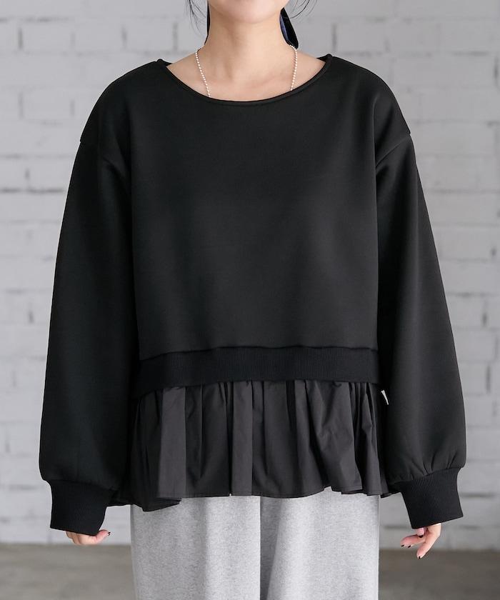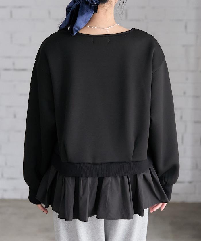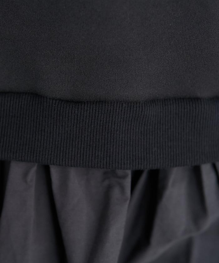 一件由不同材質製成的上衣,將彈性十足的襯衫面料和柔軟輕盈的後背填充運動衫對接在一起。