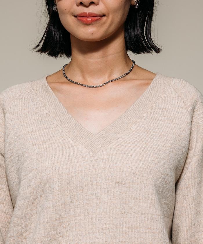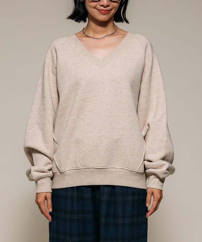 整齊地露出臉部的 V 領設計,也是一種可以與內衣疊穿的設計,是一種實現風格提升的設計。