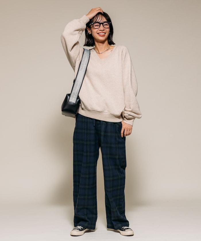 即使搭配長褲,寬鬆的領口也會讓它看起來更有女人味。特別推薦給想穿清爽風格衛衣的人和經常穿長褲的人。