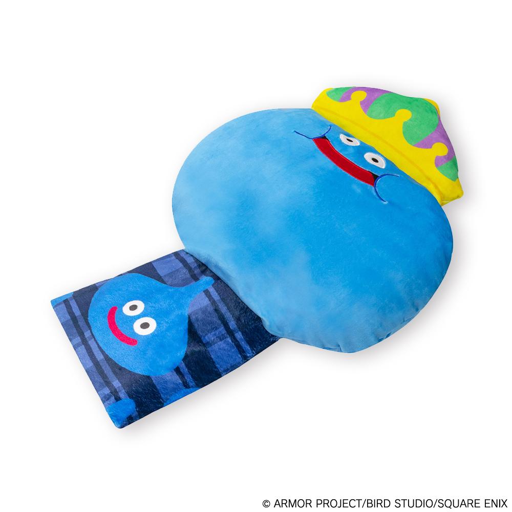 這款坐墊毯可收納在史萊姆王形狀的坐墊內,毯子上設計有 8 個史萊姆。