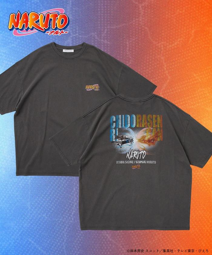 寬鬆版型顏料背面印花 T 恤 "火影忍者 VS 佐助