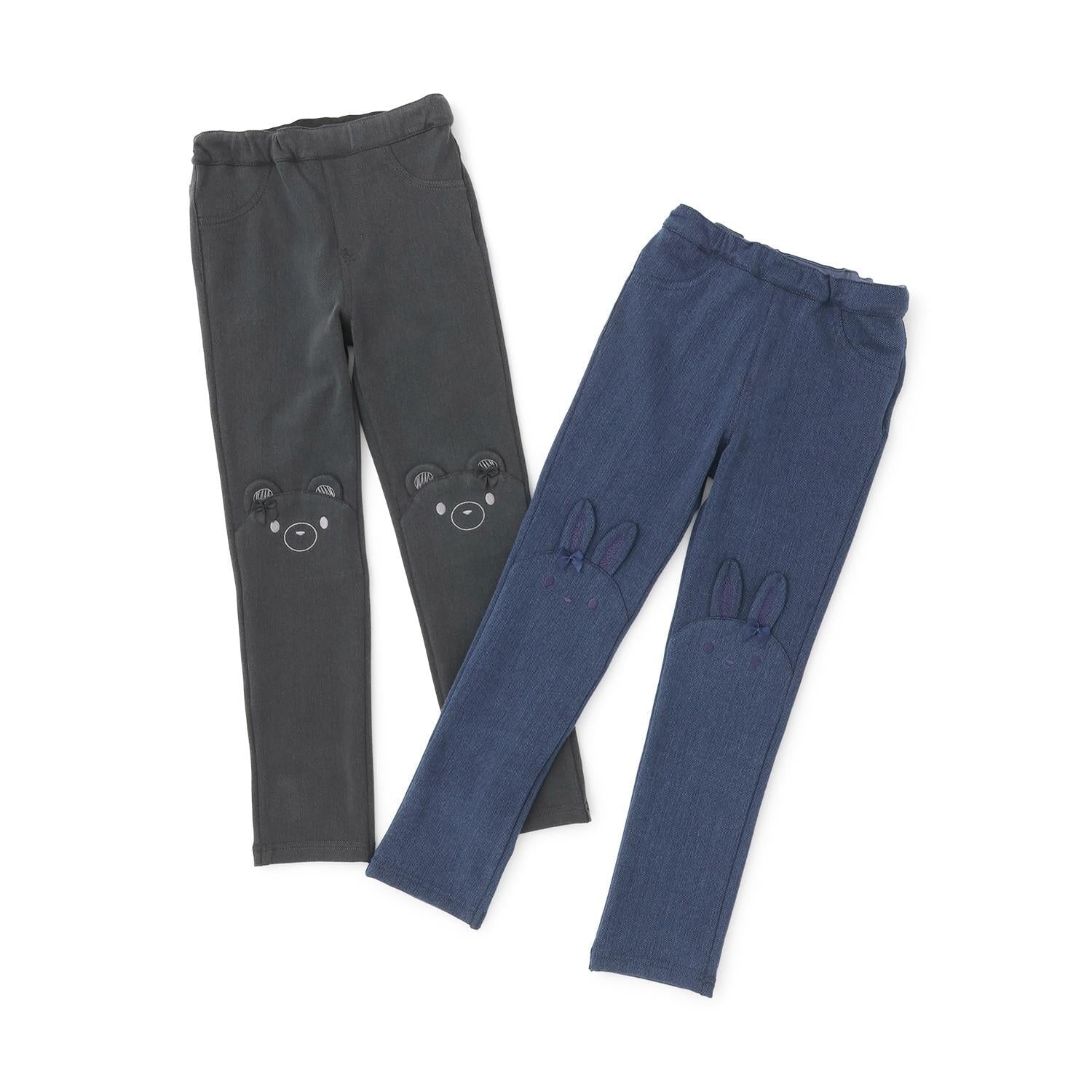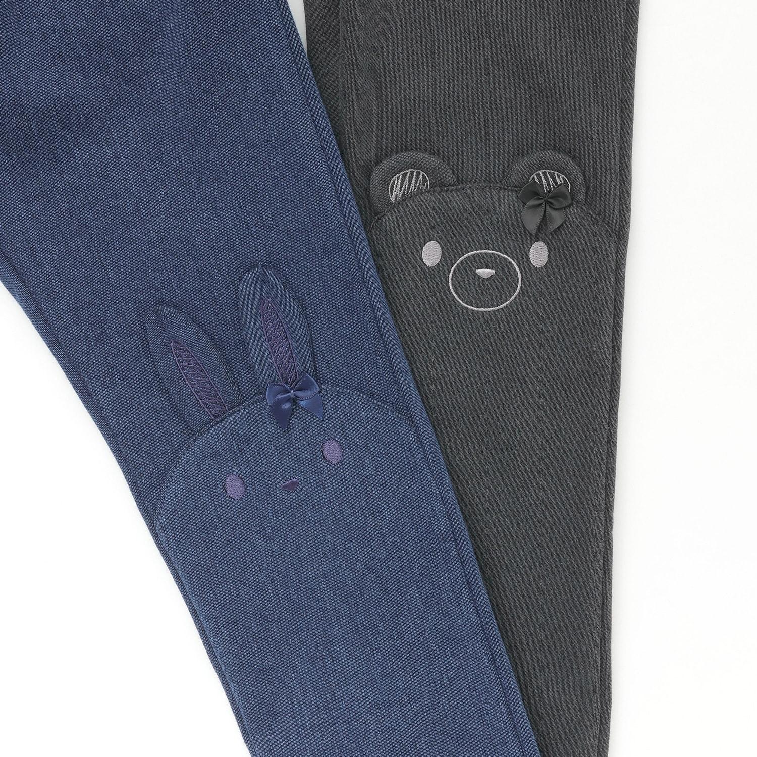 膝蓋上的兔子和小熊刺繡令人著迷。