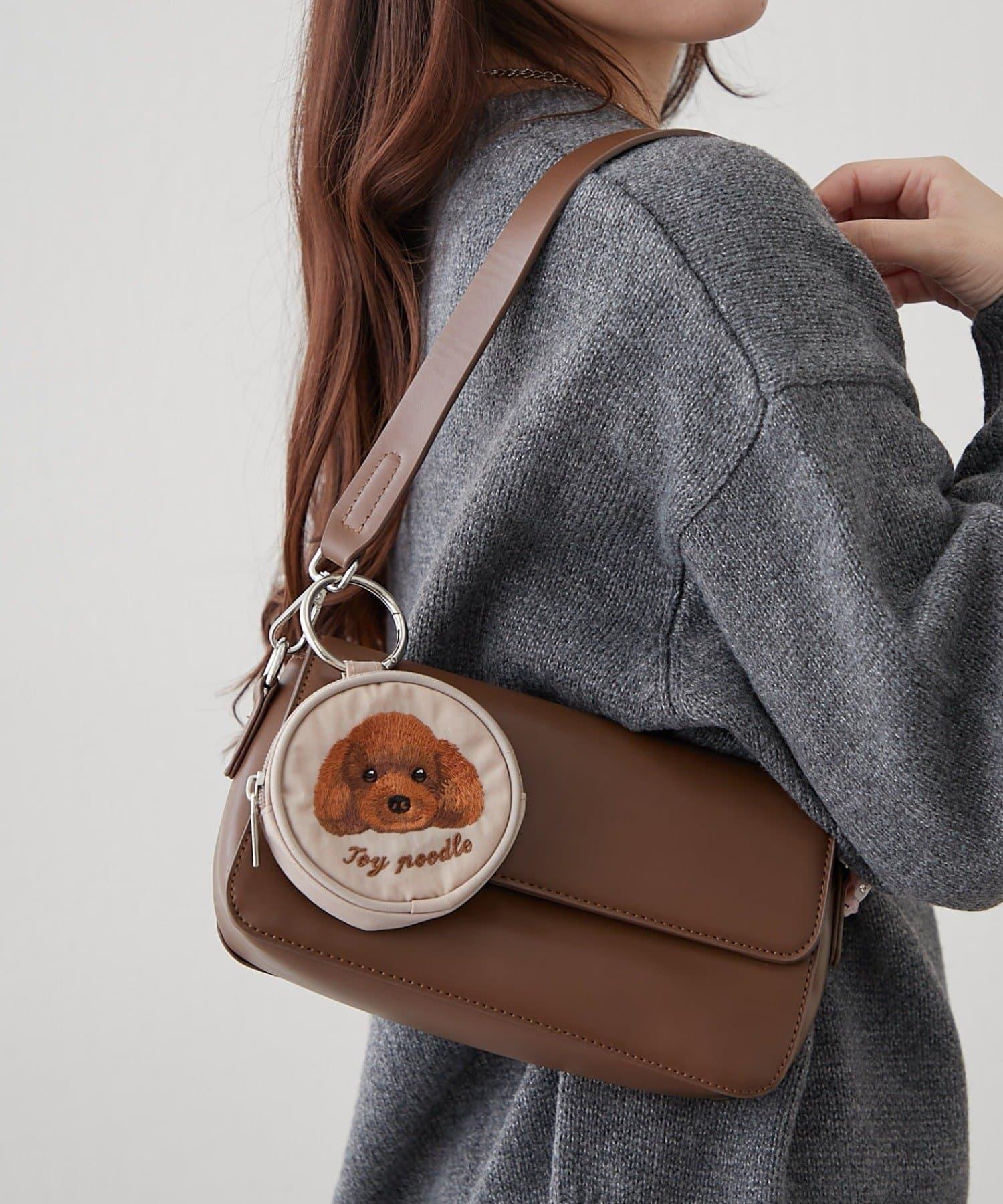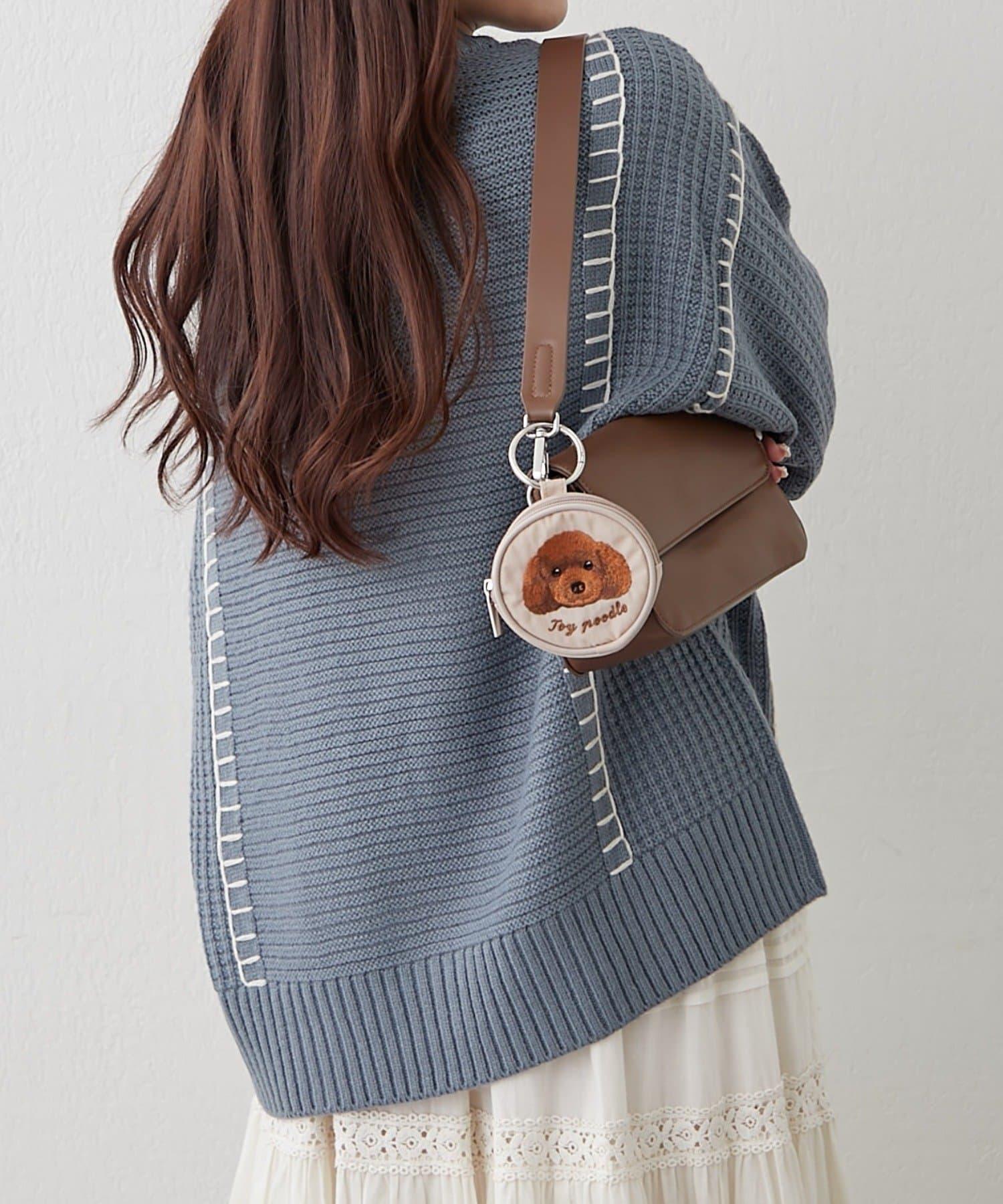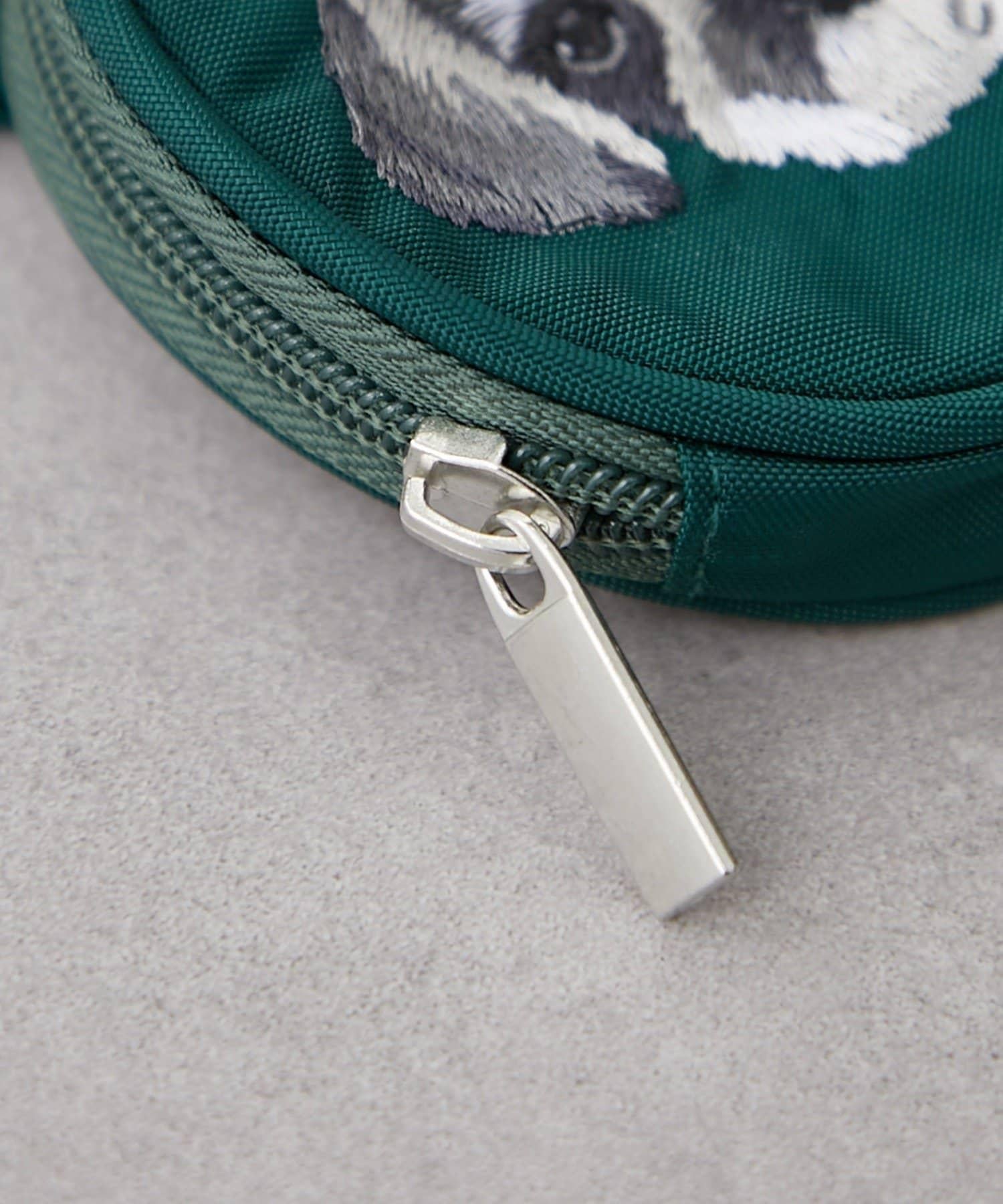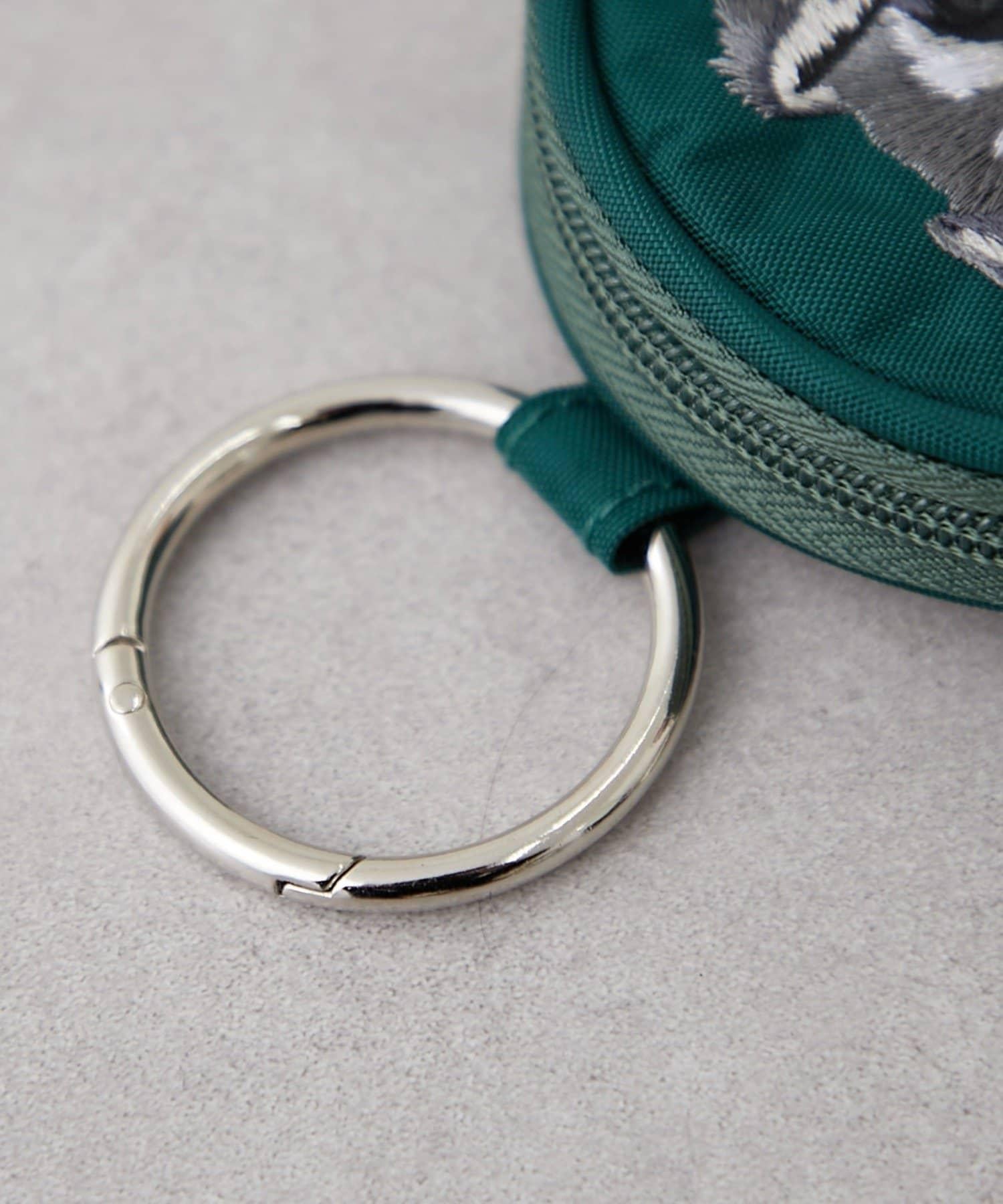 這是一個圓形小袋,帶有一個卡扣,可以掛在包上或皮帶環上。