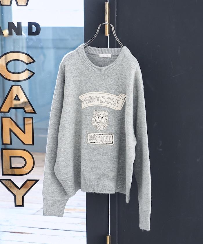 這是一款以動物圖案和立體徽章刺繡為主要元素的針織衫。