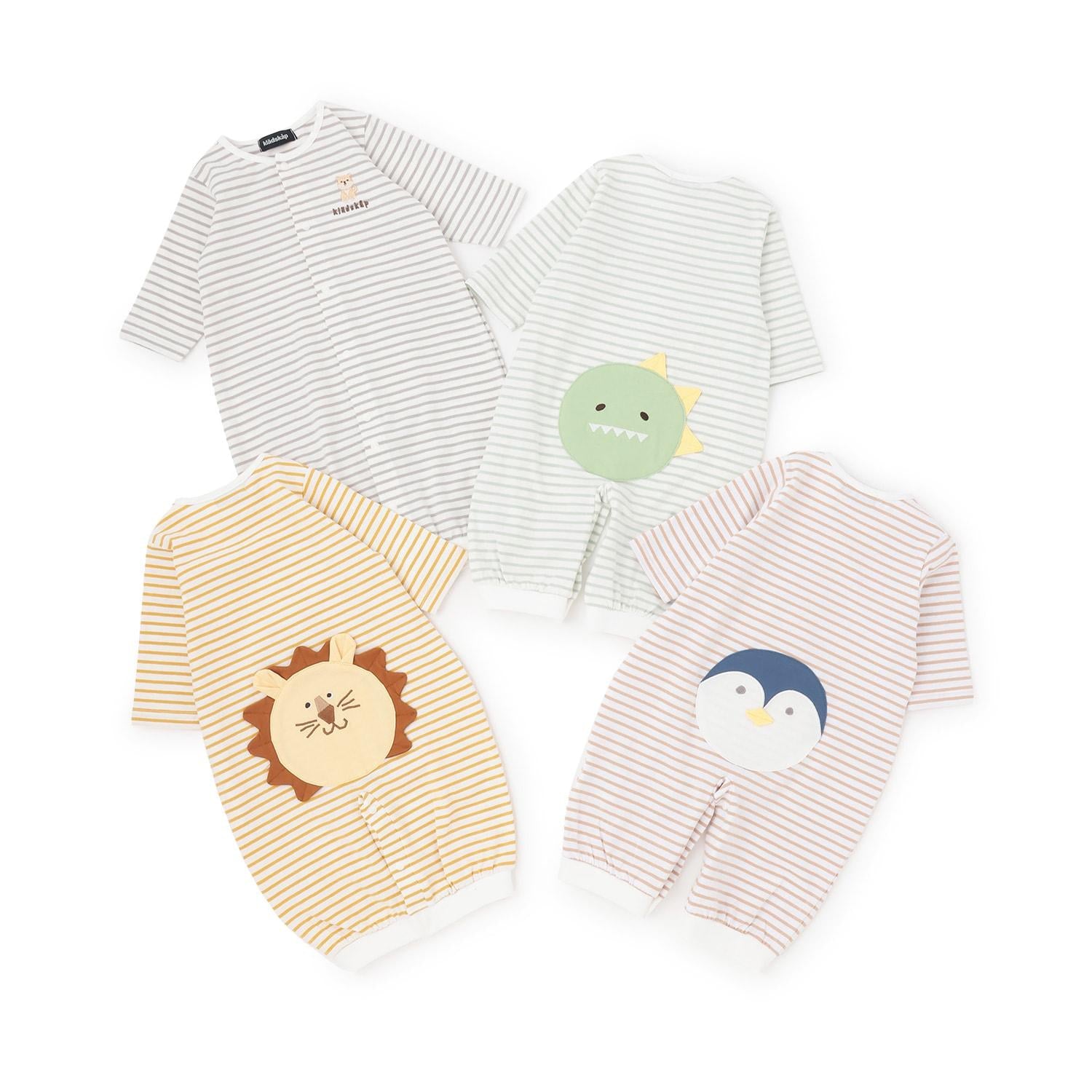 淺灰色是柴犬,芥末色是獅子,黃綠色是恐龍,淺米色是企鵝。