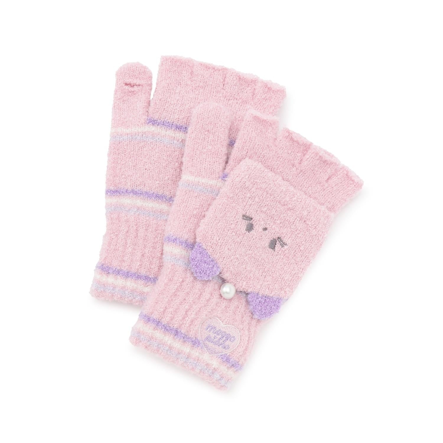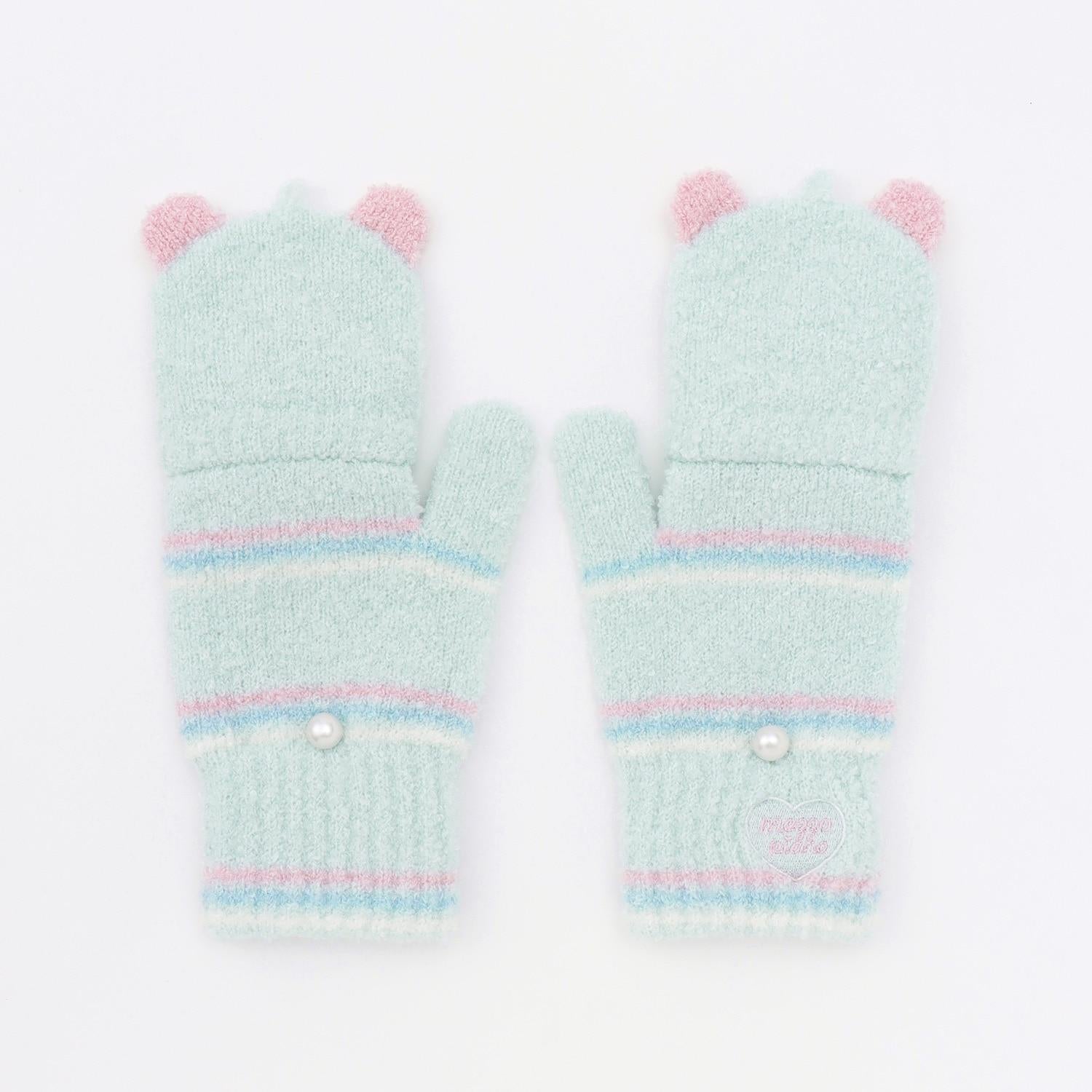 動物臉馬卡龍絨針織手套