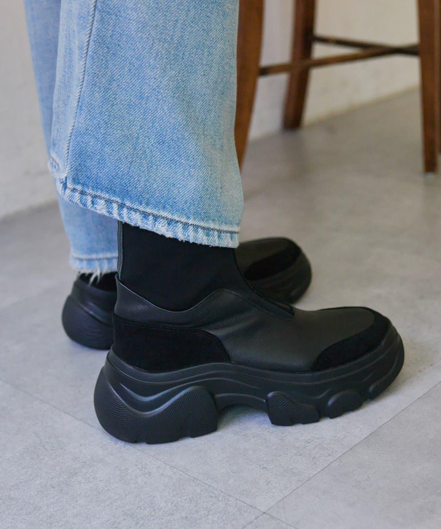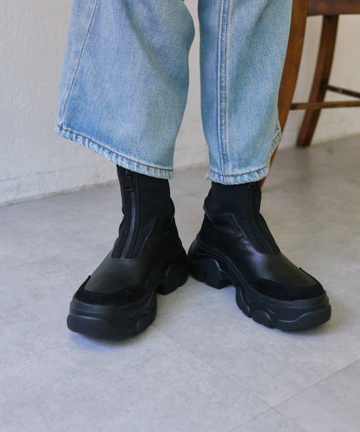 《動畫あり/輕量/增高》真皮厚底短靴25【SUM1 STYLE(スミスタイル)】