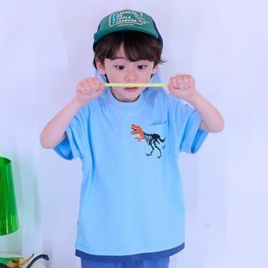 短袖 T 恤上印有透明的恐龍骨骼圖案,就像 X 光一樣俏皮。