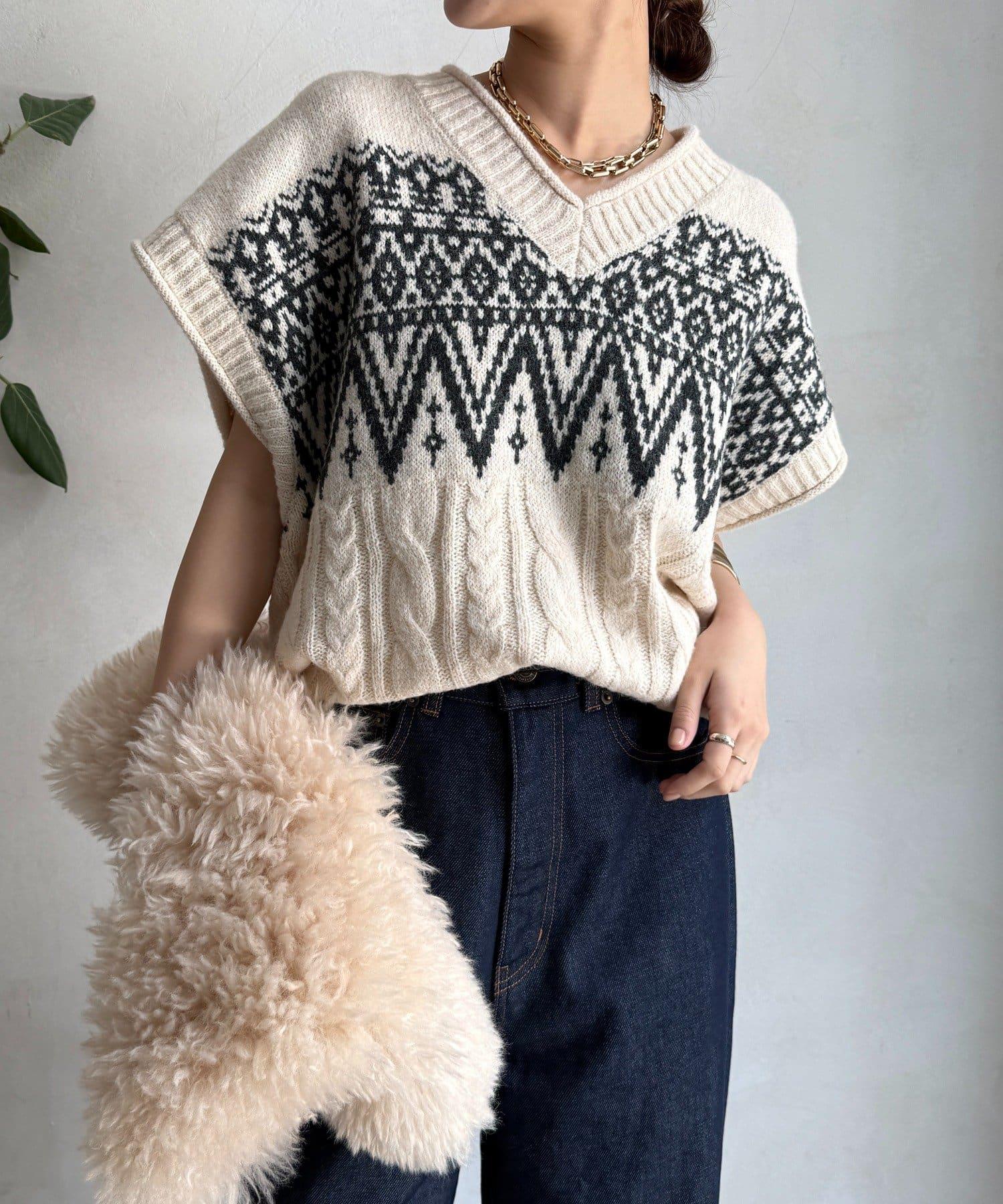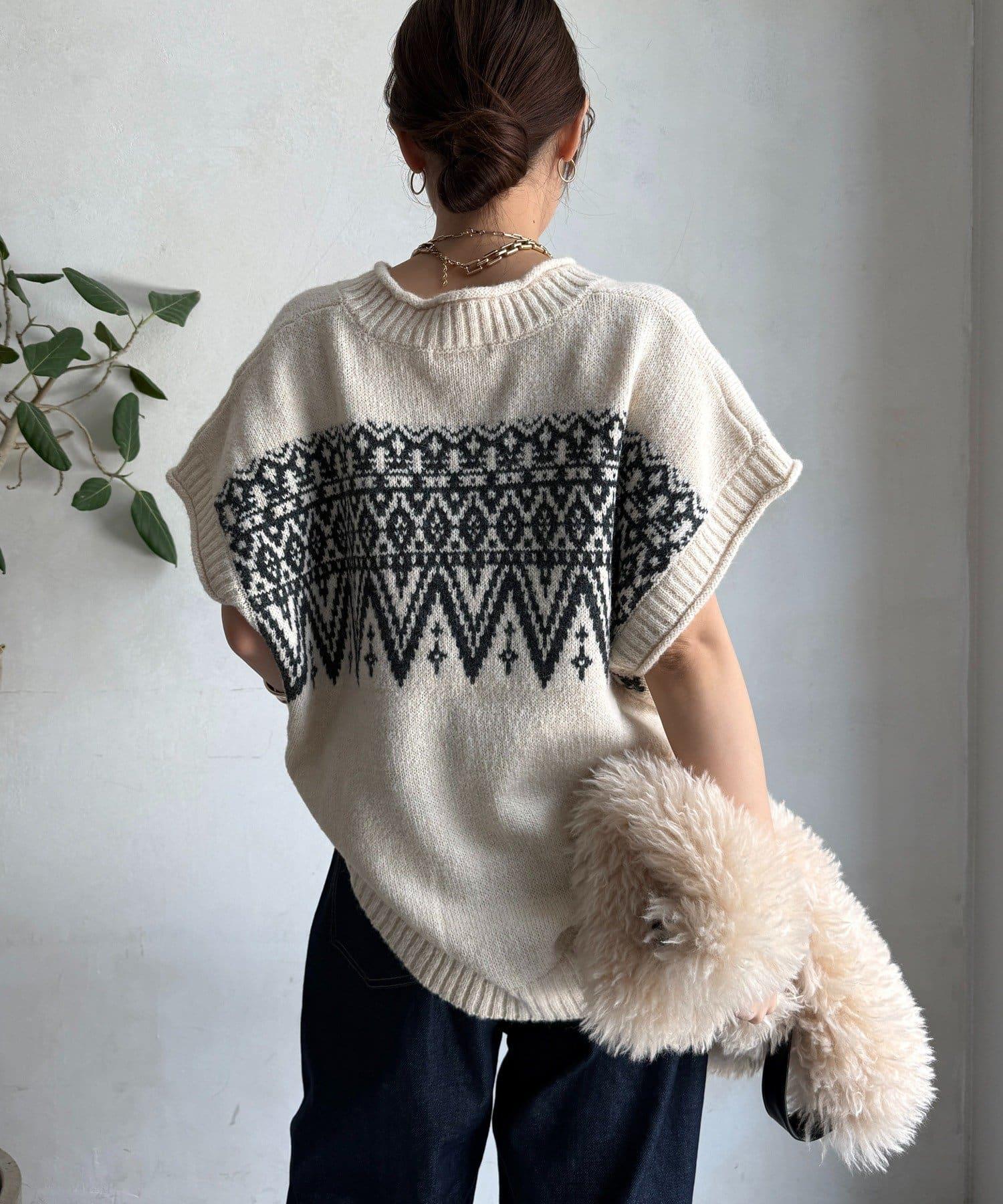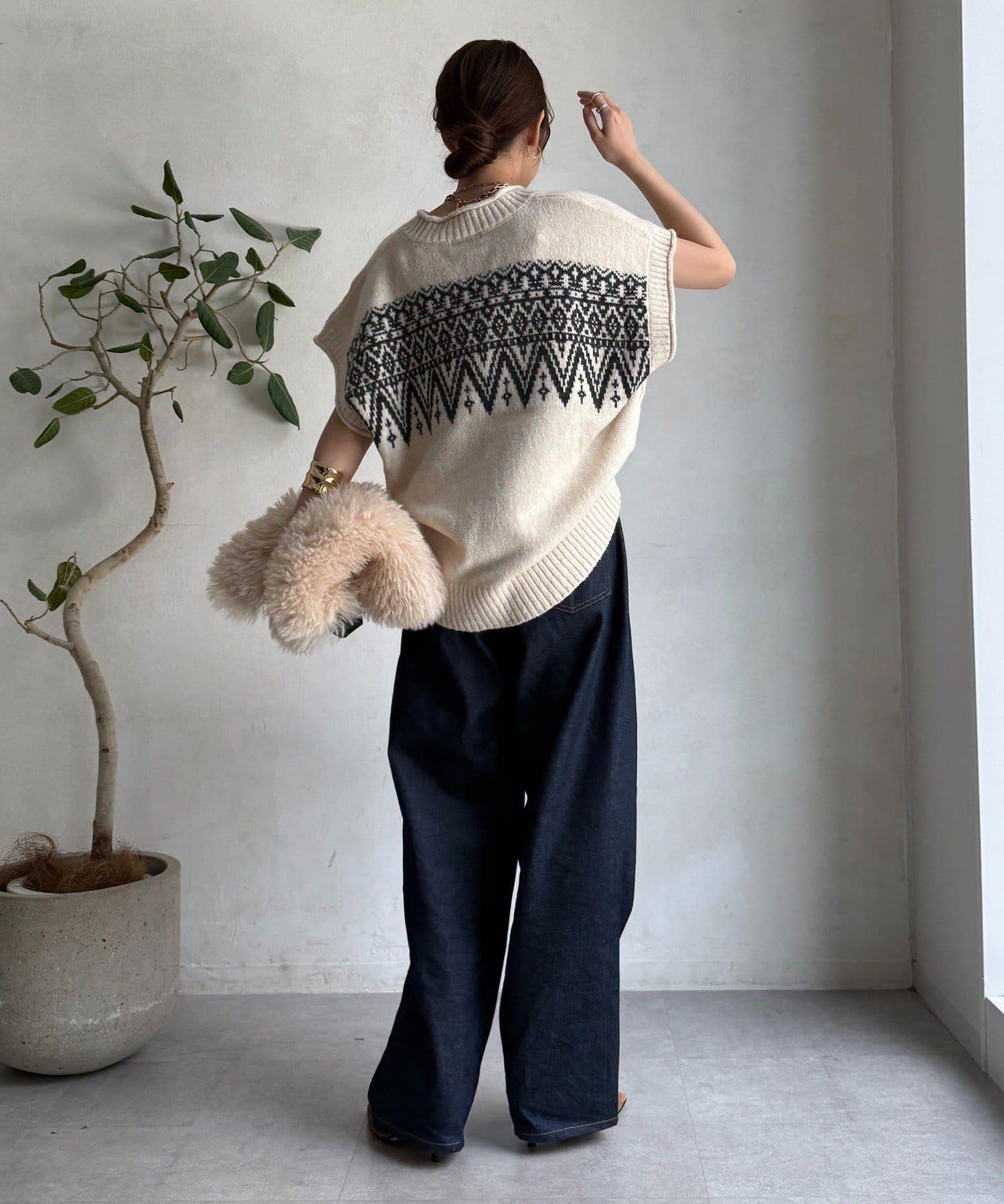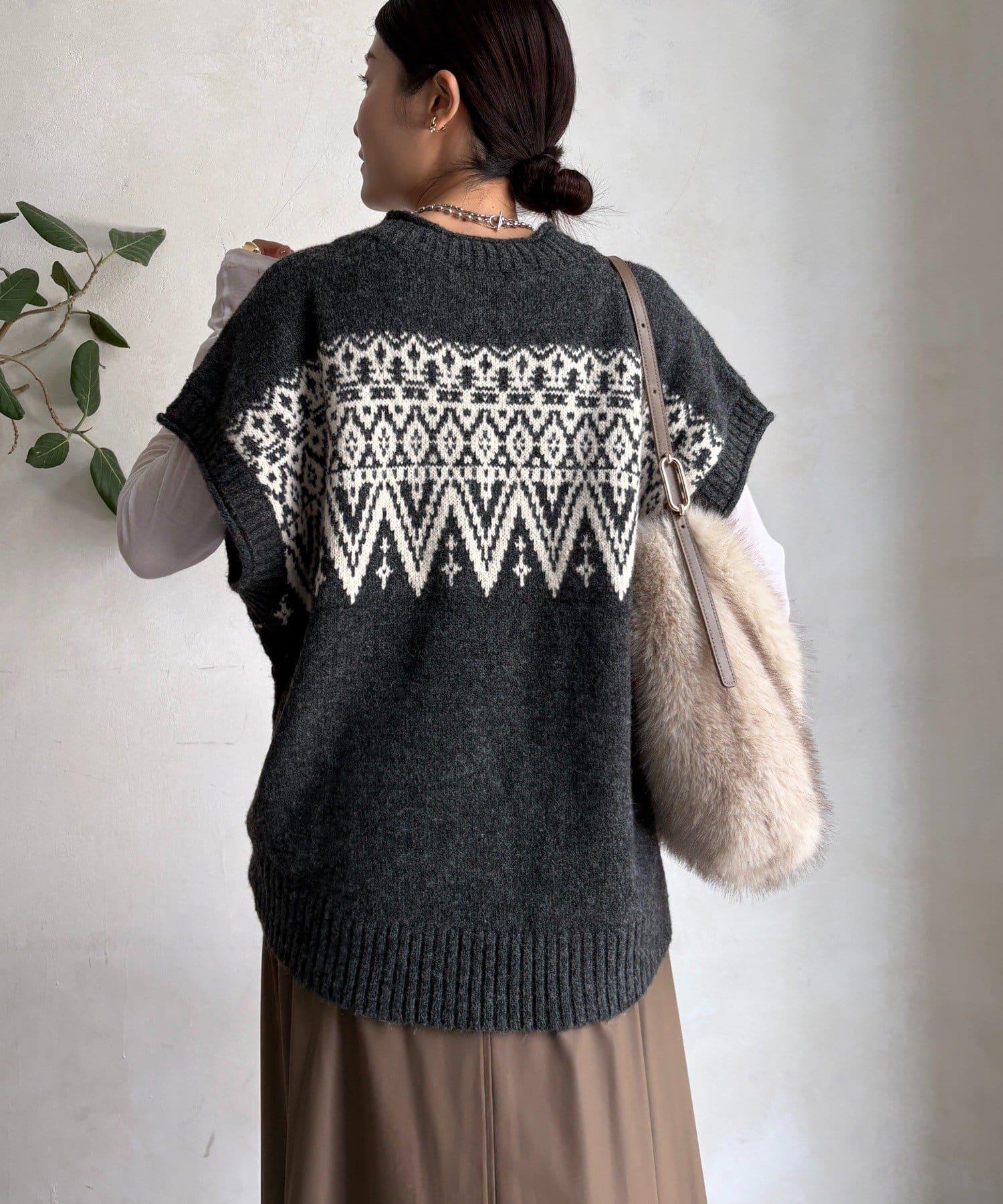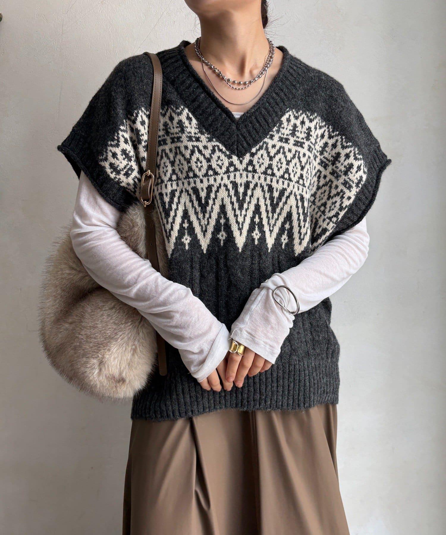 北歐圖案也以單色表現,將其昇華為馬甲,搭配襯衫,會給人更清新、更鮮明的印象。
