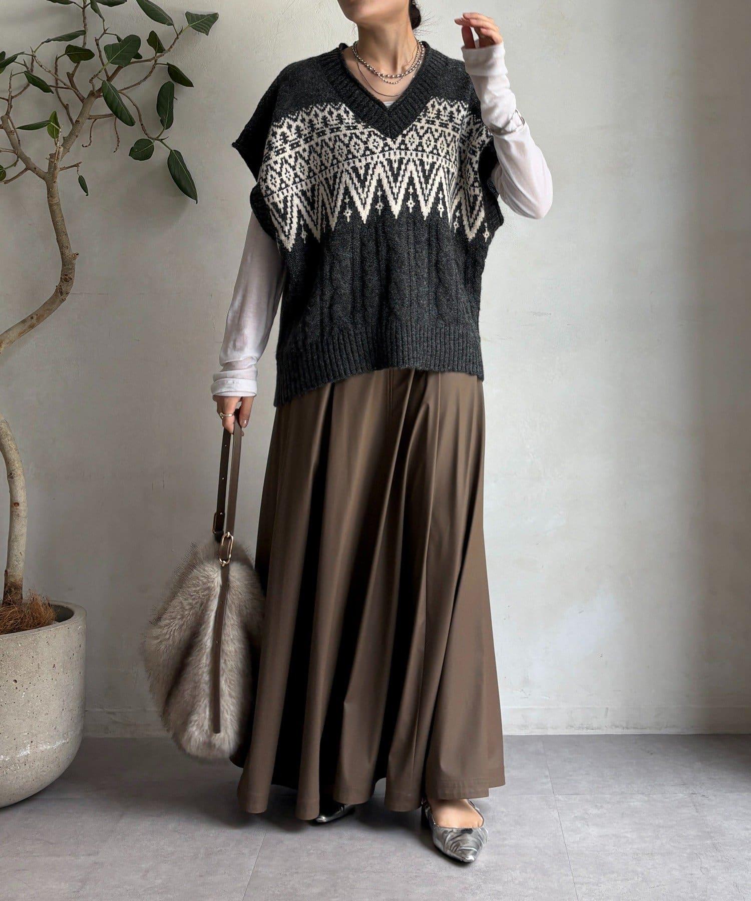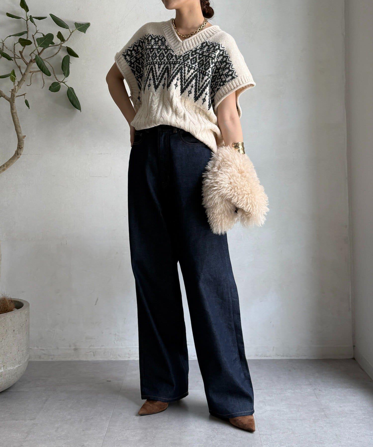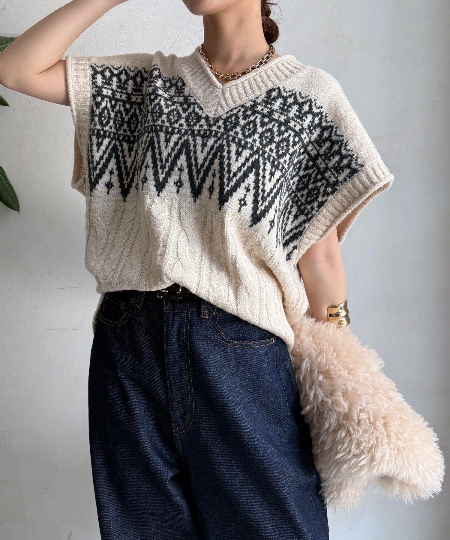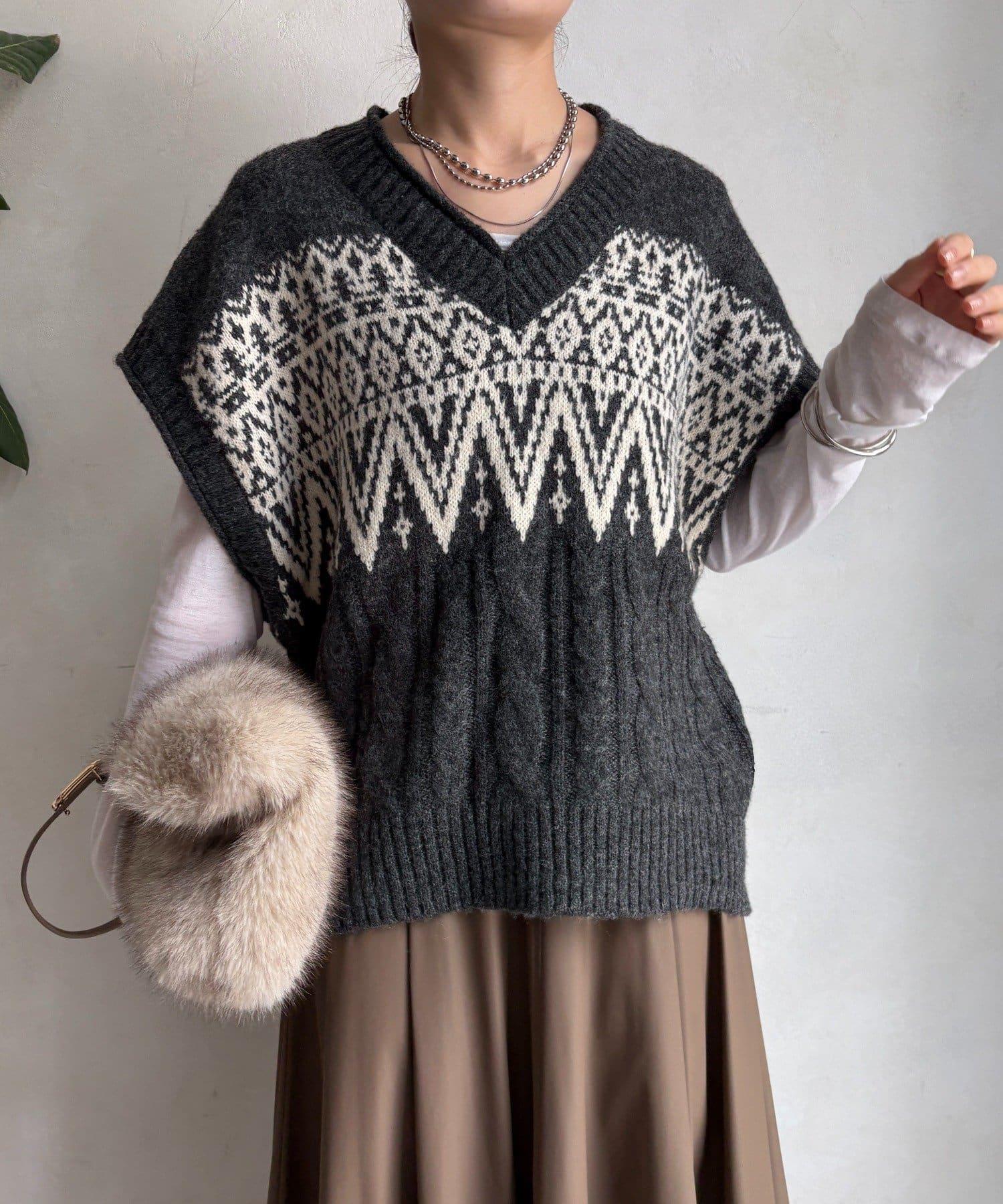 北歐圖案也以單色表現,將其昇華為馬甲,搭配襯衫,會給人更清新、更鮮明的印象。