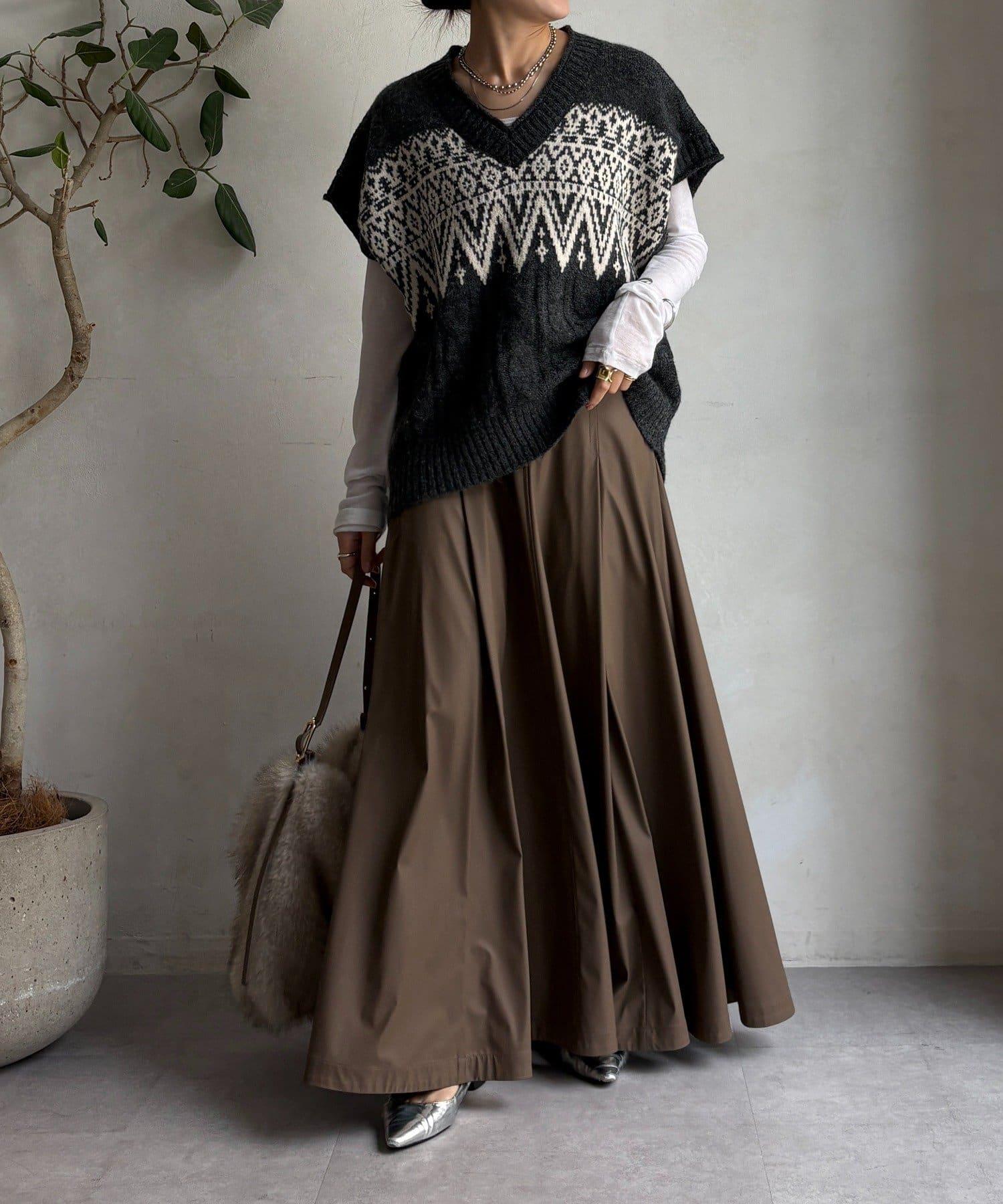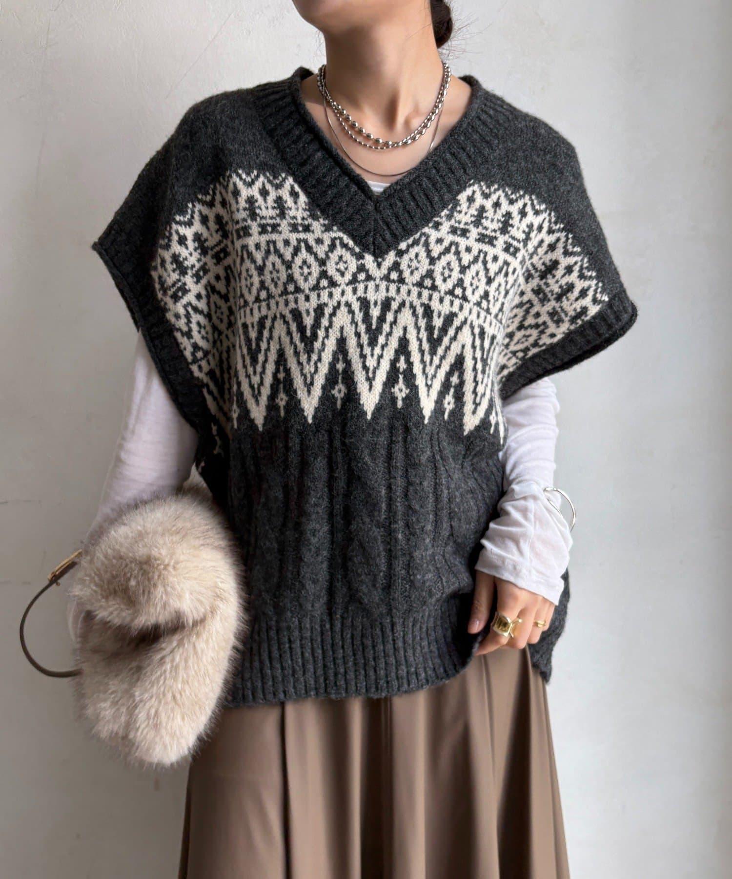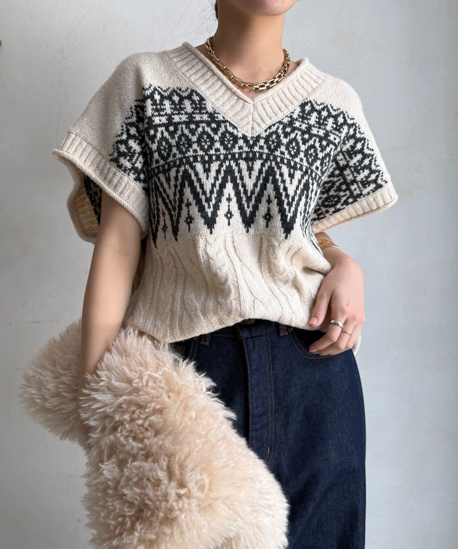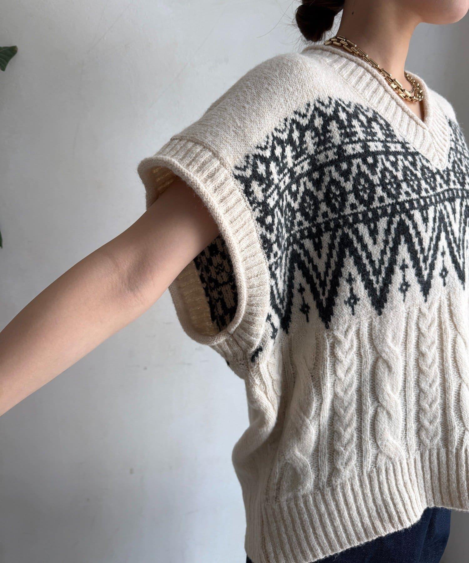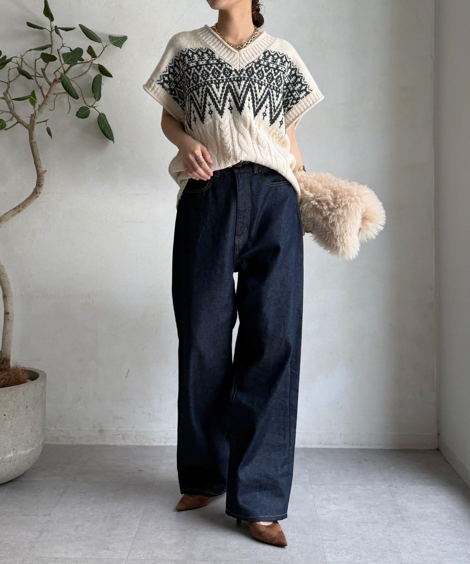 北歐圖案也以單色表現,將其昇華為馬甲,搭配襯衫,會給人更清新、更鮮明的印象。