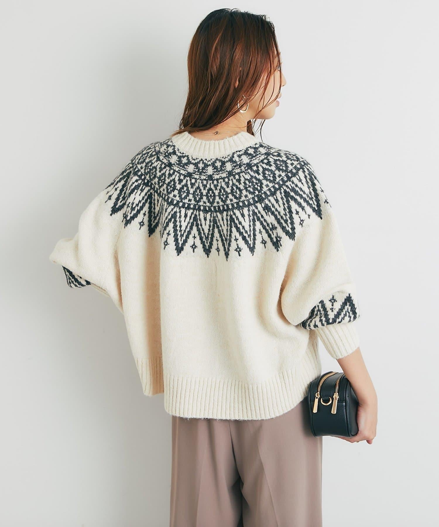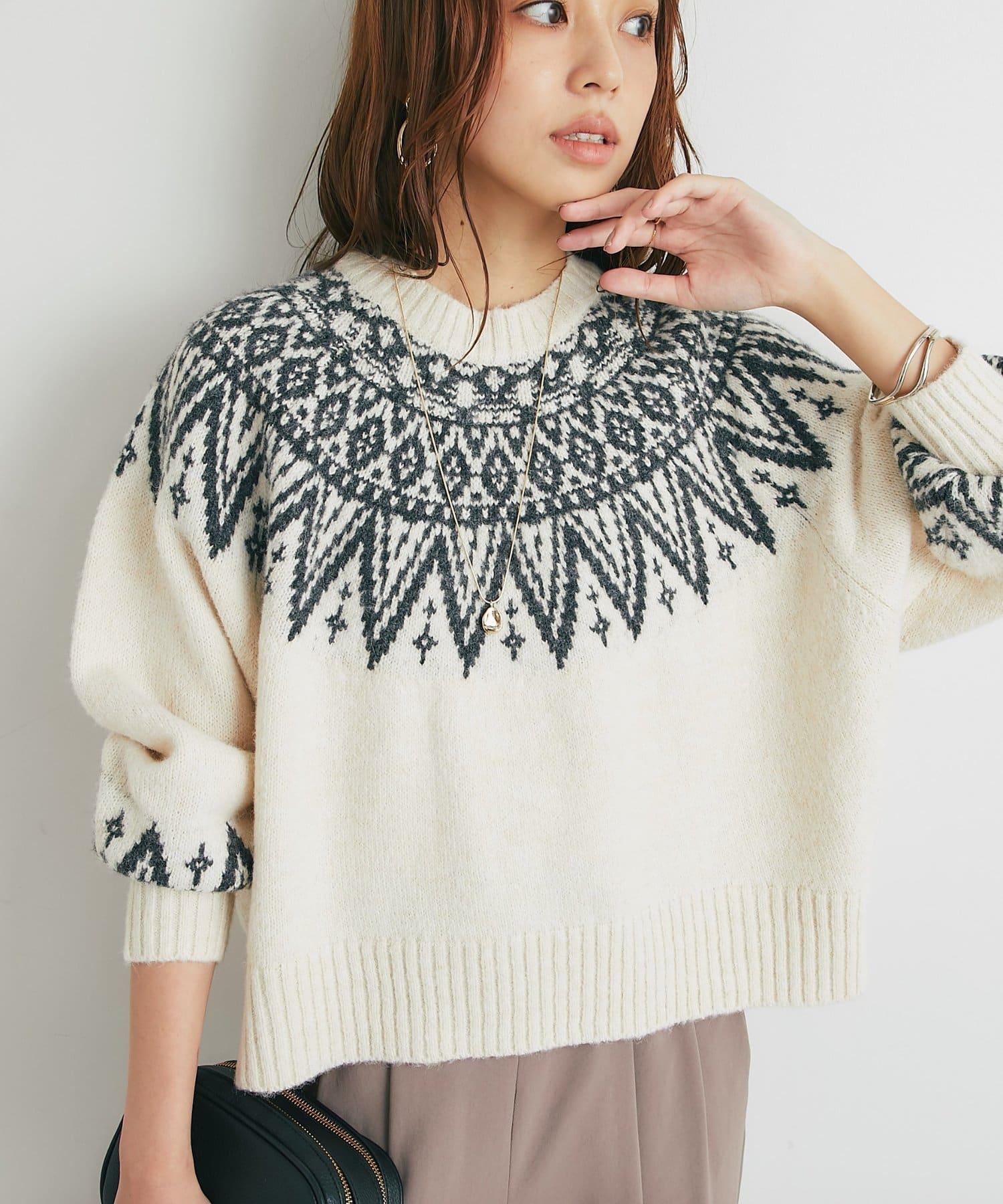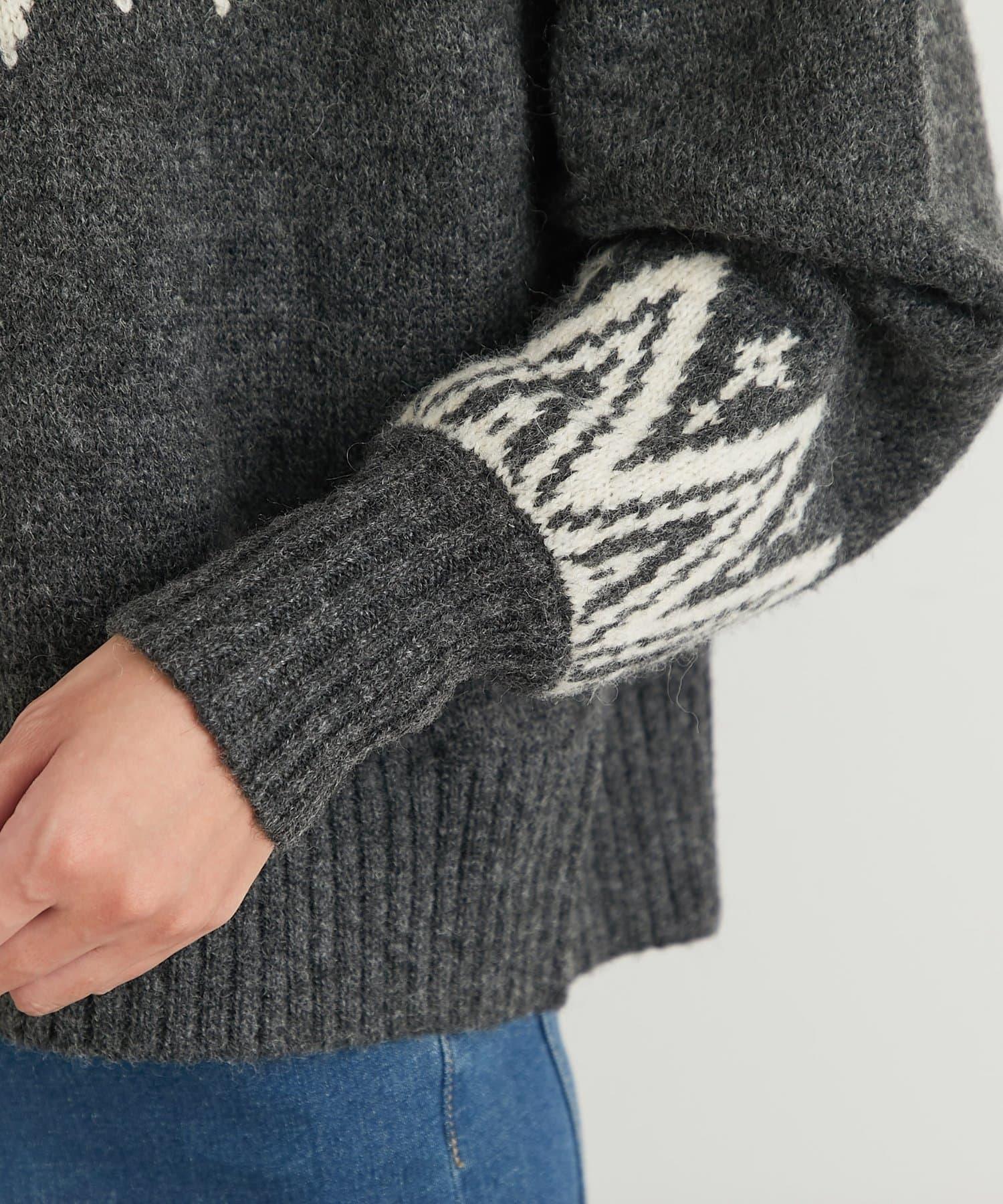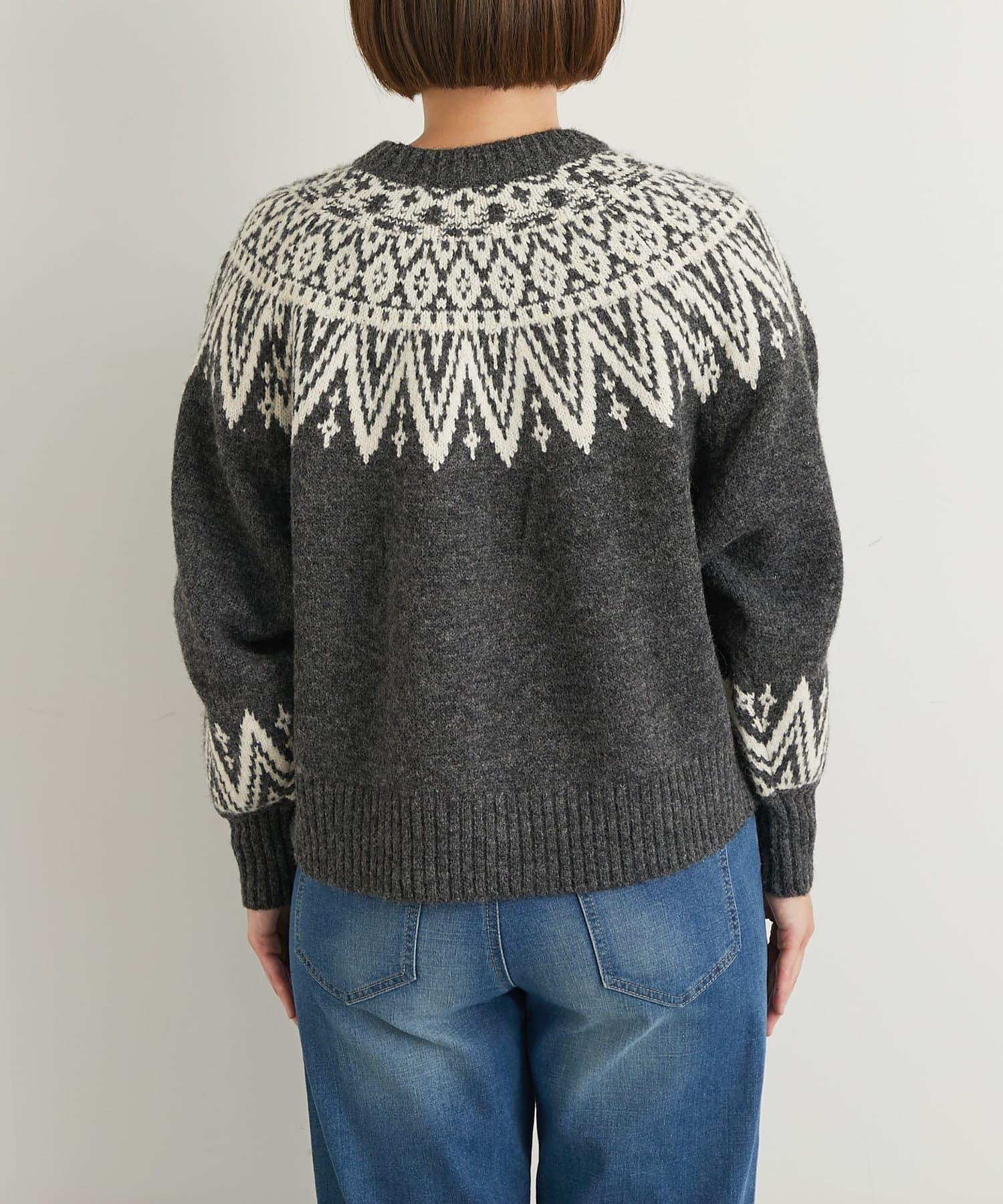 這款成人針織衫帶有醒目的北歐圖案,為您的冬日造型增添一抹亮色。