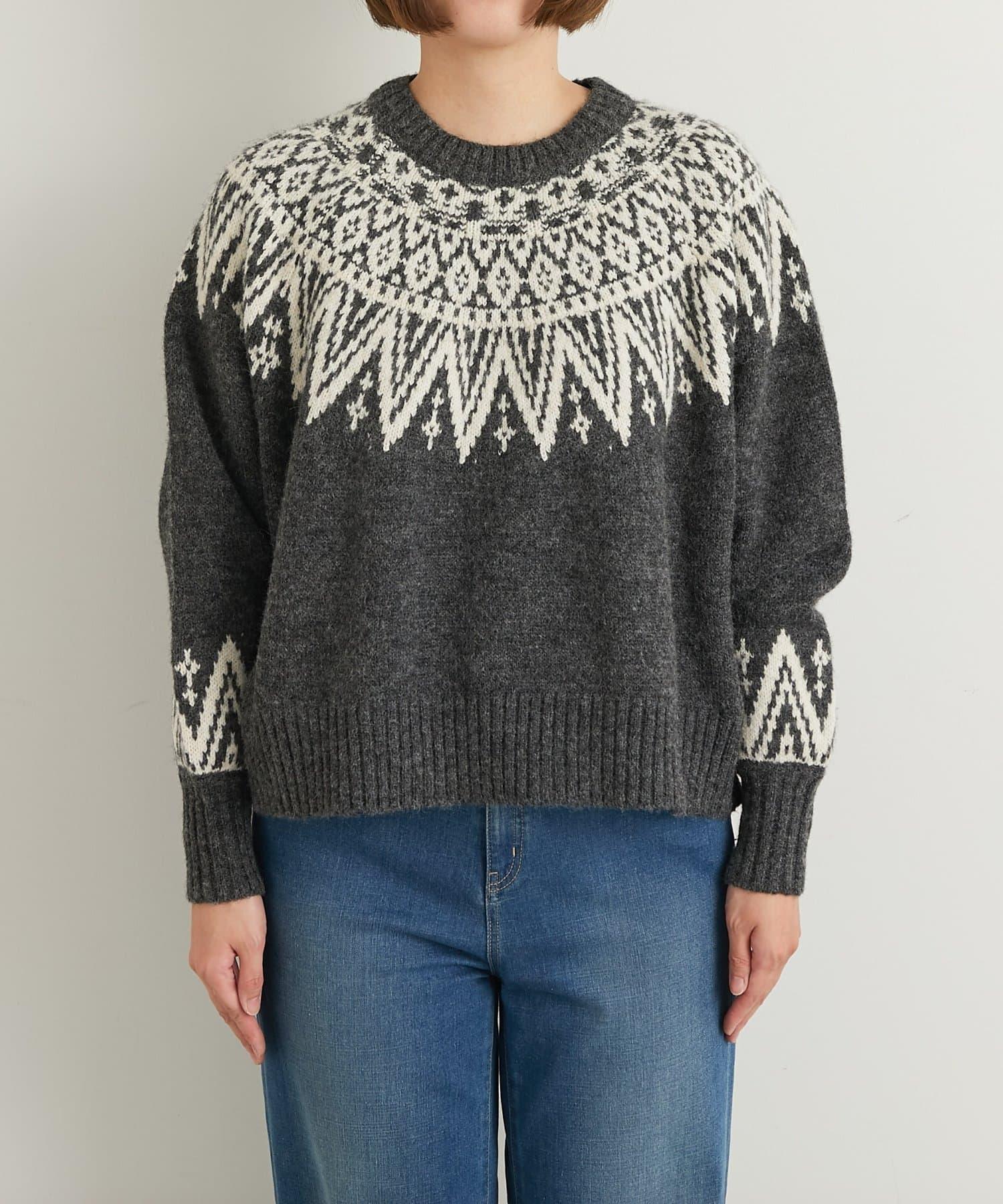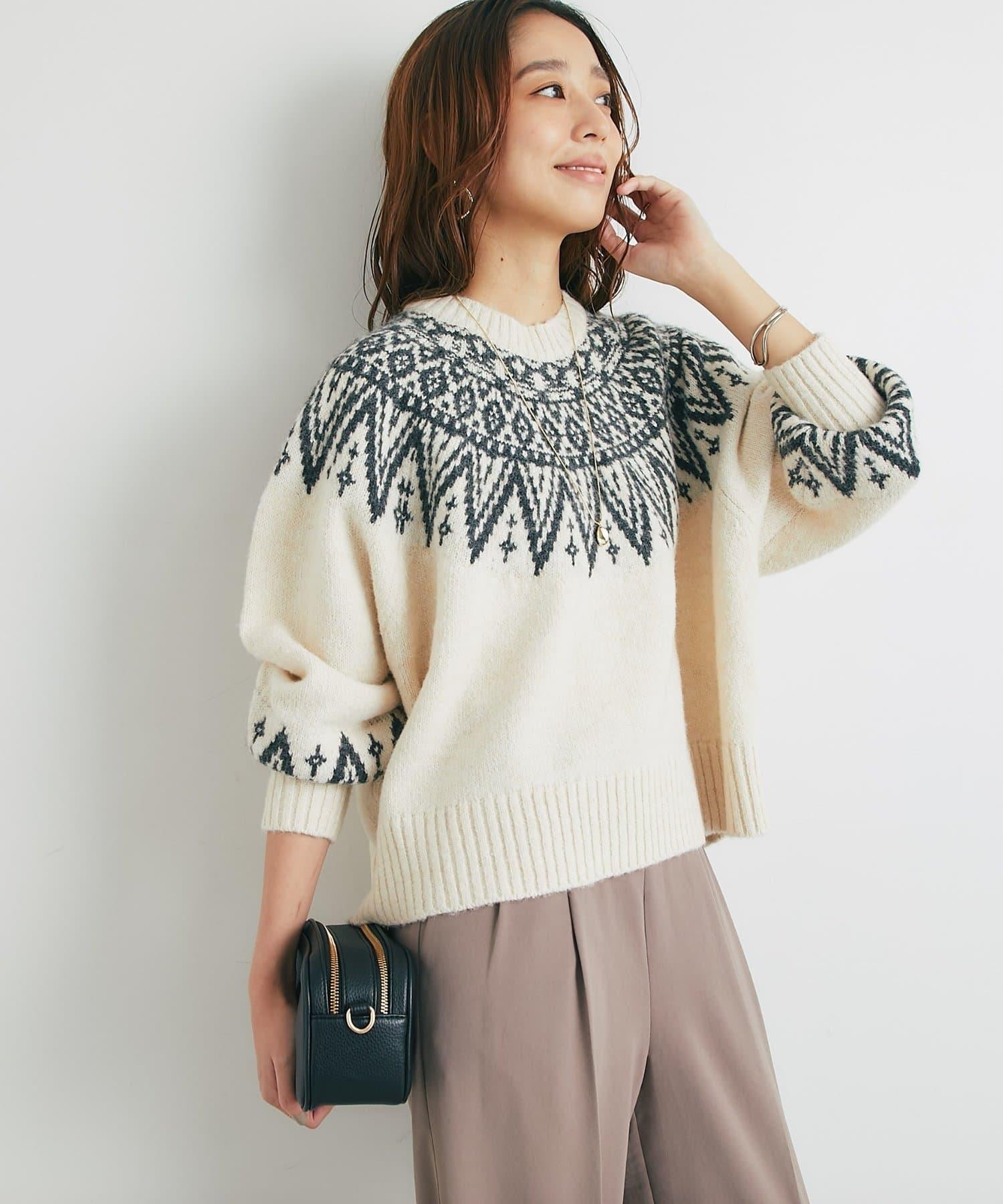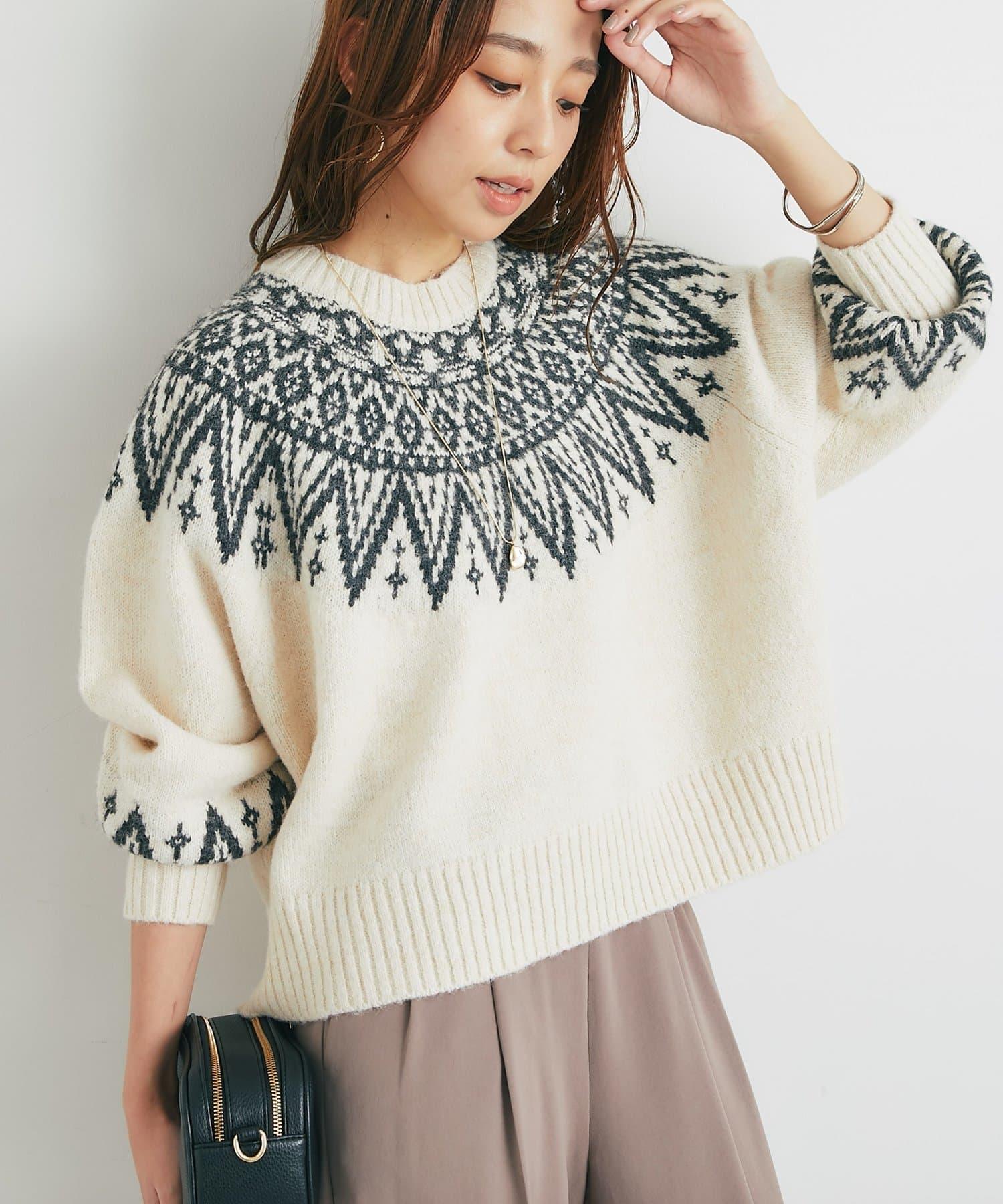 這款成人針織衫帶有醒目的北歐圖案,為您的冬日造型增添一抹亮色。