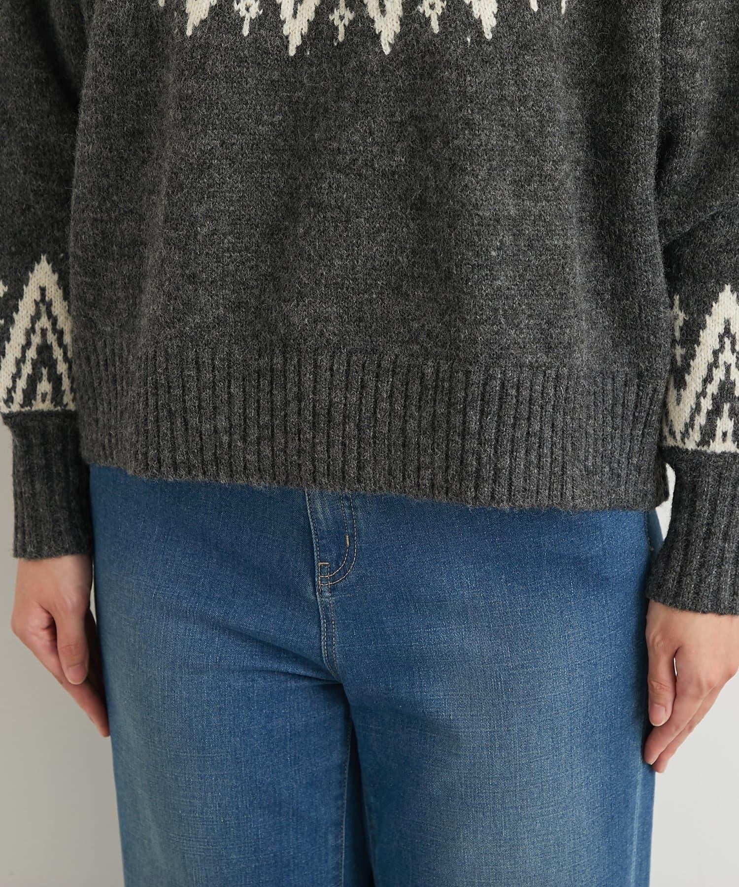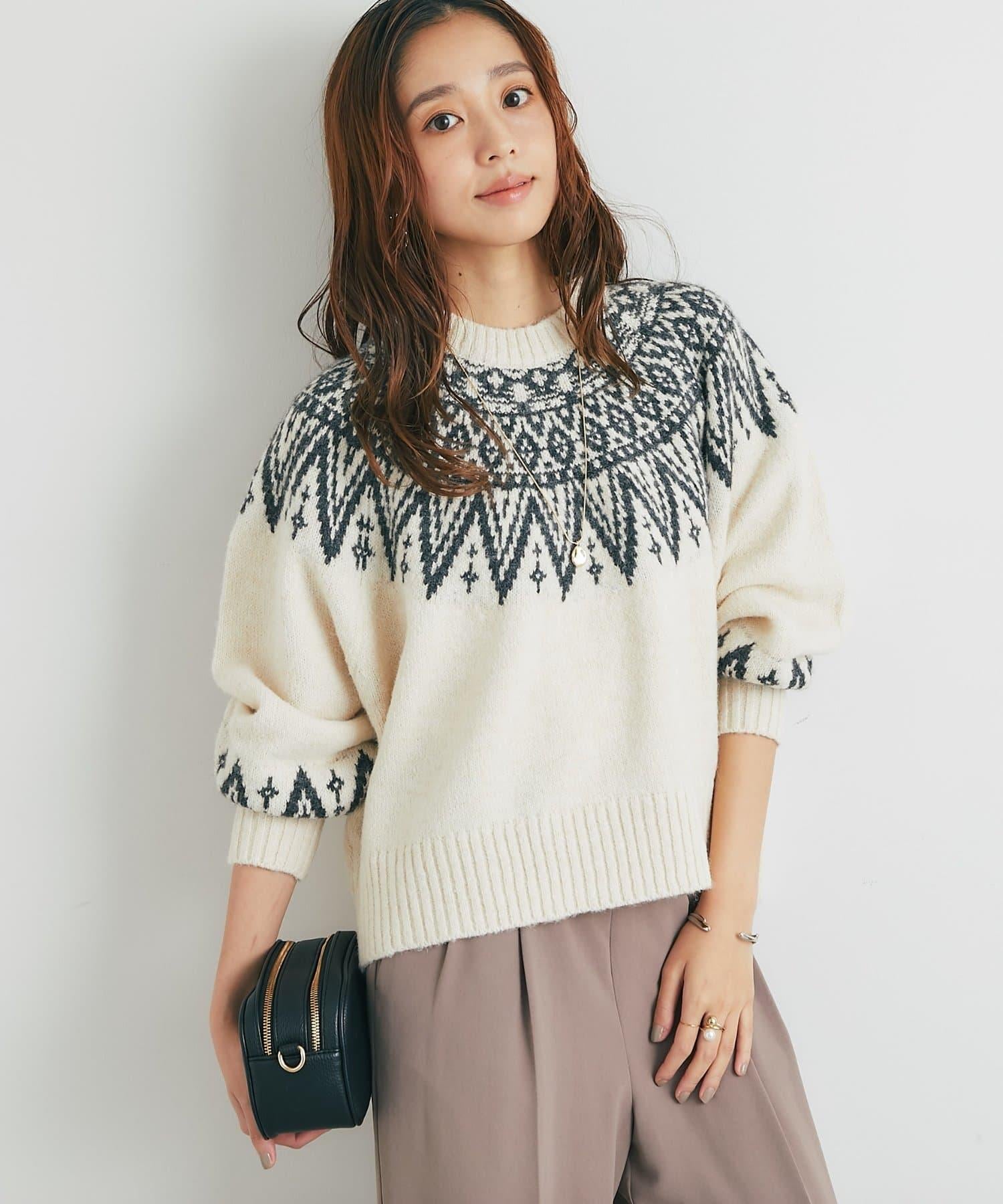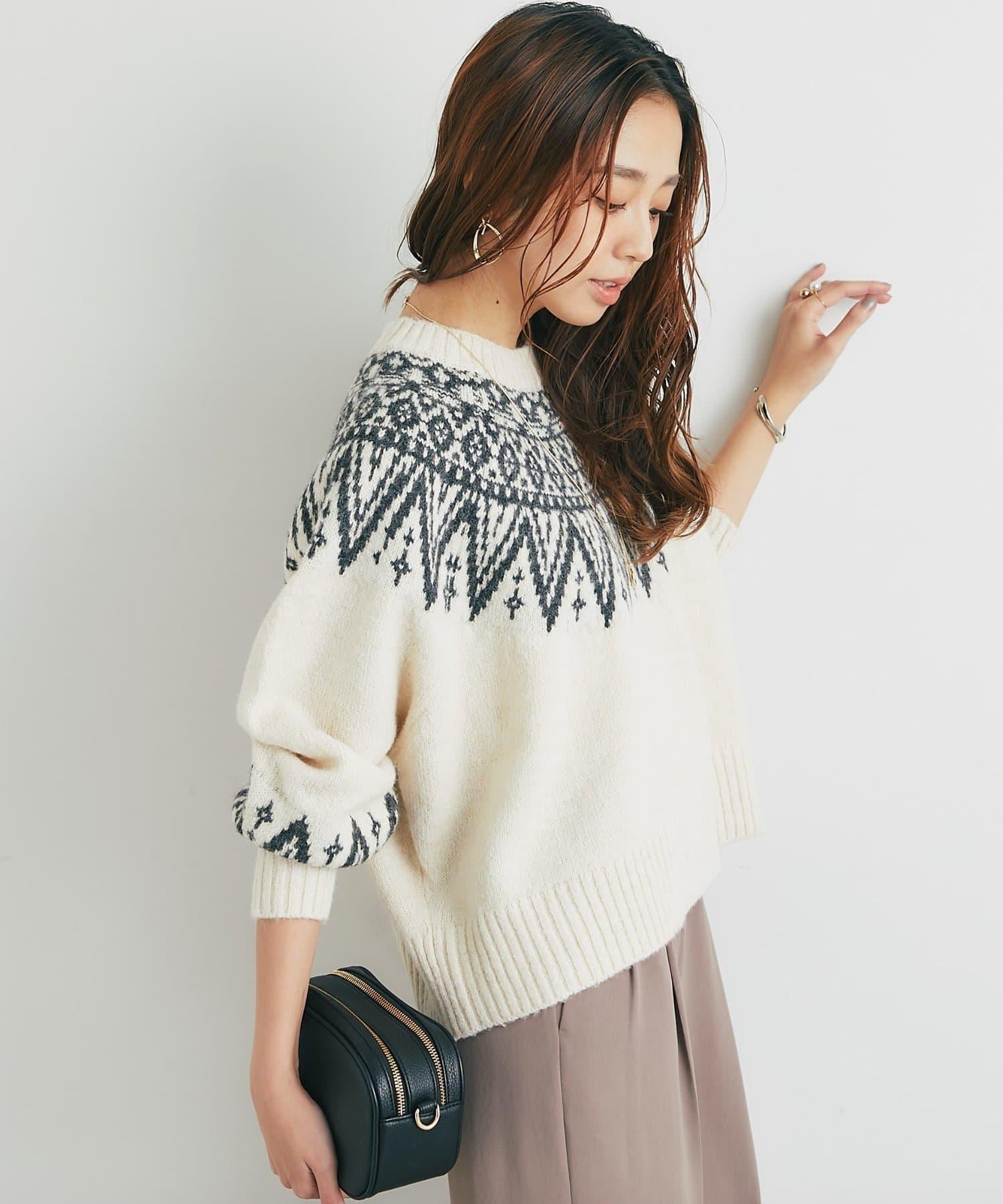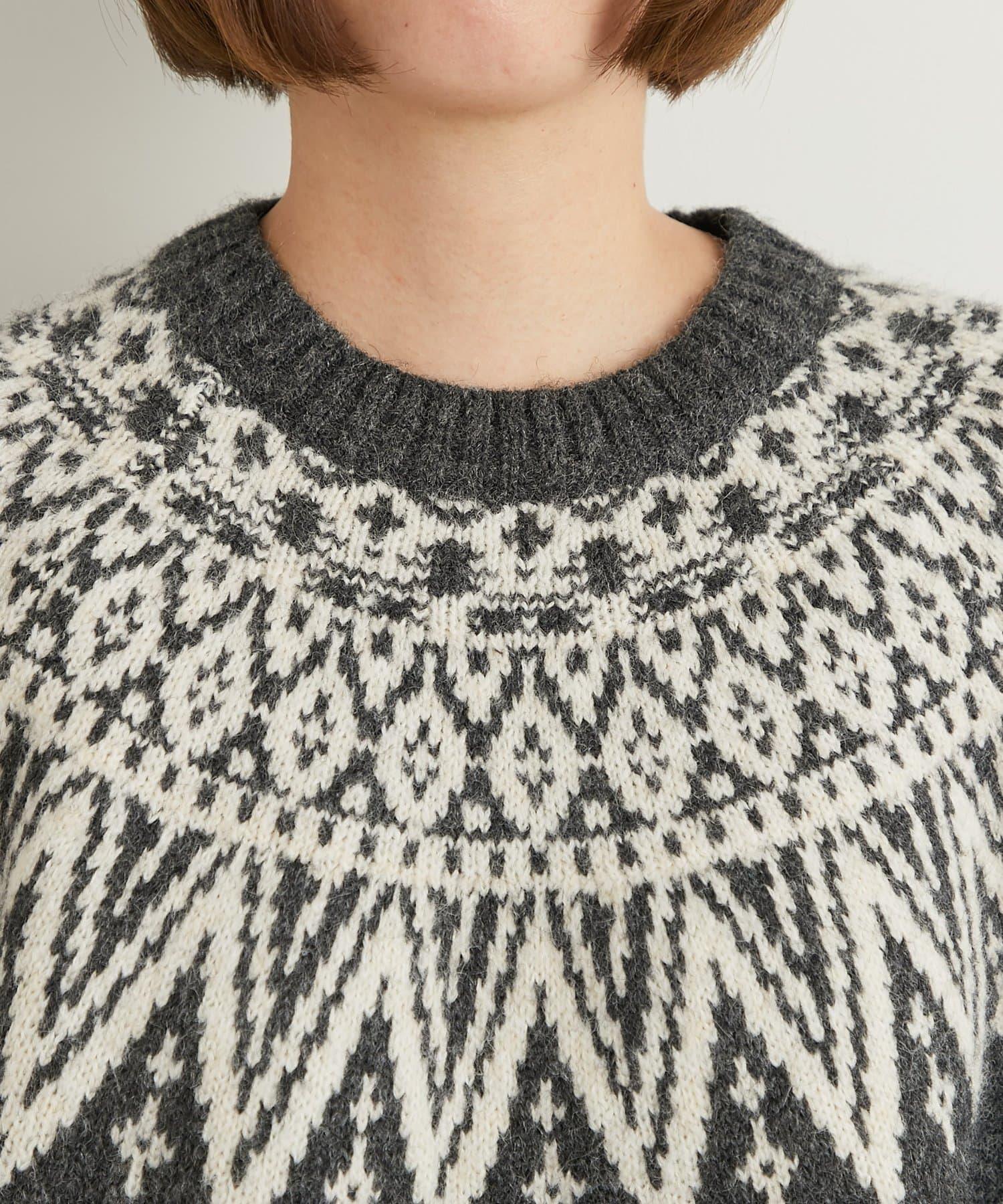 這款成人針織衫帶有醒目的北歐圖案,為您的冬日造型增添一抹亮色。