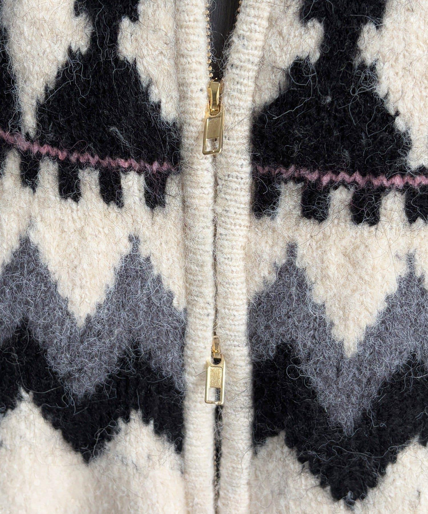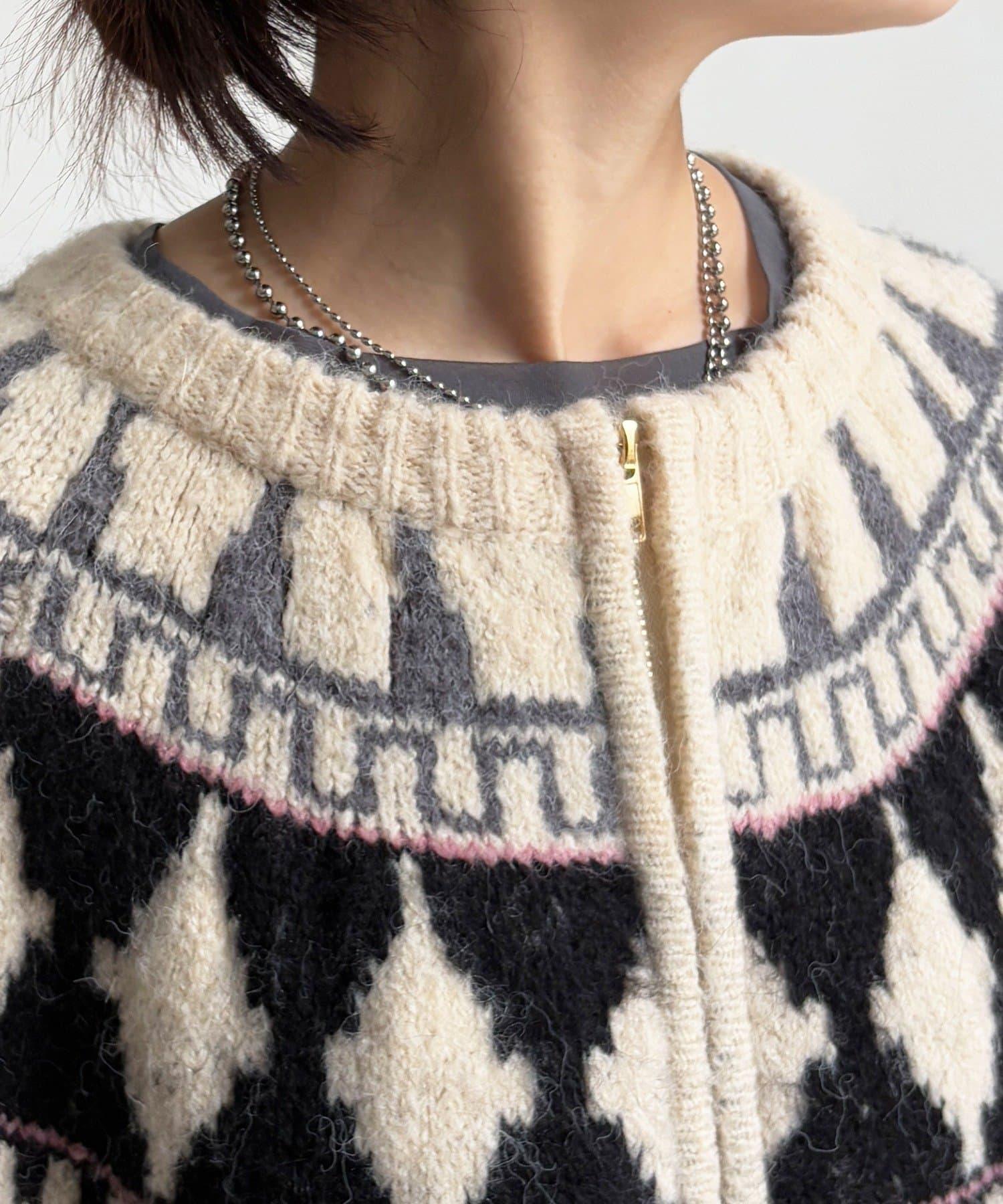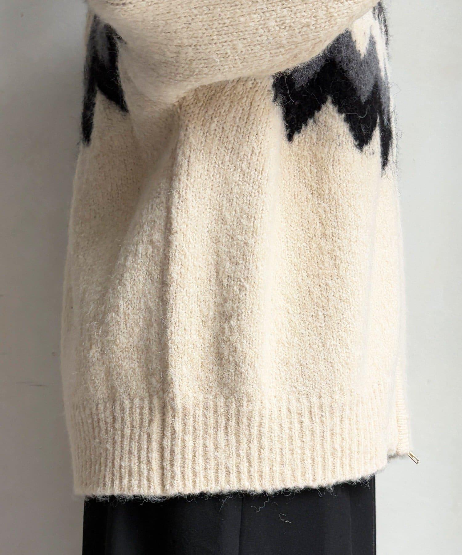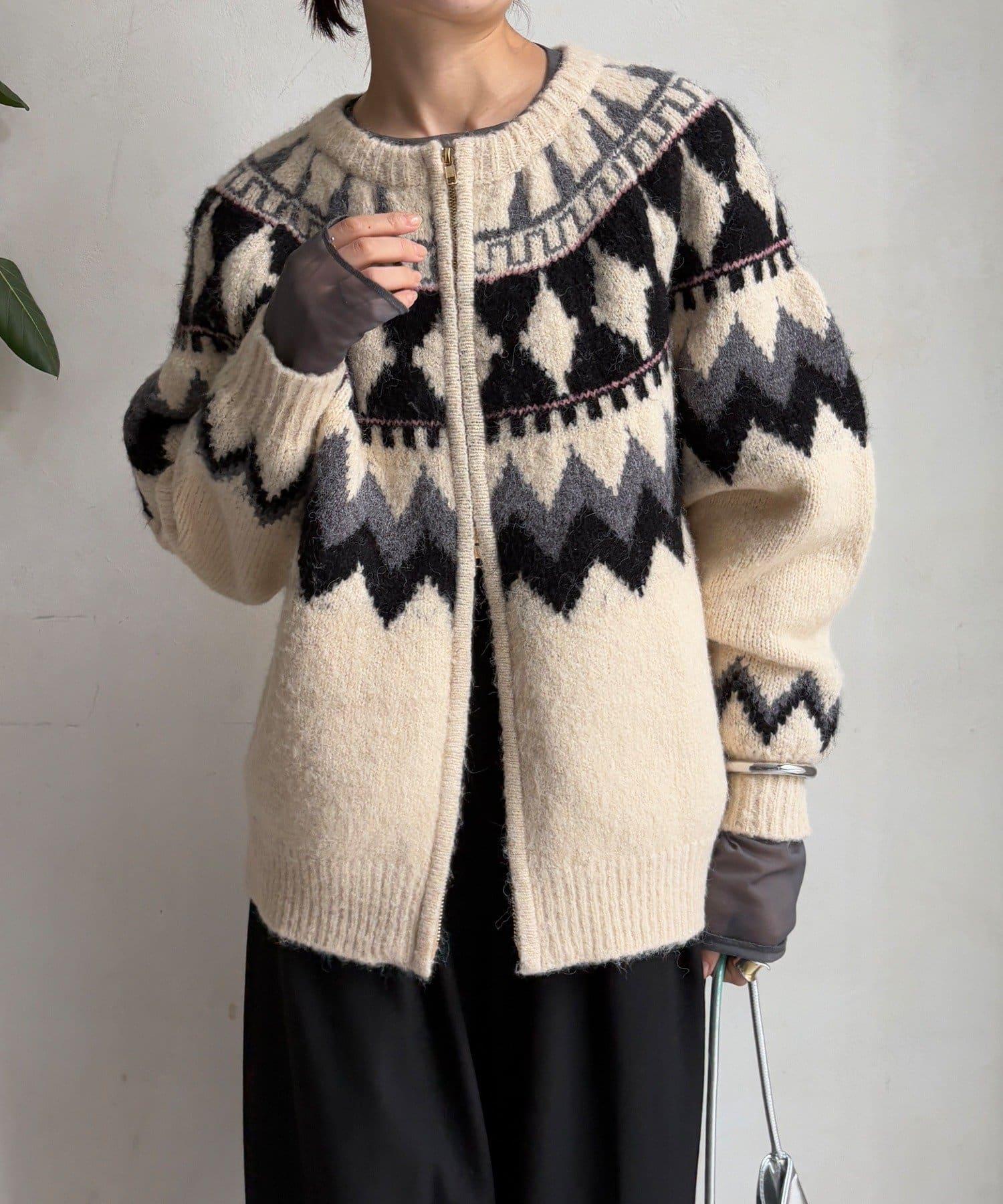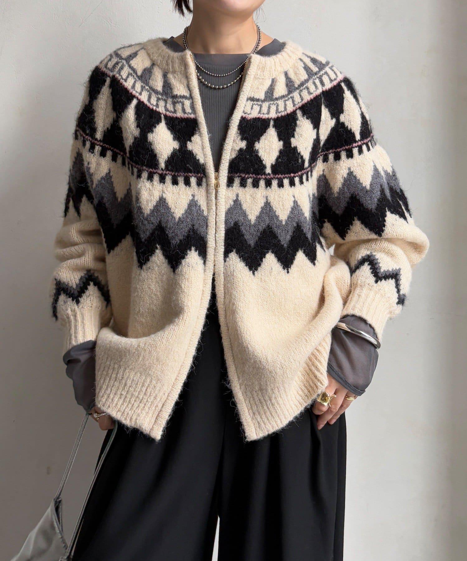 這款針織衫的圖案溫暖,但正面的拉鍊設計讓它少了幾分甜美,多了幾分成熟的感覺。