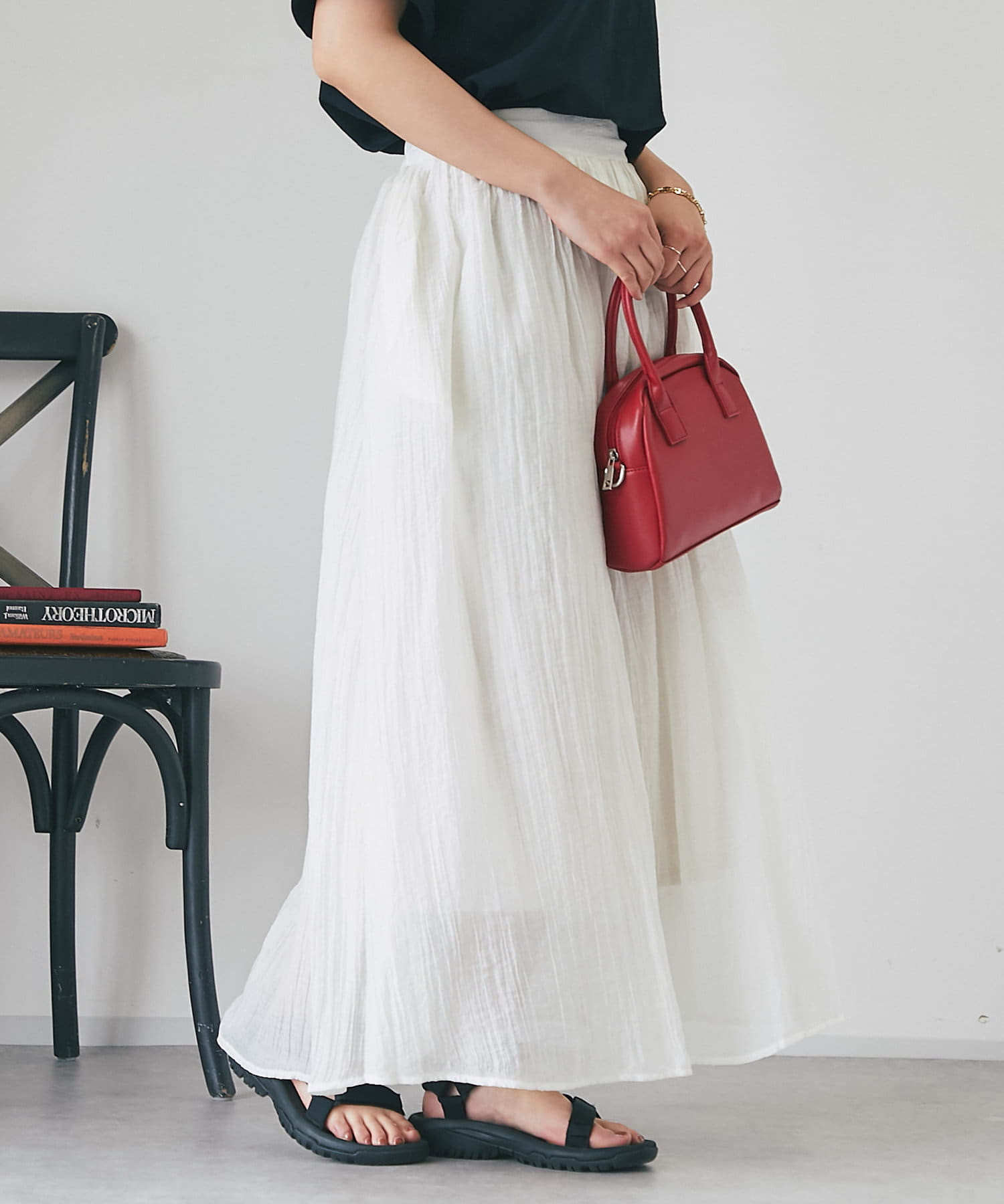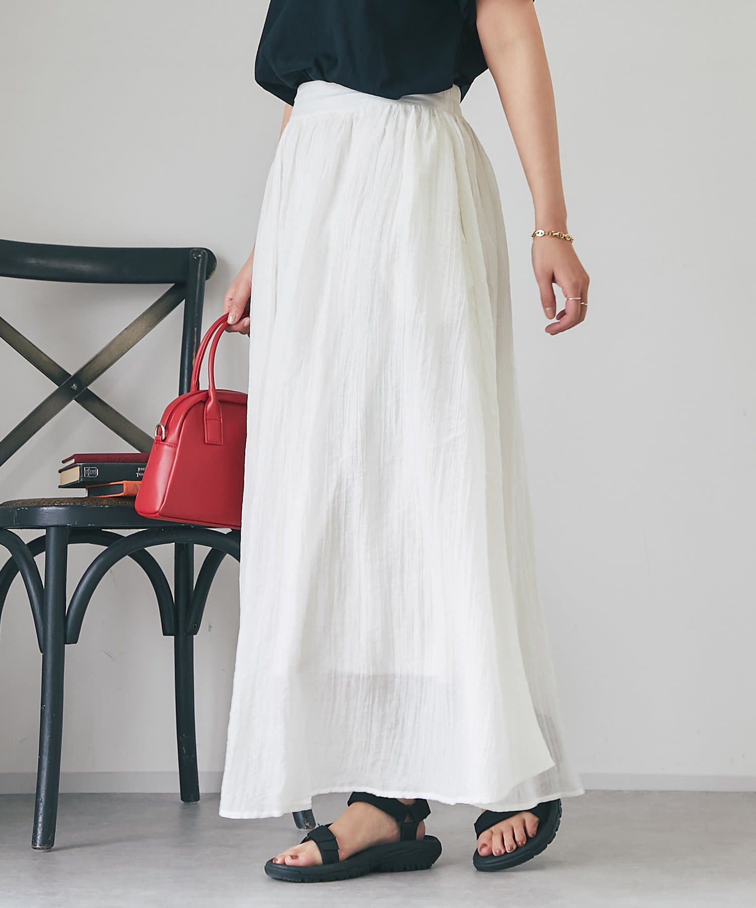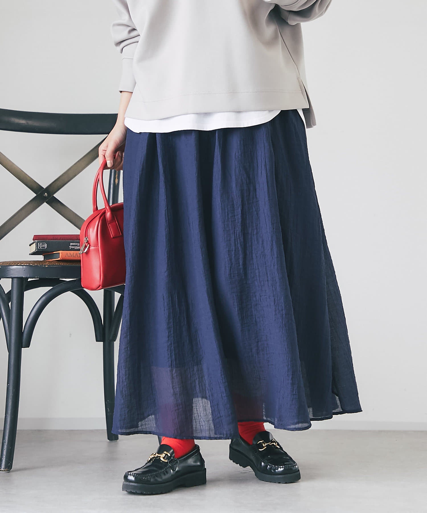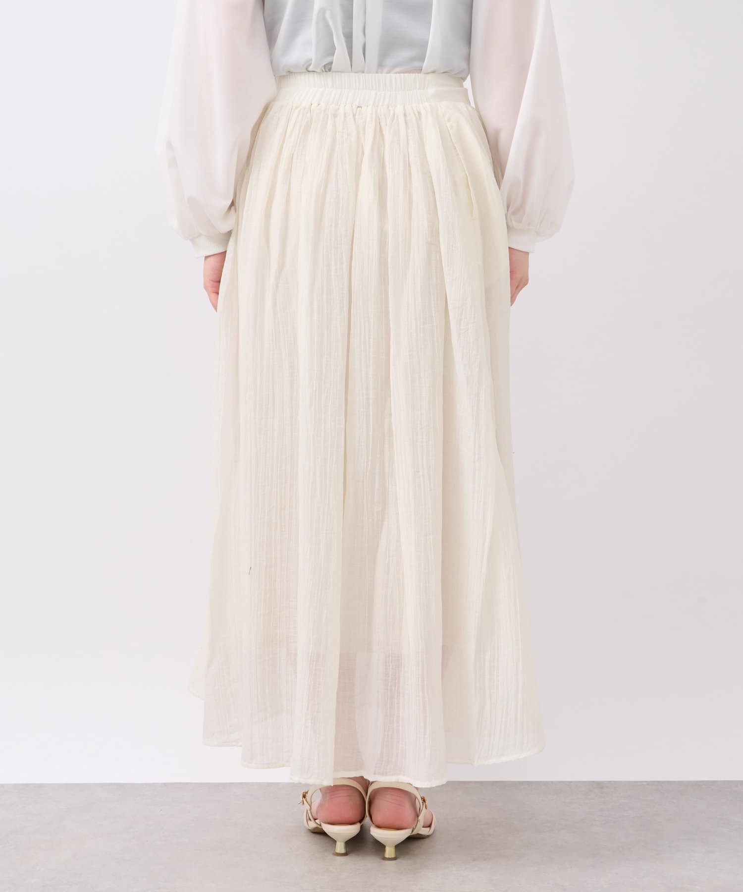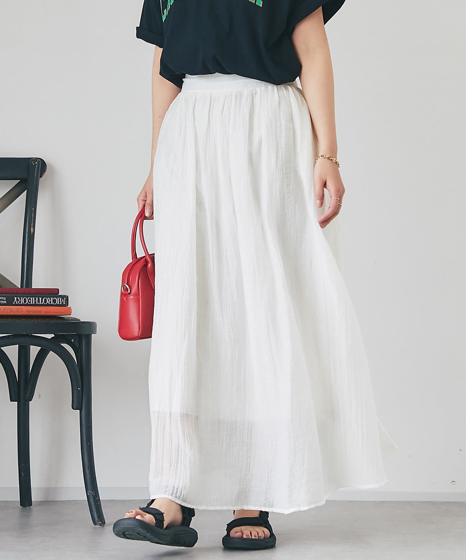 這條裙子從小腿到下襬都有透明感,非常適合春夏季節穿著。