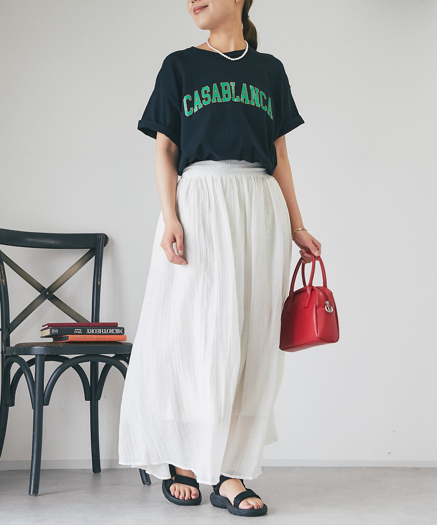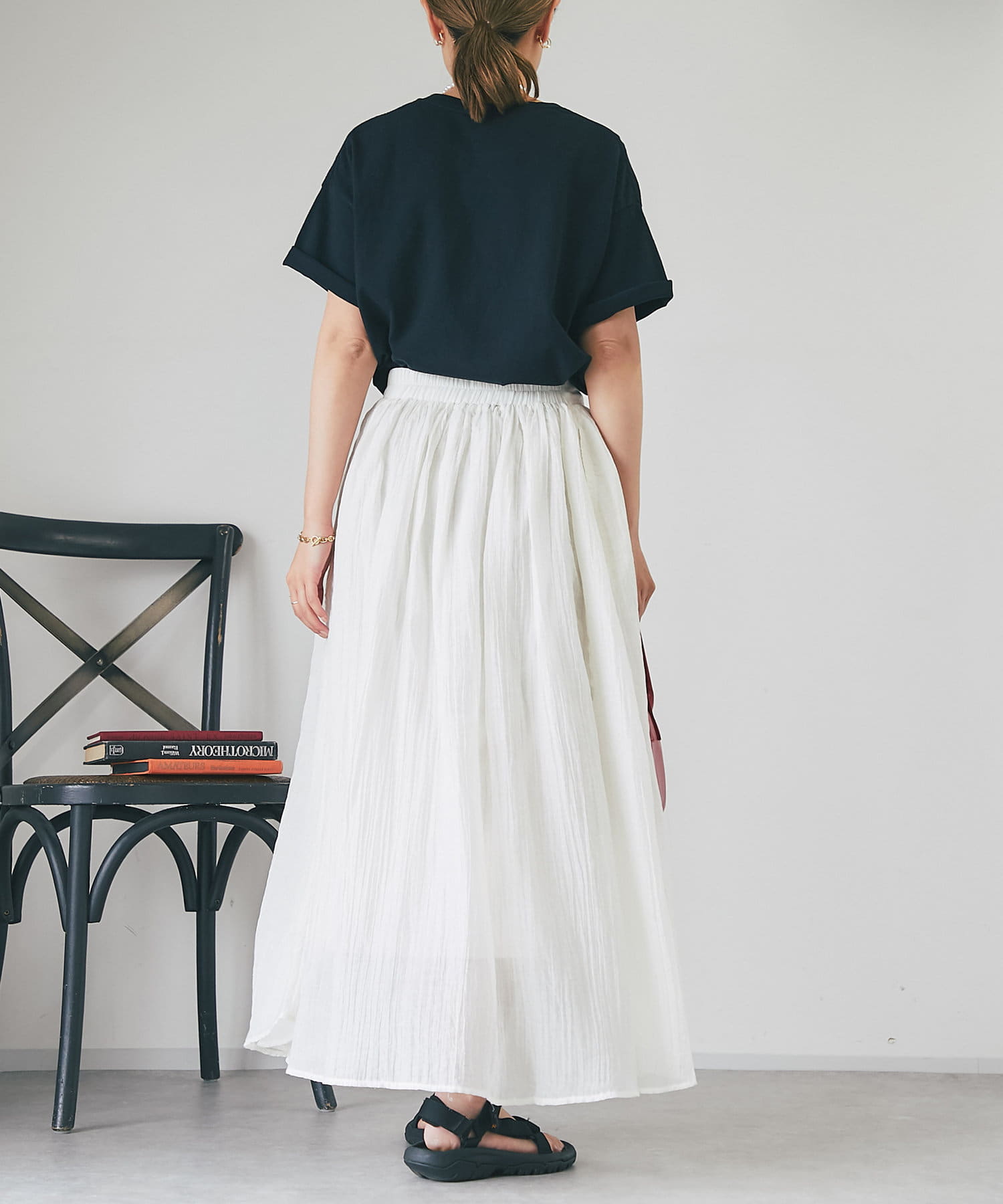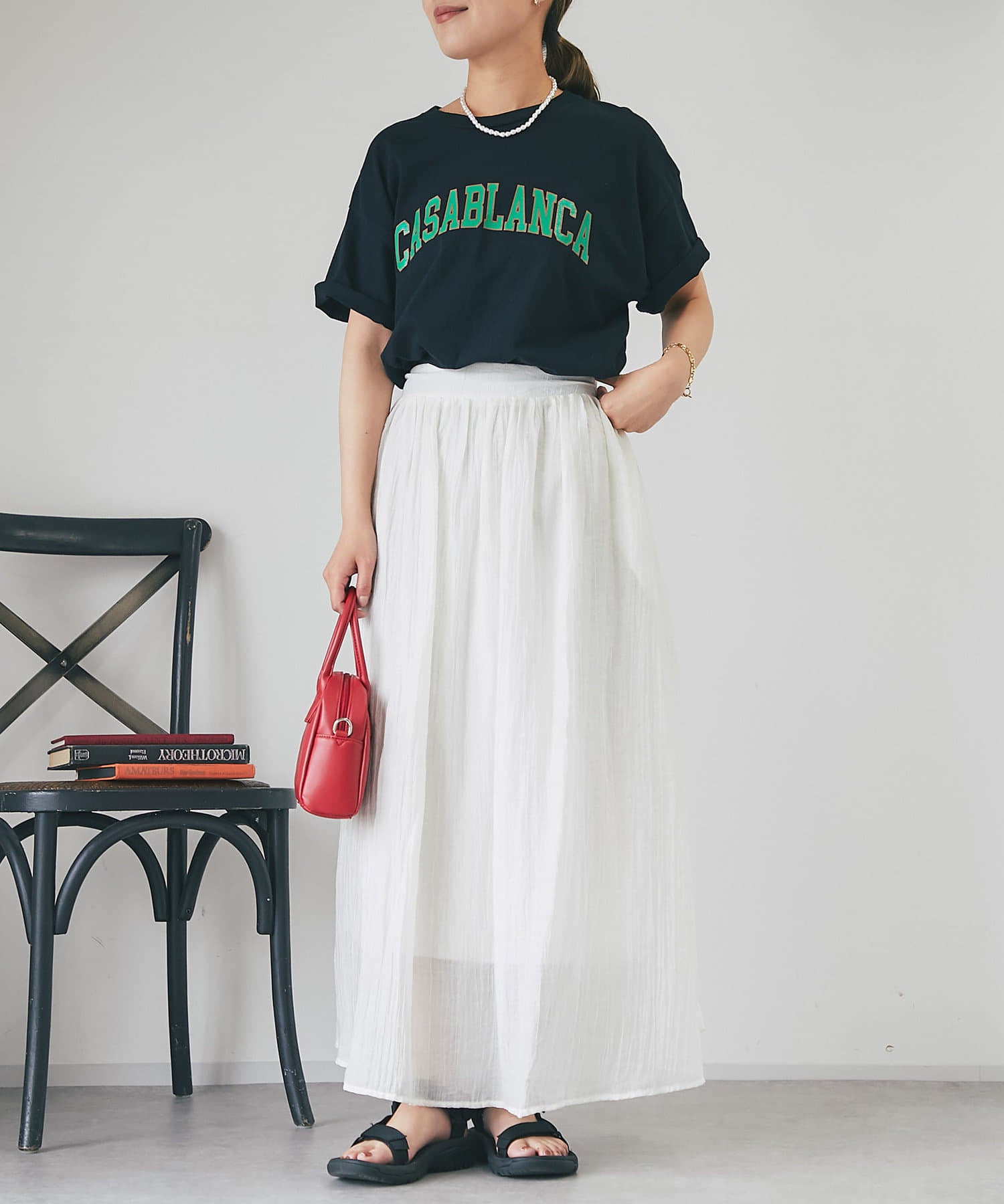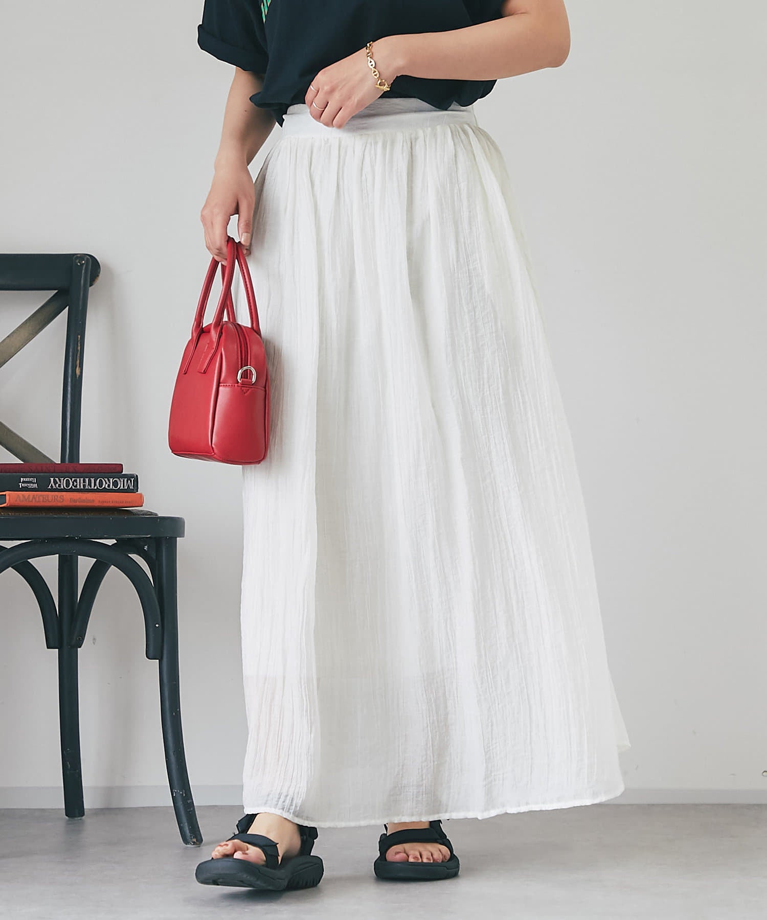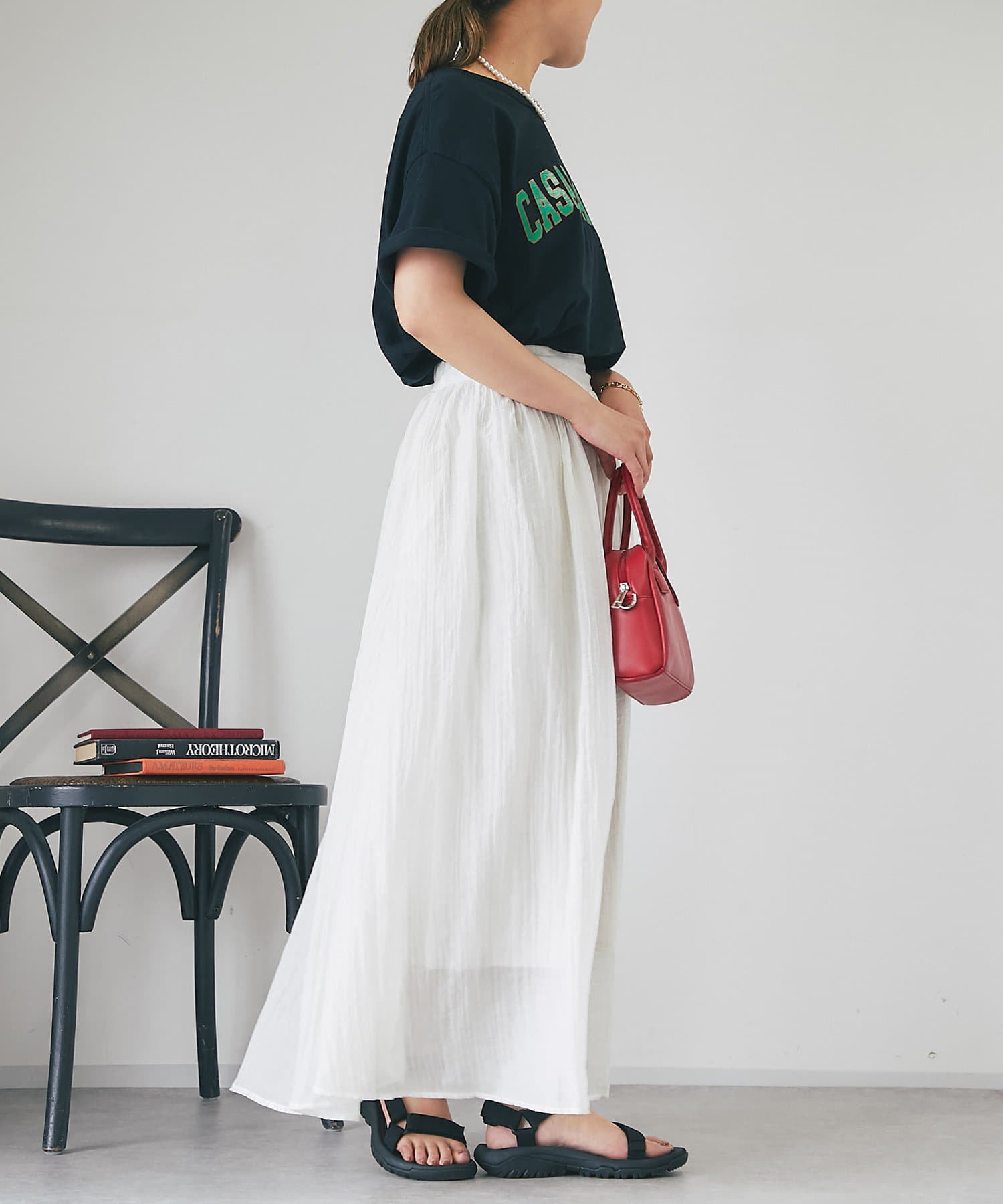 這條裙子從小腿到下襬都有透明感,非常適合春夏季節穿著。