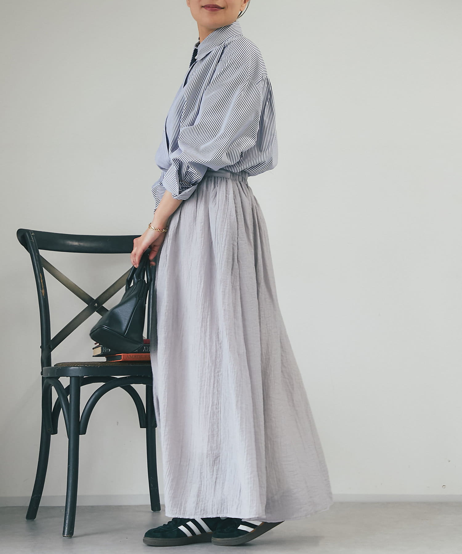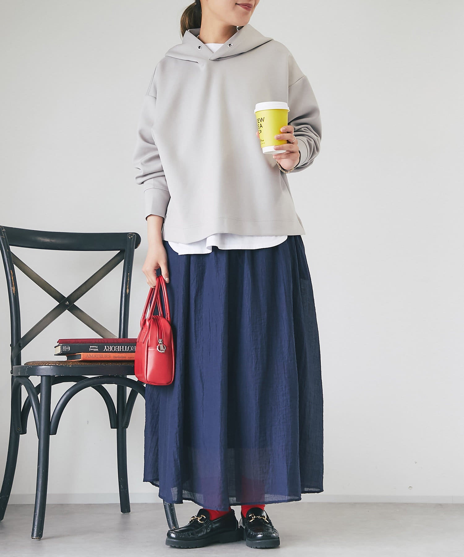 輕盈的材質讓裙子即使蓬鬆也顯得厚重,所以無論什麼季節都能穿!