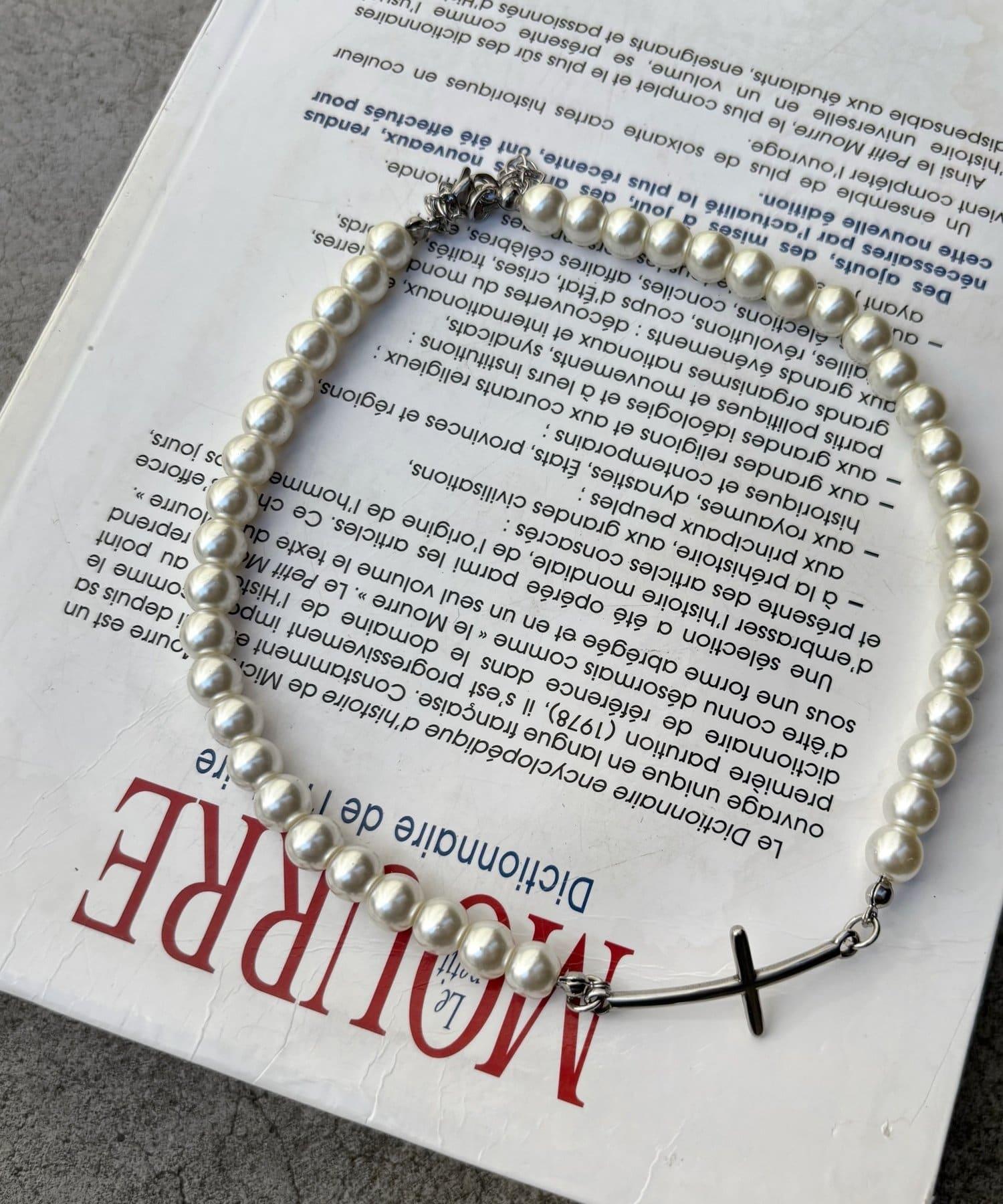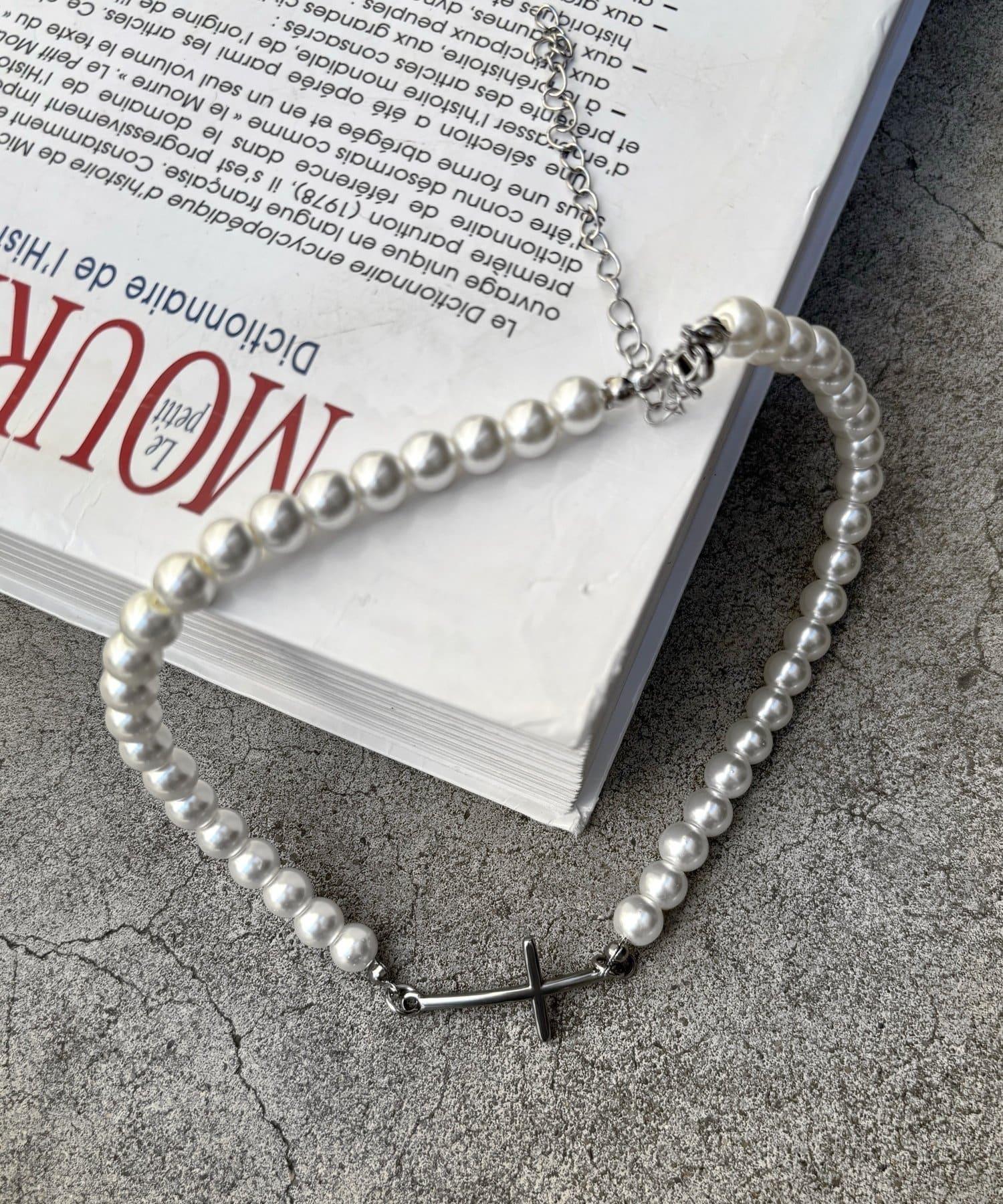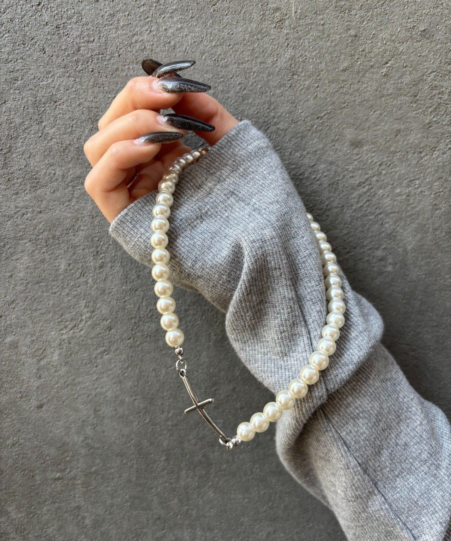 優雅的珍珠與酷酷的十字架相結合,為這條吊墜項鍊的頸部增添了美麗的裝飾。