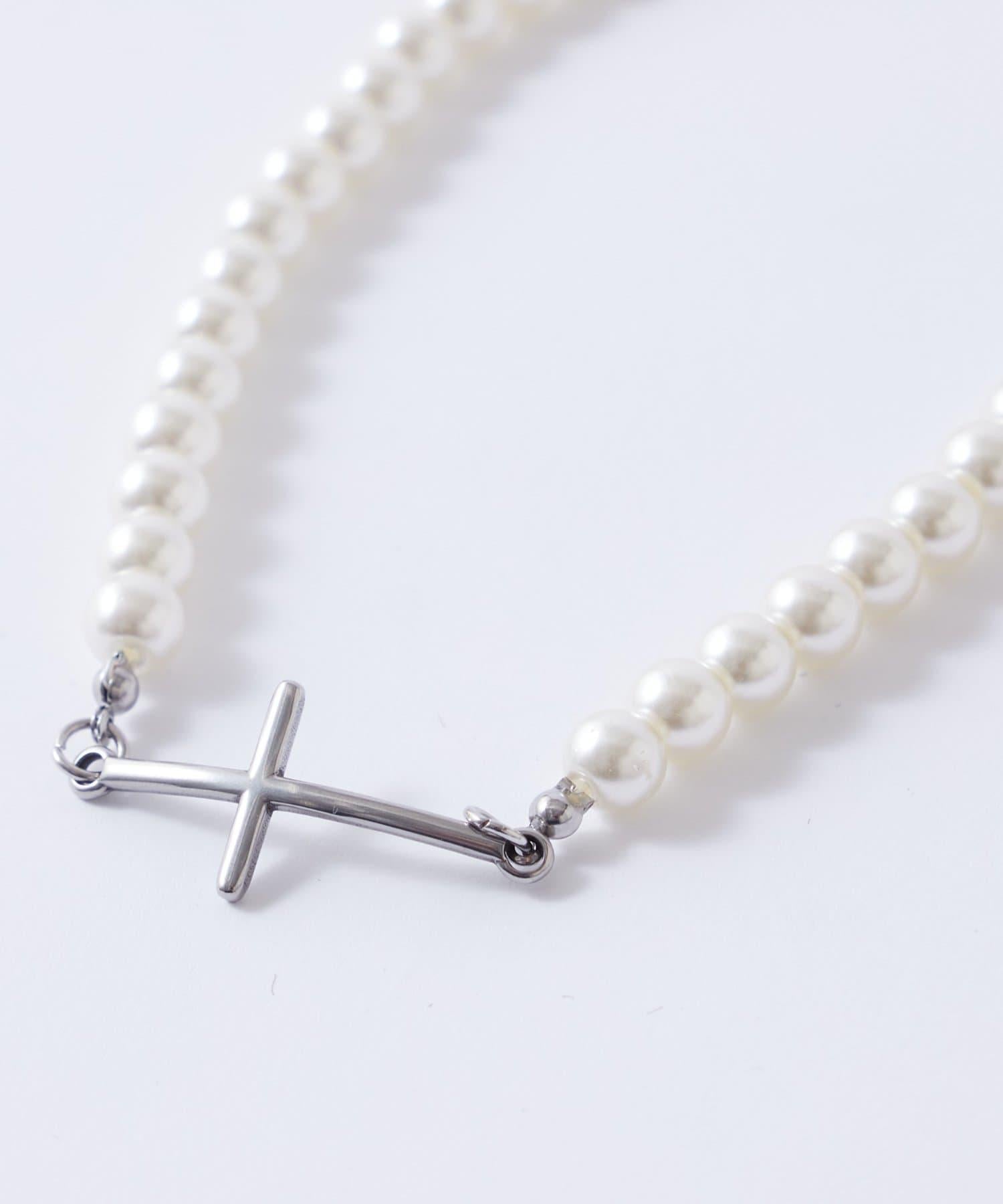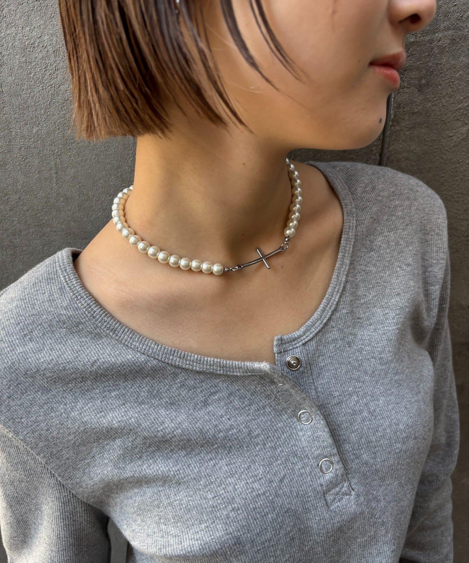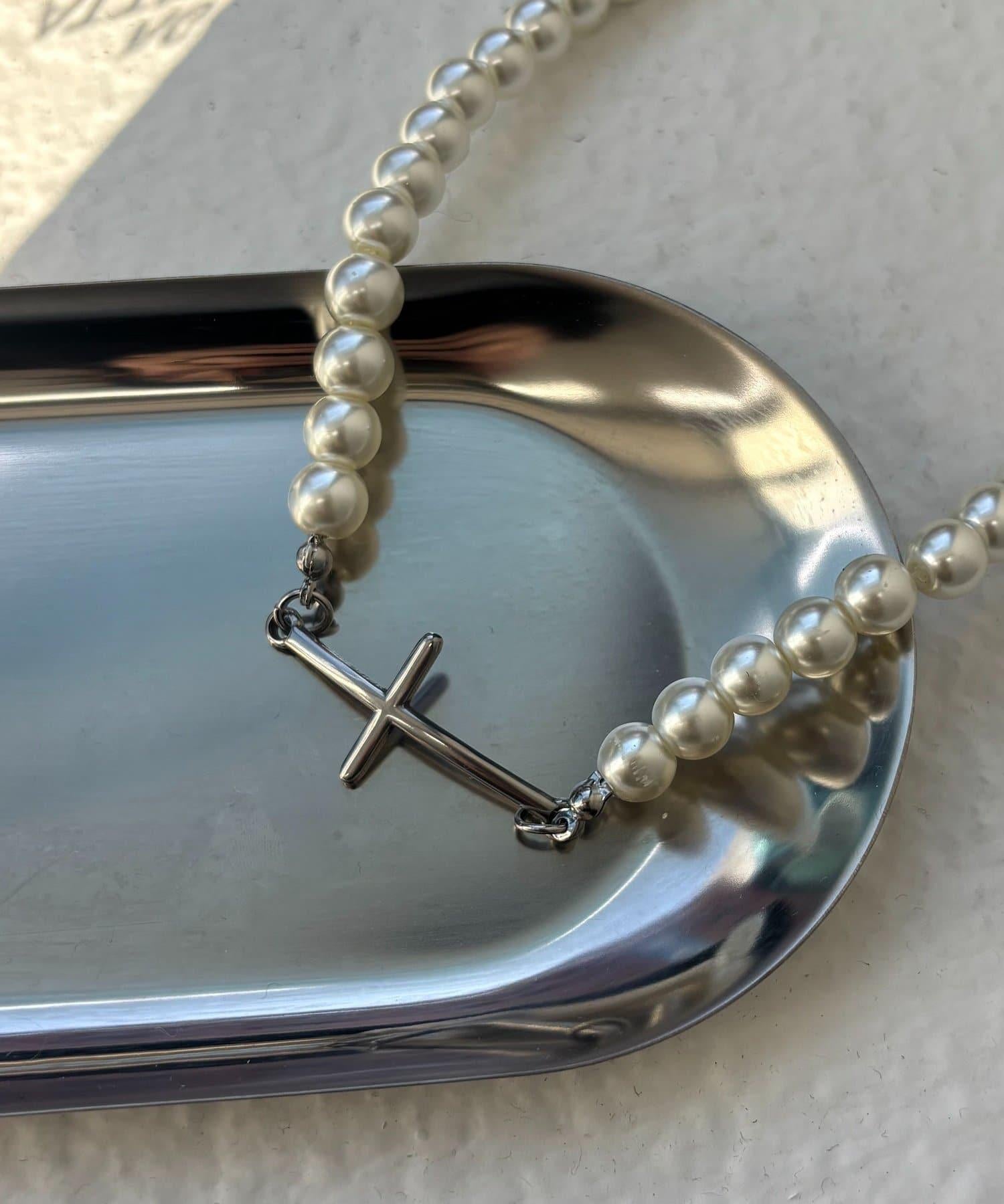 優雅的珍珠與酷酷的十字架相結合,為這條吊墜項鍊的頸部增添了美麗的裝飾。