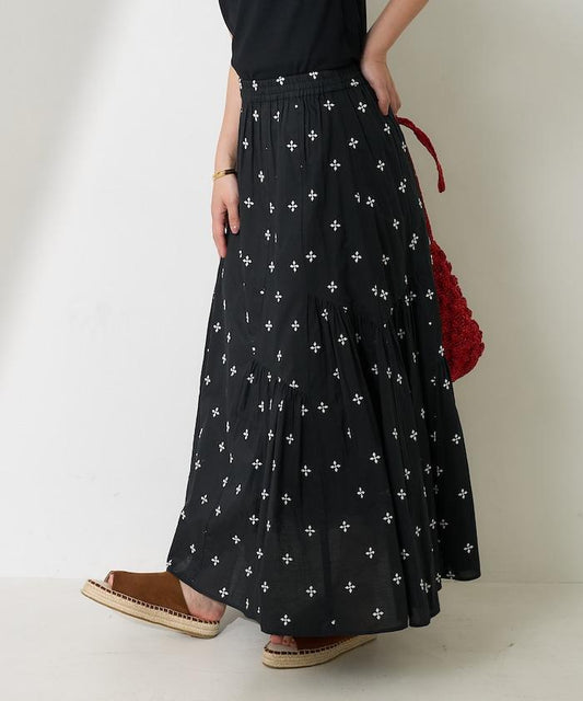 這款裙子採用季節性色彩和交錯圖案。