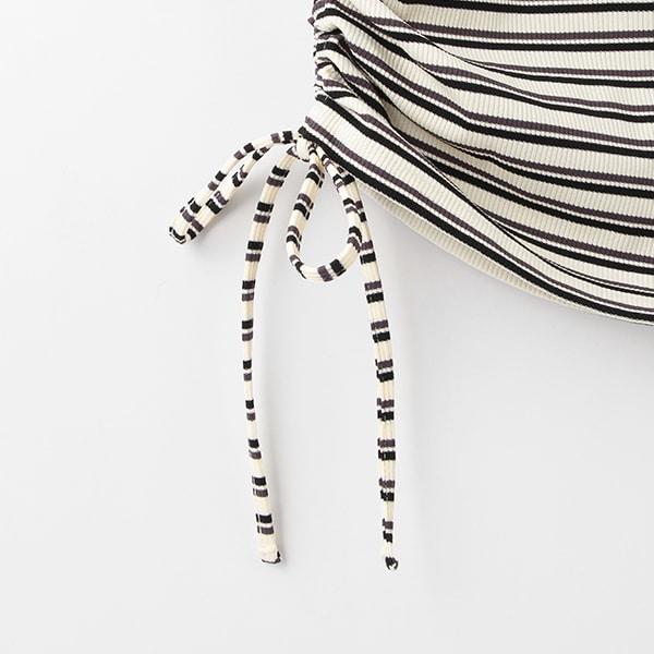 下襬一側的抽繩設計為其輪廓增添了變化,收緊抽繩即可改變輪廓。