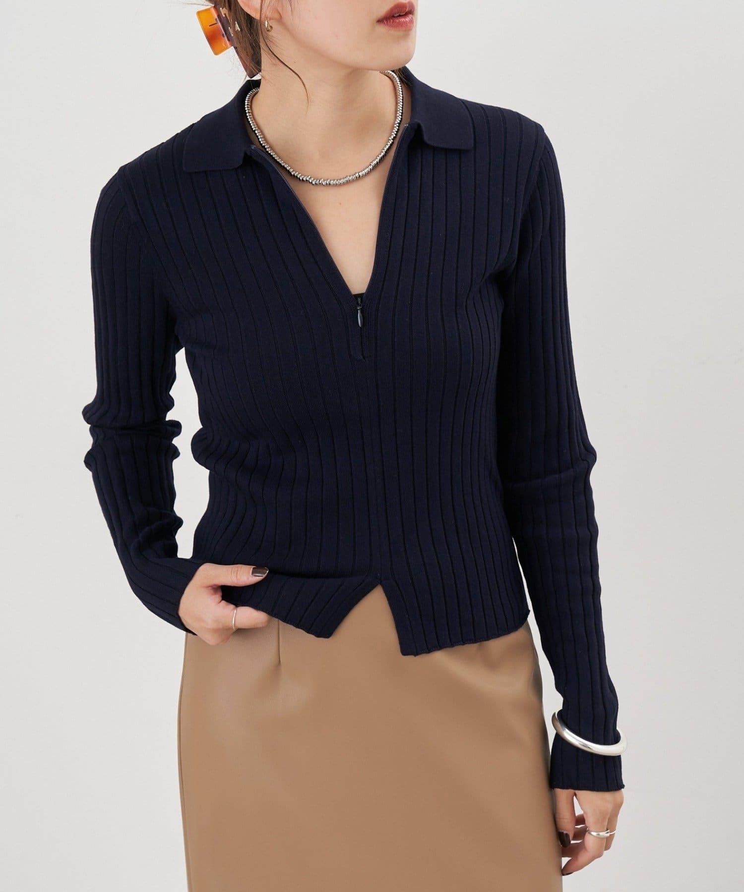 半拉鍊羅紋針織衫