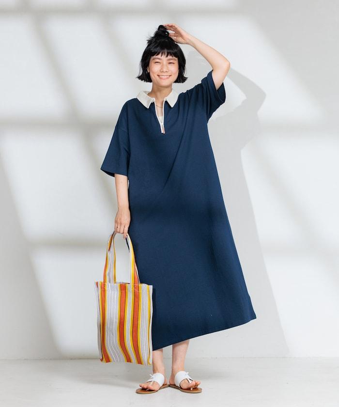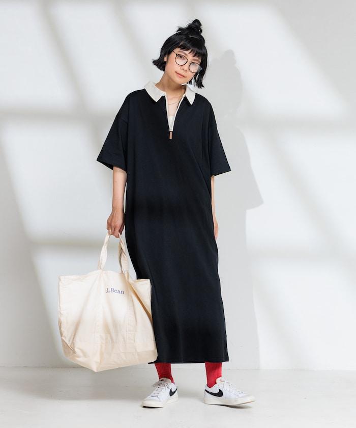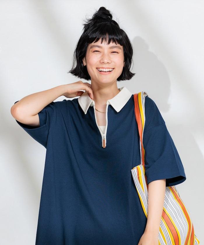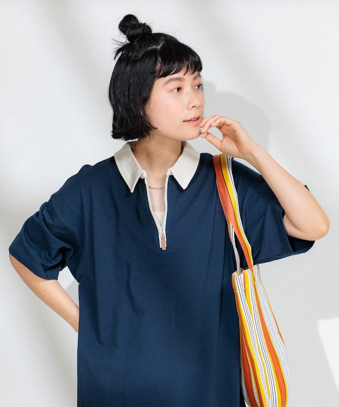 半拉鍊休閒馬球連衣裙,營造出輕鬆愜意的感覺。