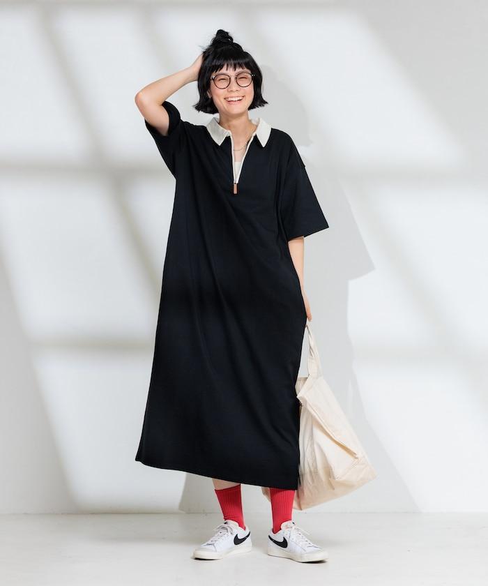 半拉鍊馬球連衣裙,輕鬆愜意,適合日常穿著。