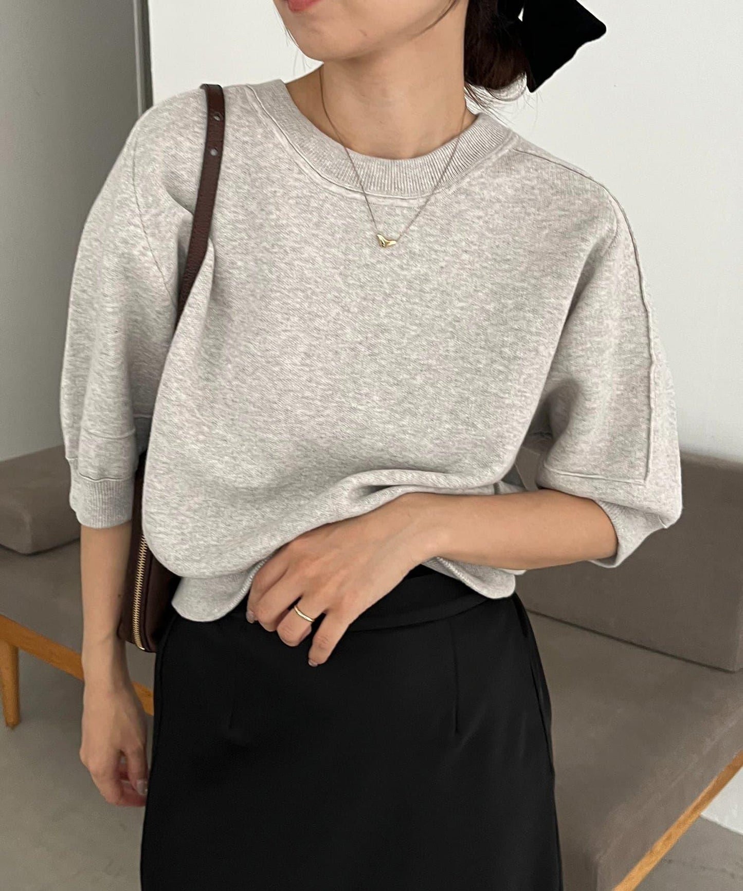 短袖針織衫,廓形圓潤