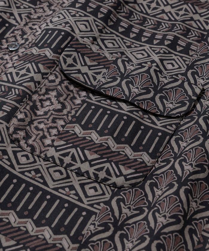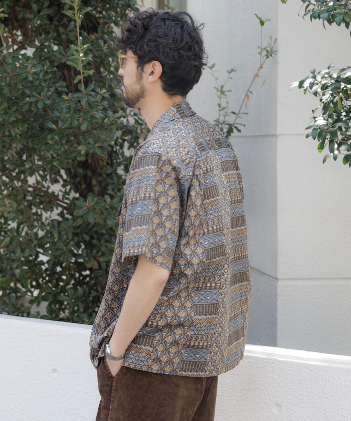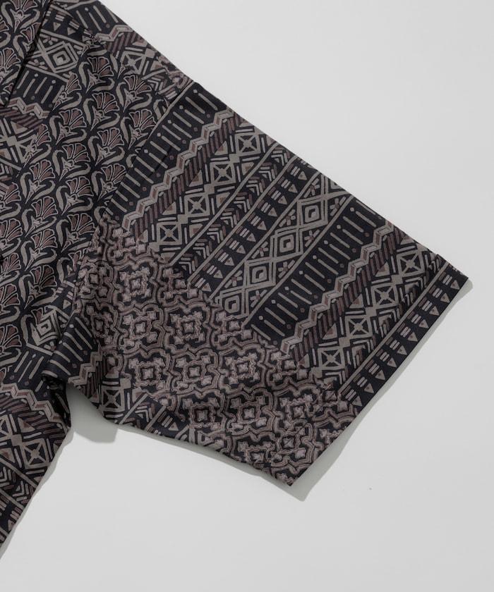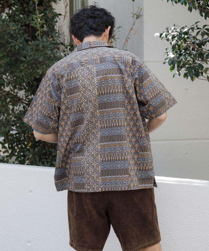 印度制 寬鬆版型 巴蒂克圖案印花 開領襯衫 短袖 非洲風格