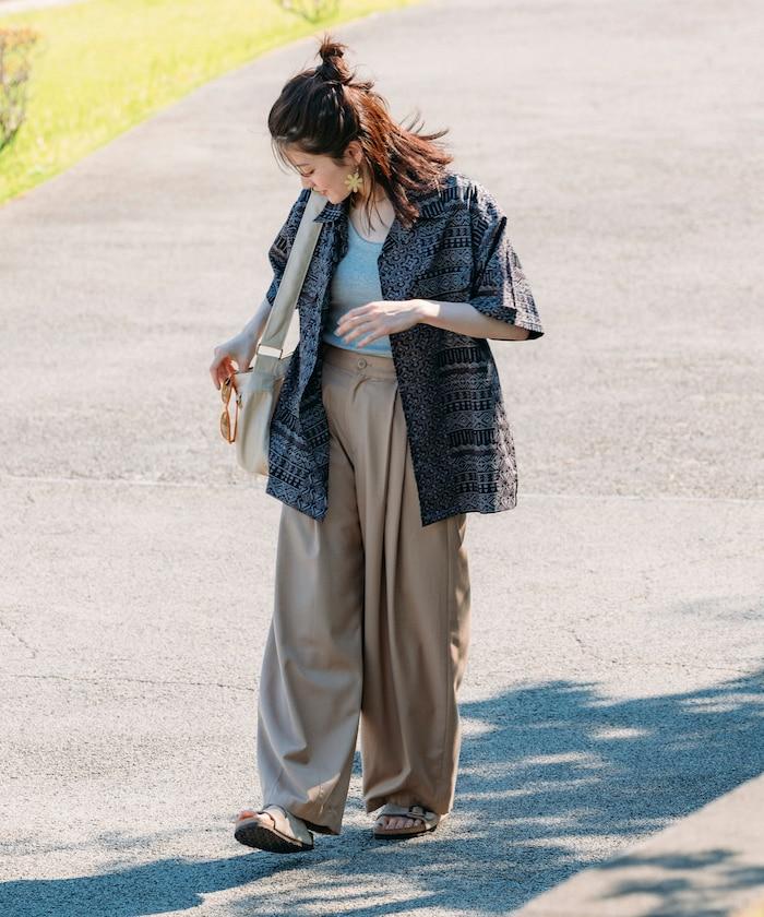 蠟染圖案襯衫搭配牛仔長褲或印花長褲,是日常造型的理想之選。
